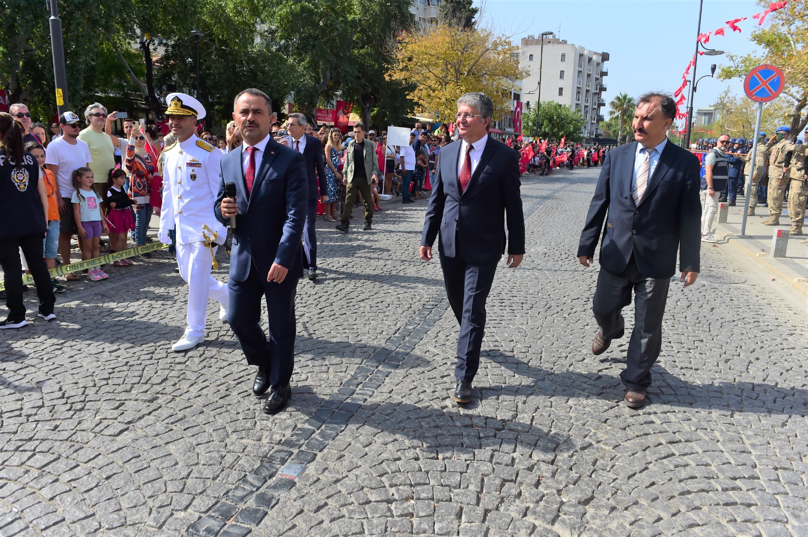 Valilik Makamındaki program sonrasında, kordon boyundaki törene geçildi. Tören alanına gelen Vali İlhami Aktaş, Boğaz ve Garnizon Komutanı Tuğamiral Mustafa Biçen ve Belediye Başkan Vekili M. İrfan Mutluay, burada ilk olarak kentlilerin ve tören katılımcılarının bayramını kutladı. Günün anlam ve önemine ilişkin okunan şiirler ve konuşmaların ardından kutlama programı, tören geçişi ile sona erdi.