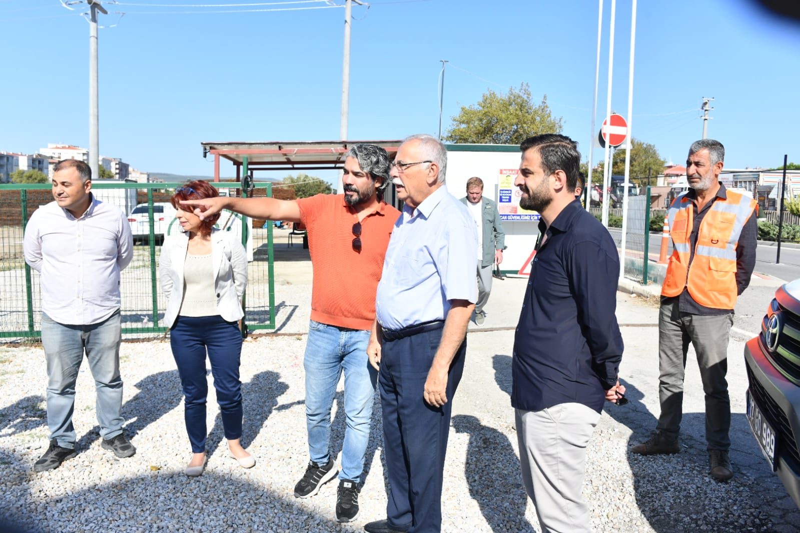 Başkan Gökhan ardından Çanakkale Şehirler Arası Otobüs Terminali arkasında bulunan şehir kabristanlığında yapımı büyük bir hızla devam eden genişletme çalışmalarını yerinde inceledi. Belediye Başkan Yardımcısı Handan Özyayla Kenar ve teknik ekip eşliğinde alanı gezerek, burada yapılacak olan düzenlemelere ilişkin bilgi aldı.