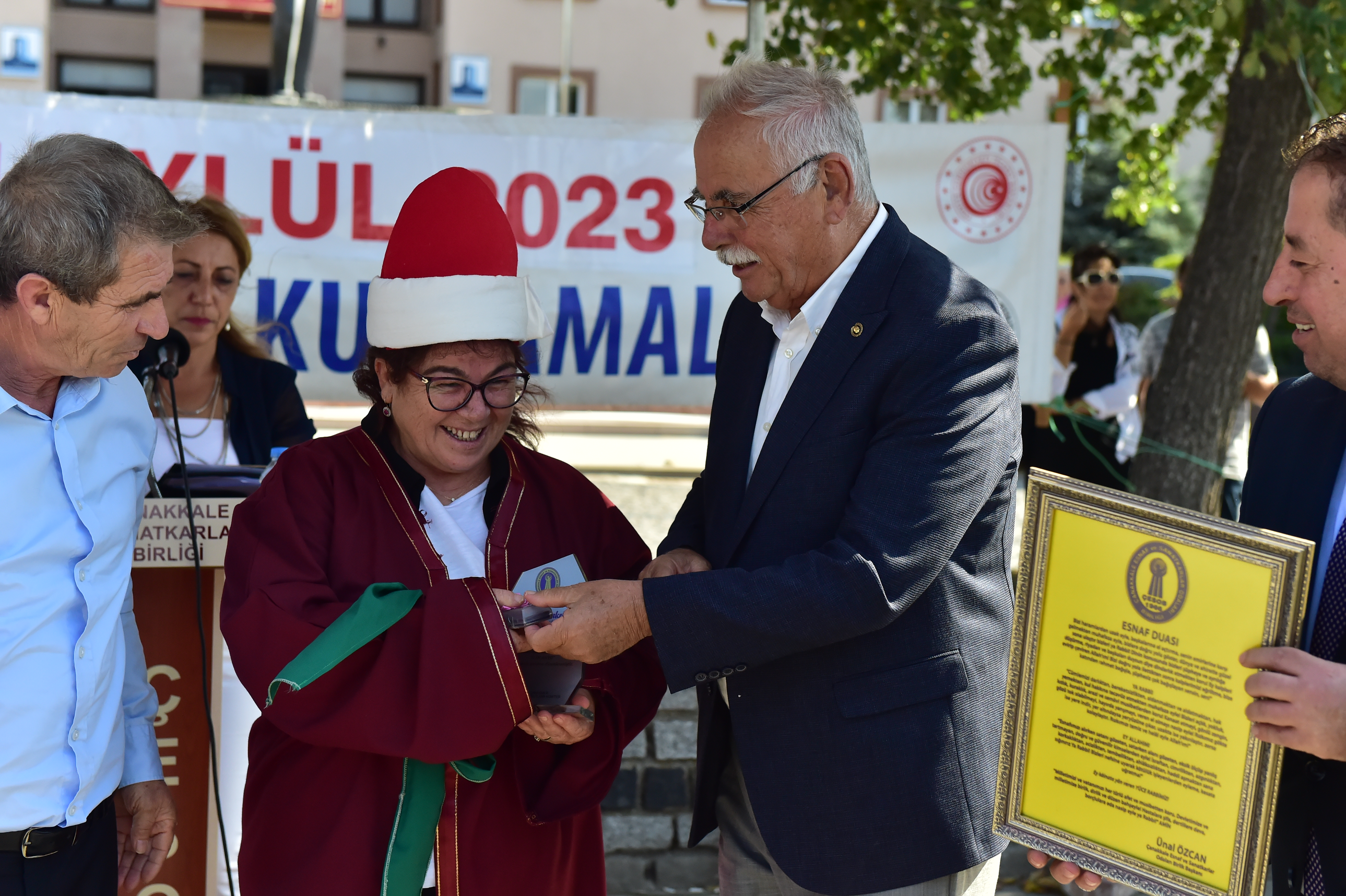 Ahilik Haftası kapsamında düzenlenen tören, halk oyunları gösterisi ve alanlarında en iyi seçilen esnaf, çırak ve kalfalar ile girişimcilere ödüllerinin takdim edilmesi ile son buldu.