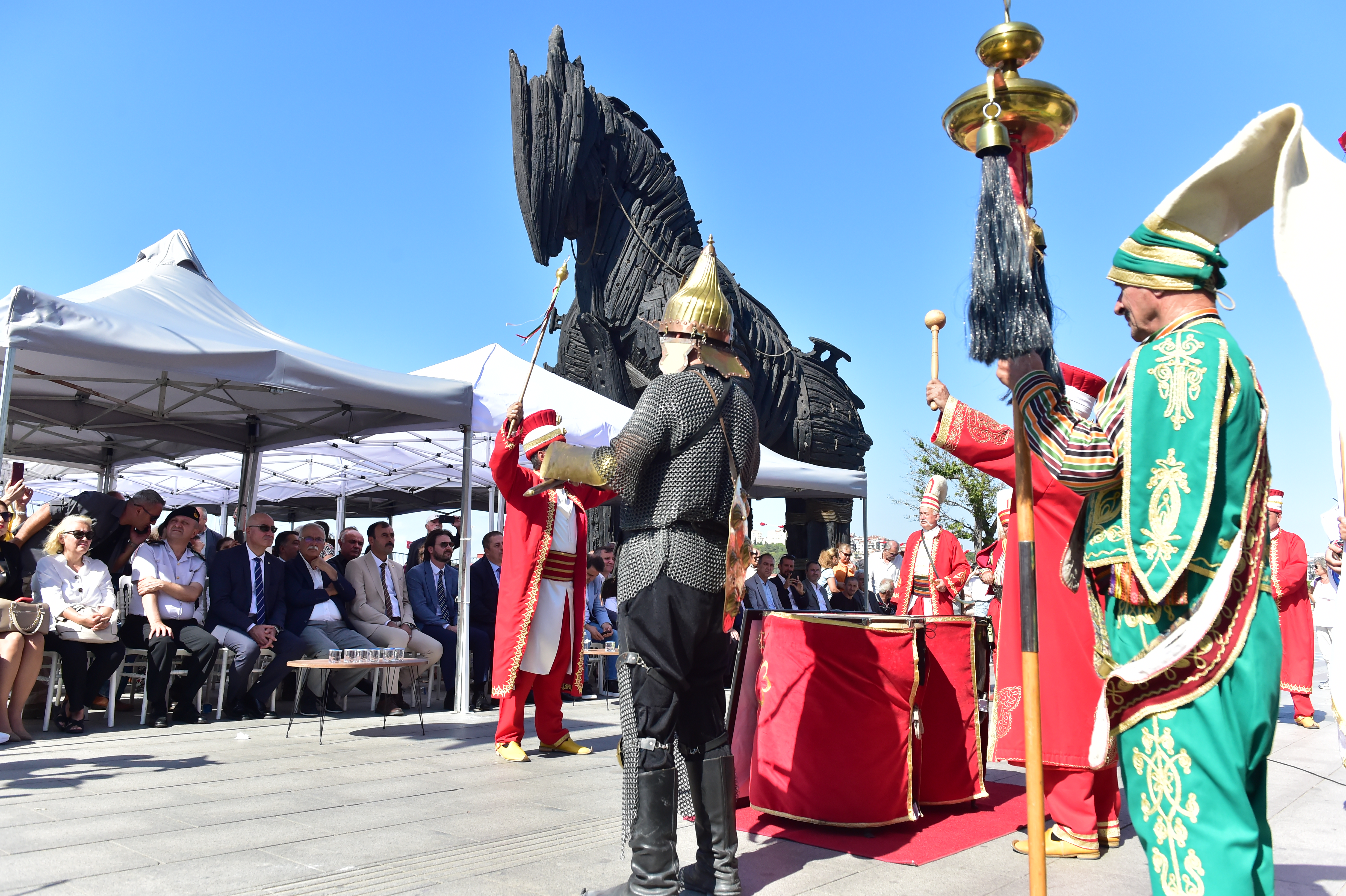 Belediyenin önünde bir araya gelen Başkan Gökhan ve heyet, Valilik binası önüne yürüyerek buradaki törene katıldı. Vali İlhami Aktaş, Belediye Başkanı Ülgür Gökhan, CHP Çanakkale Milletvekilleri İsmet Güneşhan ve Özgür Ceylan, Gelibolu Tarihi Alan Başkanı İsmail Kaşdemir başta olmak üzere çok sayıda protokol üyesi, davetli ve esnafın yer aldığı tören, Atatürk Anıtına çelenk sunulması, saygı duruşu ve İstiklal Marşı'nın okunmasıyla başladı. Törende günün anlam ve önemine ilişkin de konuşmalar yapıldı.