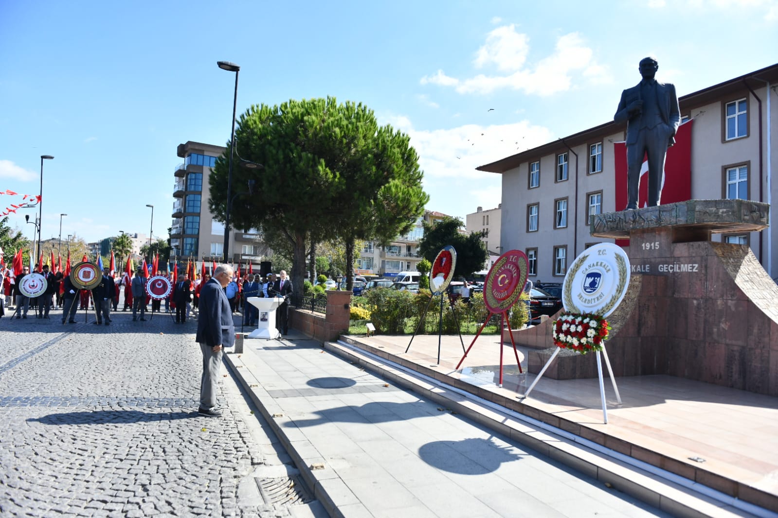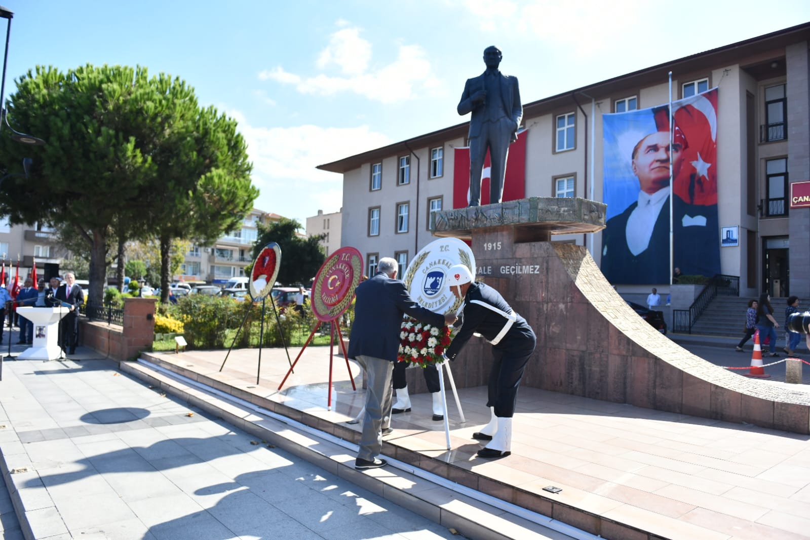 Valilik binası önünde düzenlenen çelenk törenine Vali İlhami Aktaş, Çanakkale Boğaz ve Garnizon Komutanı Tuğamiral Mustafa Biçen, Çanakkale Belediye Başkanı Ülgür Gökhan, CHP Çanakkale Milletvekilleri İsmet Güneşhan ve Özgür Ceylan, sivil ve askeri protokol üyeleri ile kentliler katıldı. Atatürk anıtına çelenklerin sunulması ile başlayan tören, saygı duruşu ve İstiklal Marşı'nın okunması ile devam etti. Günün anlam ve önemine ilişkin yapılan konuşmaların ardından çelenk sunma töreni son buldu.