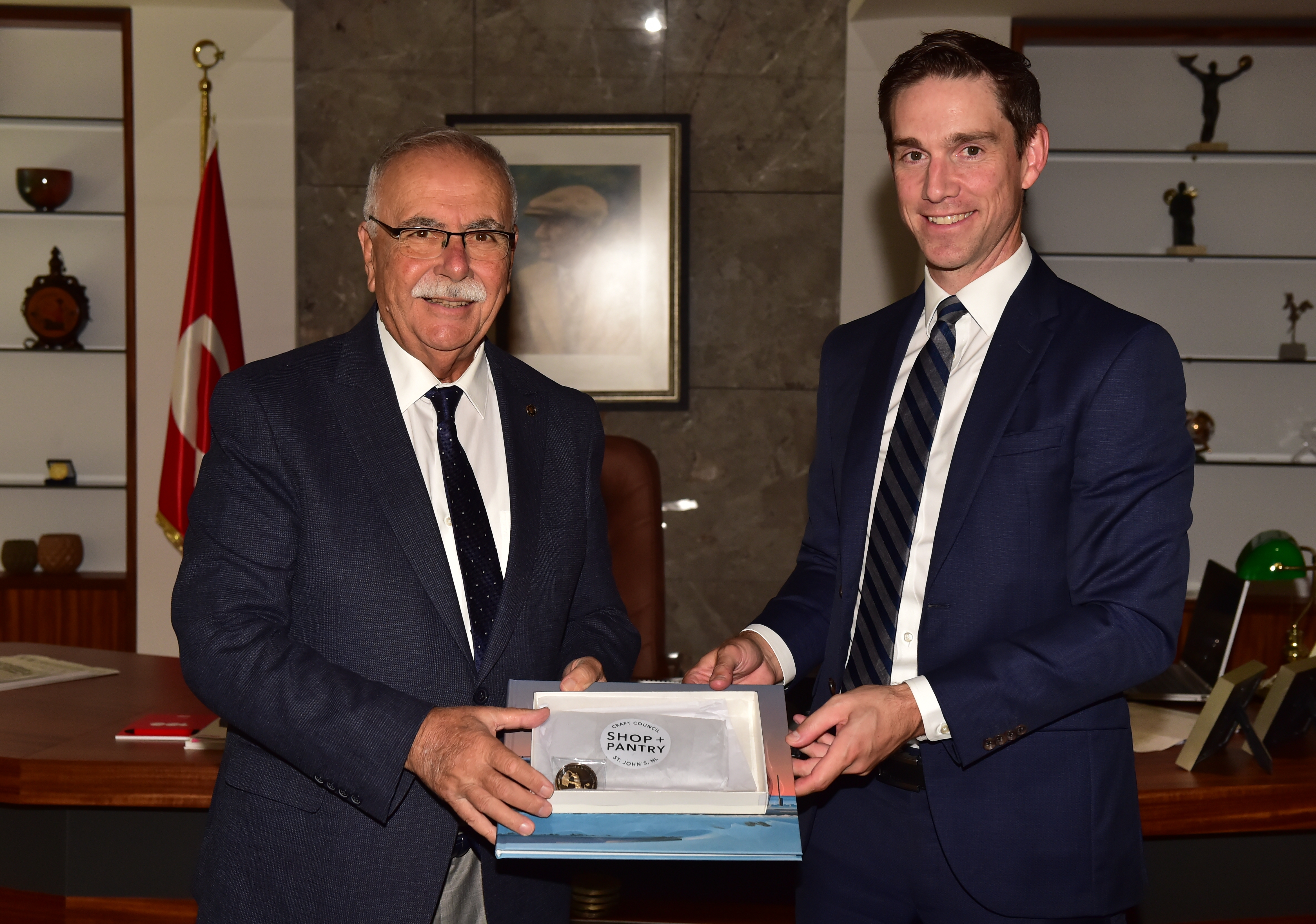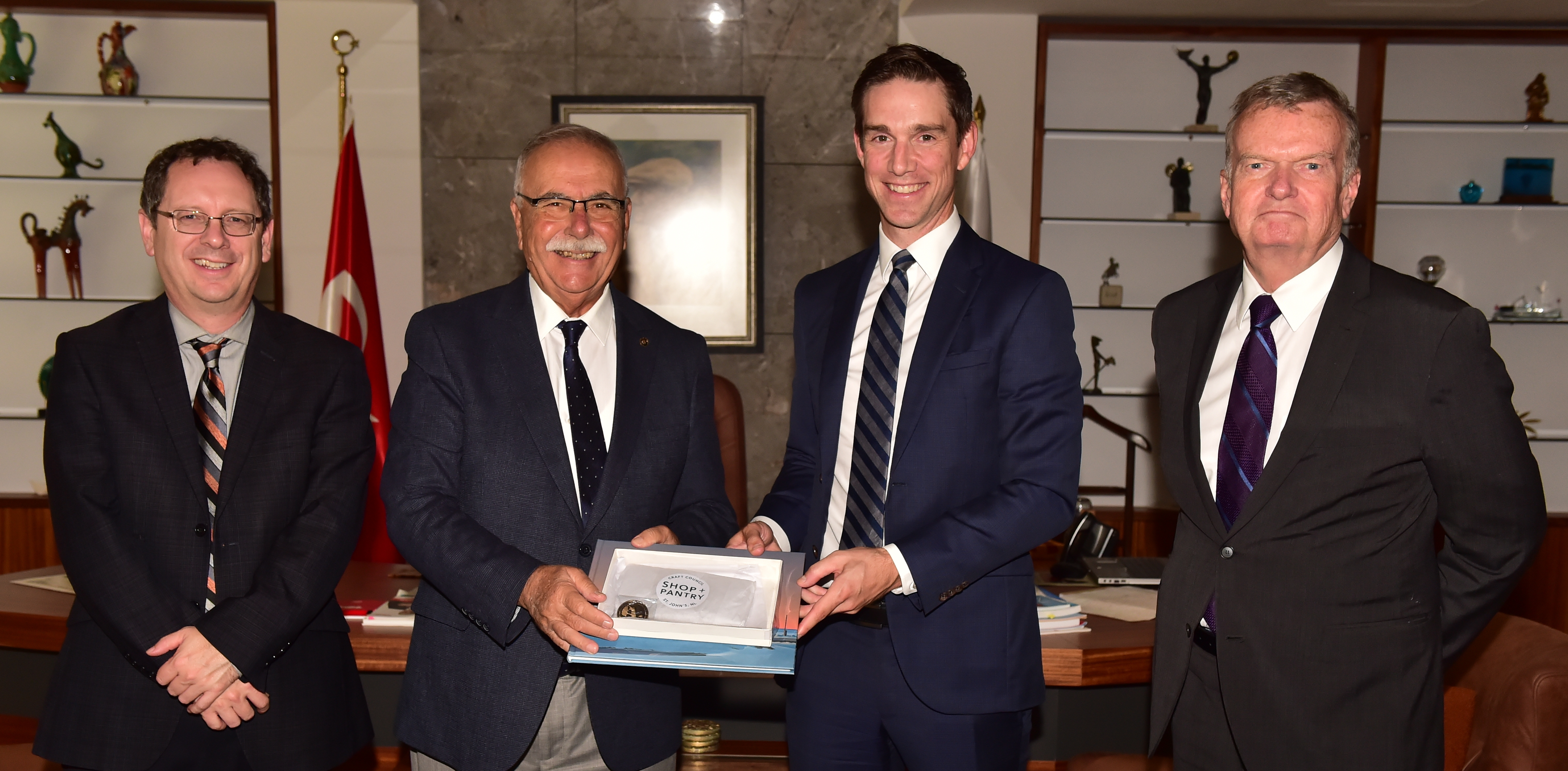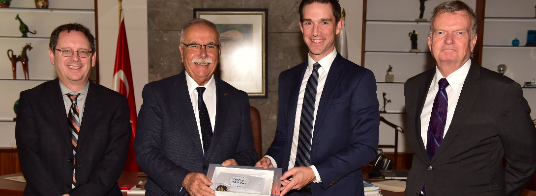 Çanakkale Kara Savaşlarına katılan Kanada Newfoundland Alayının Caribou Anıtı’nda düzenlenecek Anma törenine katılmak için Çanakkale’ye gelen; Kanada Newfoundland ve Labrodor Yerel Hükümeti Adalet ve Kamu Güvenliği Bakanı John Hogan ve beraberindeki heyet, Belediye Başkanı Ülgür Gökhan’ı makamında ziyaret etti.
