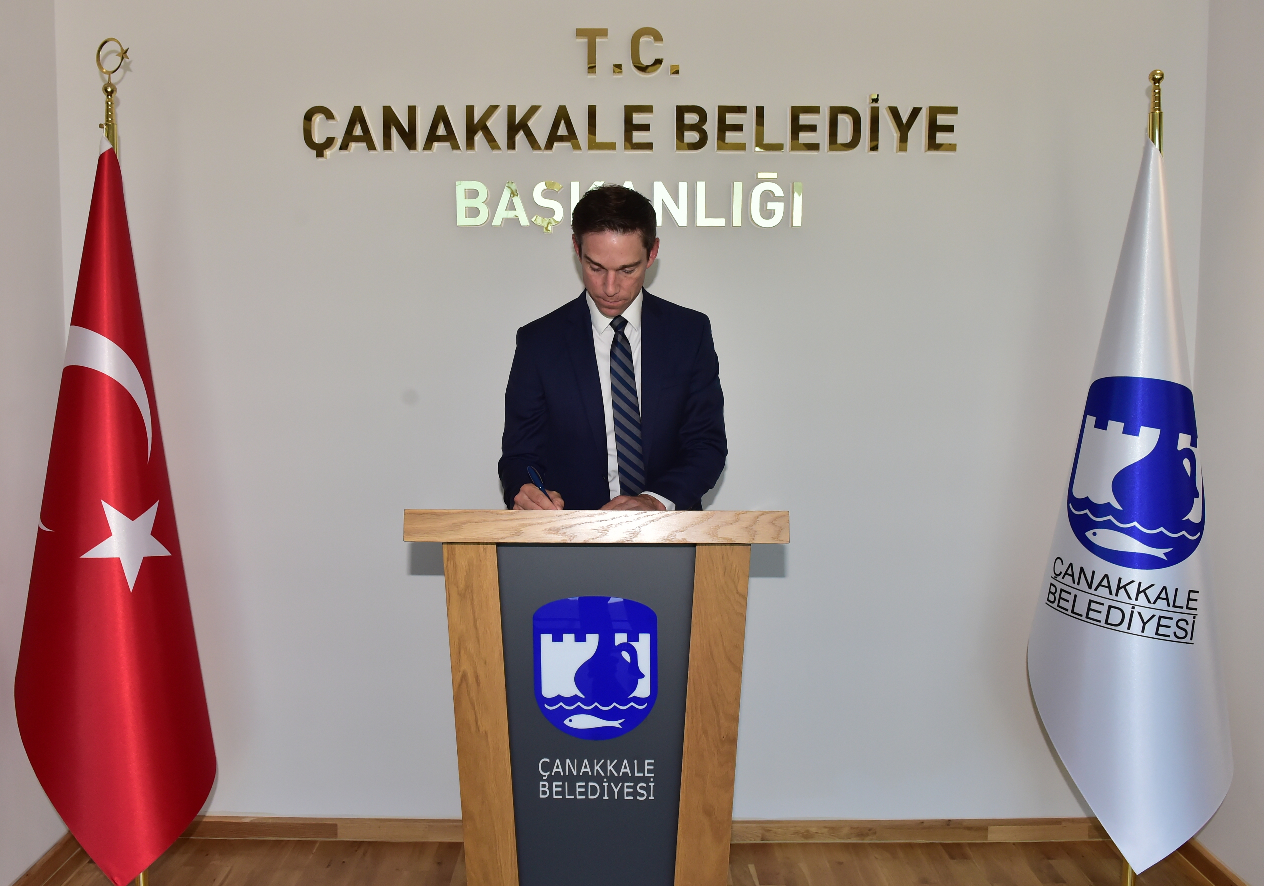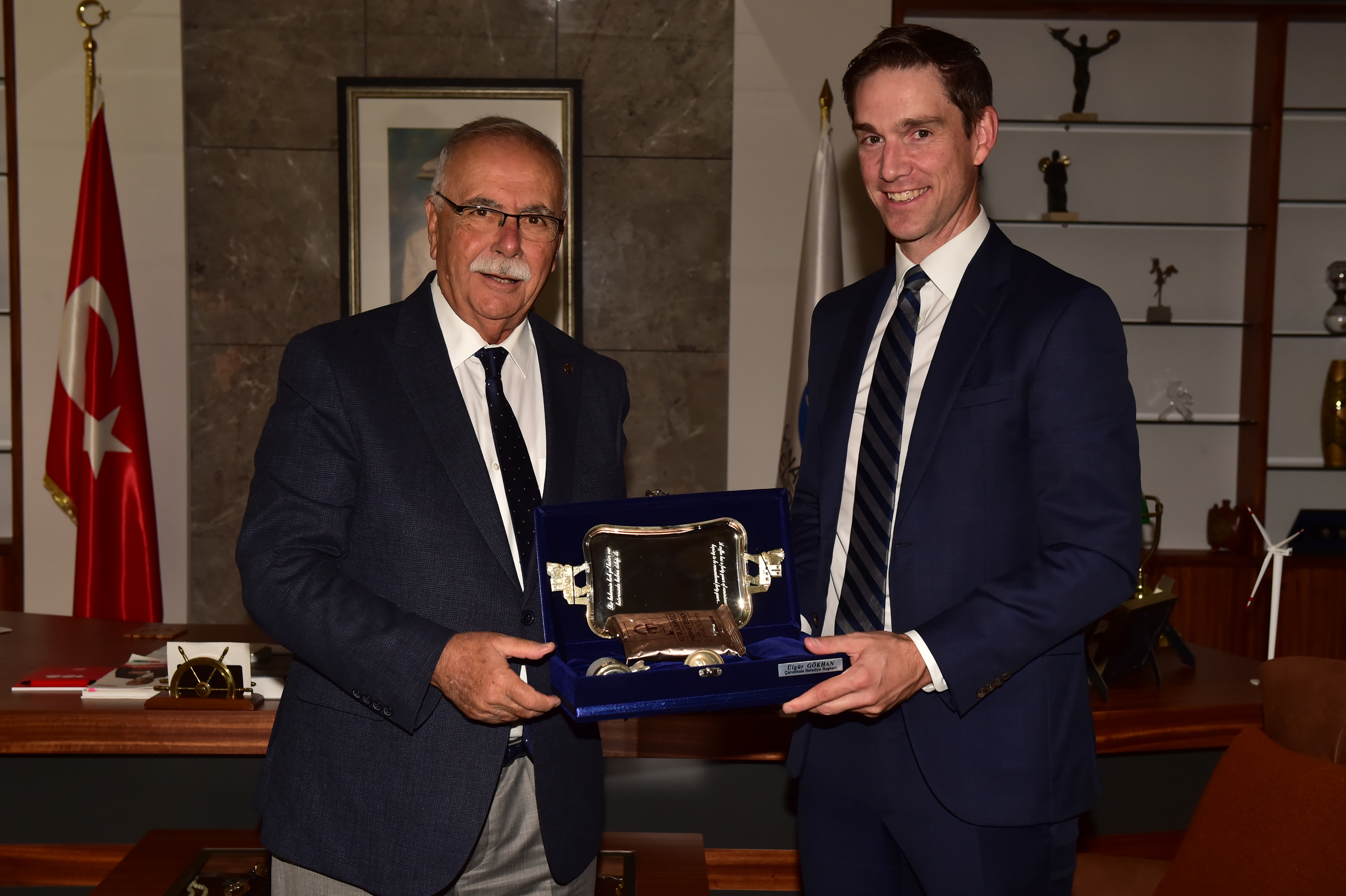 Başkan Gökhan tarafından karşılanan Kanada Newfoundland ve Labrodor Yerel Hükümeti Adalet ve Kamu Güvenliği Bakanı John Hogan, Çanakkale Belediyesi şeref defterini imzaladı. Çeşitli konularda edilen sohbetin ardından ziyaret, karşılıklı hediye takdimiyle sona erdi.