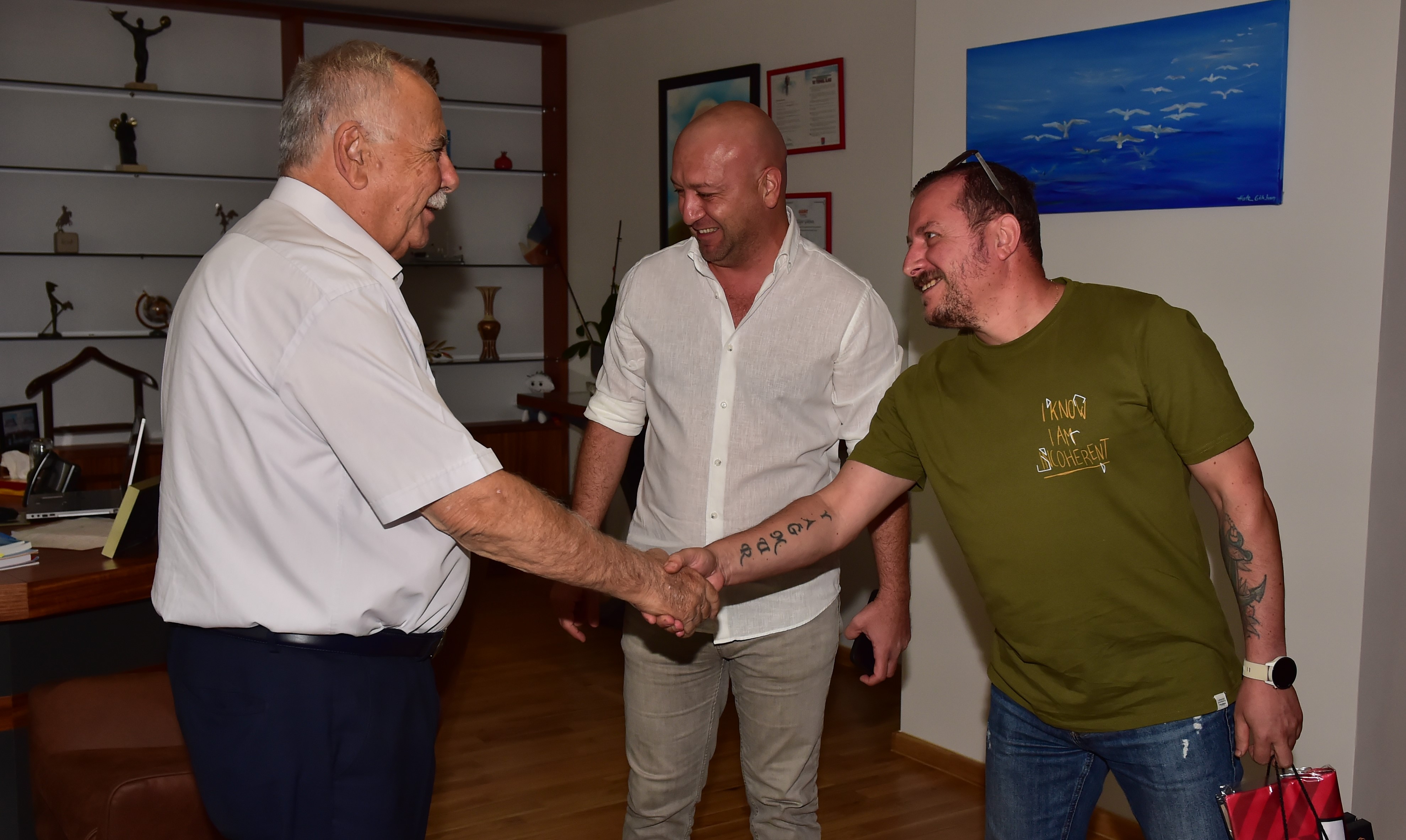 Veteranlar Liginde Çanakkale’yi temsil eden 18 Mart Masterlar Spor Kulübü üyeleri Başkan Gökhan’ı makamında ziyaret ederek kulüple ilgili son bilgileri paylaştı. Karşılıklı sohbet şeklinde geçen ziyarette üyeler, Gökhan’a isminin yazılı olduğu formayı hediye etti. Gökhan’da ziyaretten duyduğu memnuniyeti dile getirerek, forma için teşekkür etti ve 18 Mart Kulübü’ne başarılar diledi.