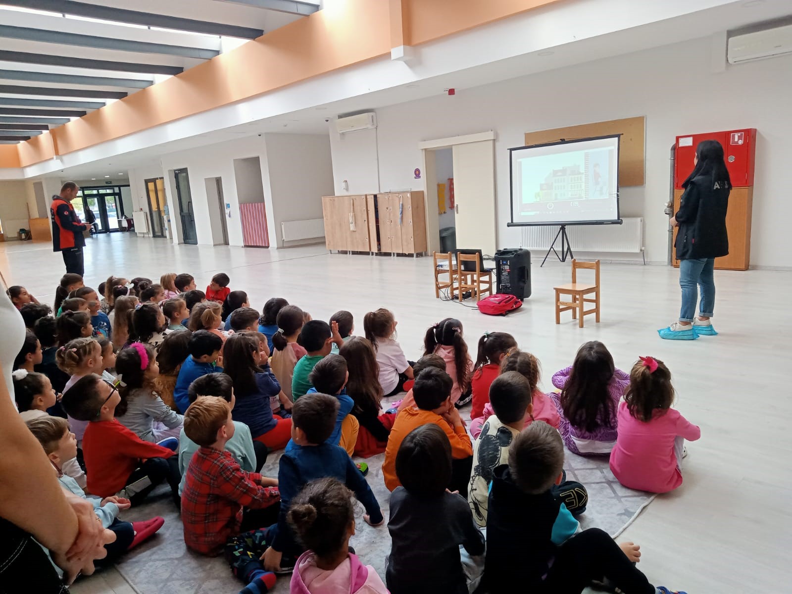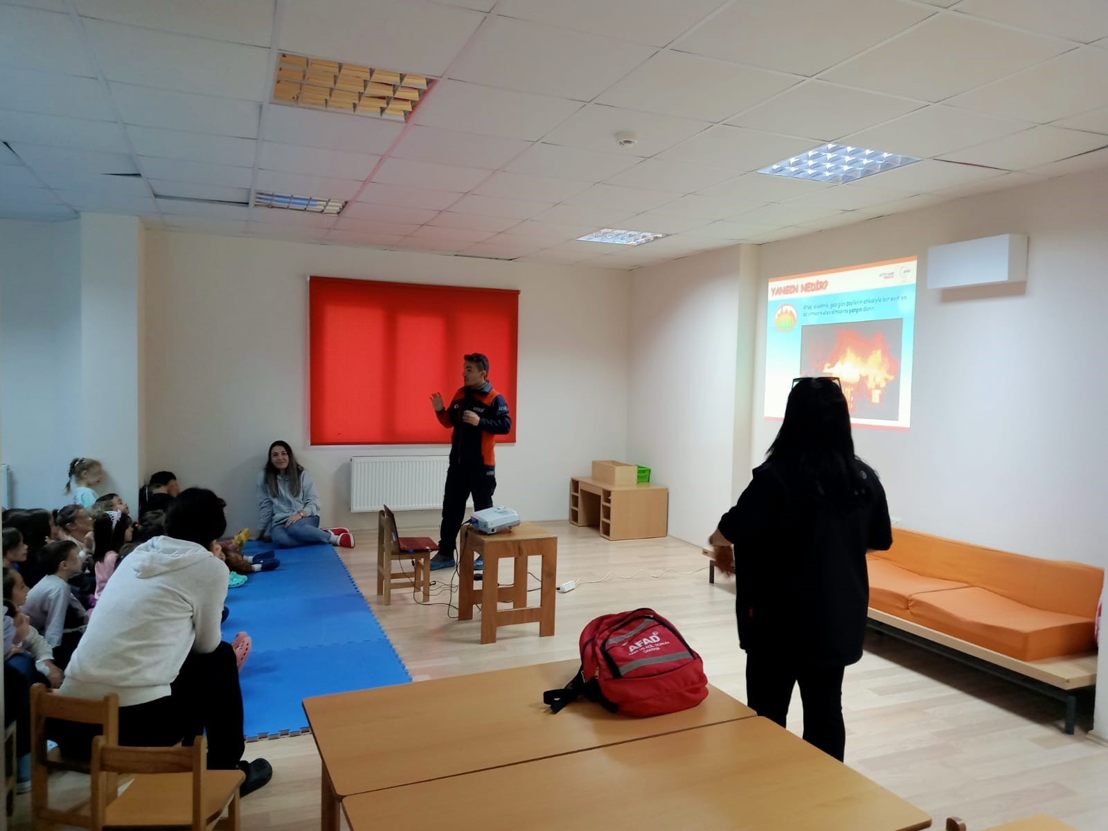 Eğitim kapsamında Atam Kreş öğrencilerine temel afet bilgisi, çevremizdeki riskler, bireysel sorumluluk, aile afet planı, acil durum çantası, depremlerde doğru davranış gibi konularda bilgiler verildi.
