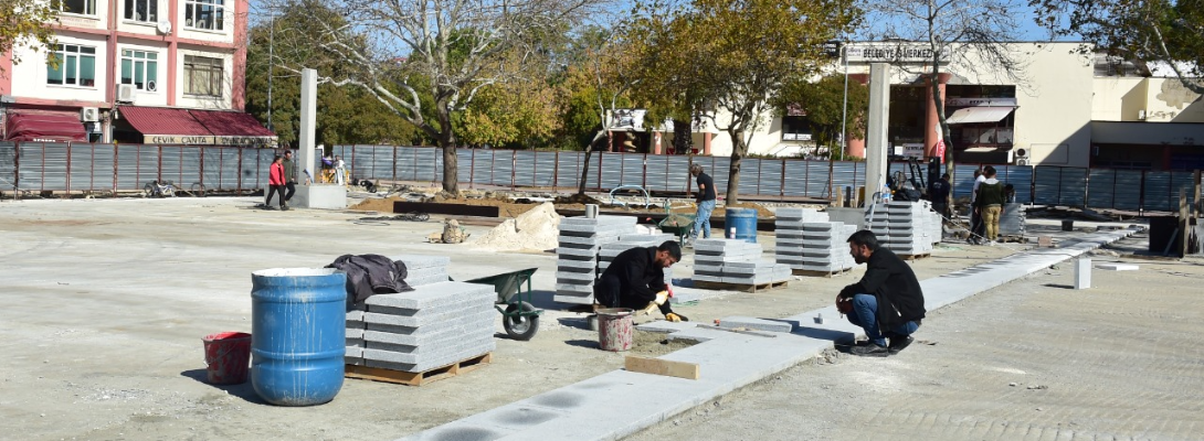 Geçmişten günümüze kentin en önemli açık kamusal alanlarından olan Cumhuriyet Meydanı'nda yürütülen yenileme projesi kapsamında kısa bir süre önce altyapı imalatları tamamlanarak, zemin kaplama ve bitiş imalat çalışmalarına başlandı.