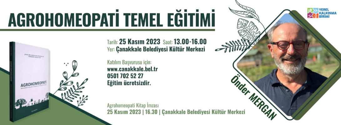 Bitki hastalıklarının tedavisi ve bitki zararlılarıyla mücadelenin homeopati prensiplerine uygun ve homeopatik olarak hazırlanmış ilaçlarla yapılmasına dayalı temiz tarım uygulamalarına dayanan eğitim Önder Mergan tarafından verilecek. Ücretsiz olan eğitim programı, 25 Kasım 2023 Cumartesi günü 13.00-16.00 saatleri arasında Çanakkale Belediyesi Kültür Merkezinde gerçekleşecek. Aynı gün saat 16.30’da ise Agrohomeopati kitap imza töreni düzenlenecek.