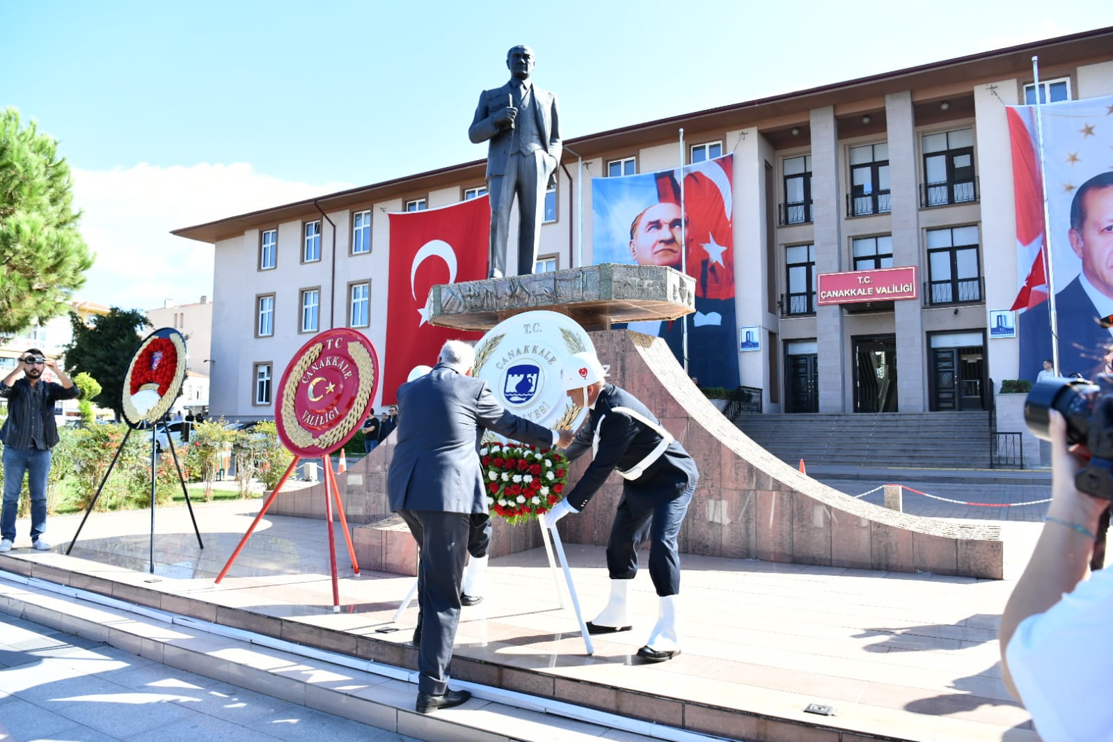 Cumhuriyetin 100. yıldönümü kutlama etkinlikleri, 28 Ekim 2023 Cuma günü Valilik önünde düzenlenen çelenk sunma töreni ile başladı. Çelenk sunma törenine Vali İlhami Aktaş, Çanakkale Boğaz ve Garnizon Komutanı Tuğamiral Mustafa Biçen, Belediye Başkanı Ülgür Gökhan, CHP Çanakkale Milletvekili İsmet Güneşhan, Çanakkale Baro Başkanı Av. Hande Keskin, kurum ve kuruluş temsilcileri, siyasi partilerin temsilcileri, sendika, oda ve sivil toplum kuruluşlarının temsilcileri, askeri erkan, öğrenciler ve kentliler katıldı. Atatürk Anıtı'na çelenklerin sunulduğu tören, saygı duruşunda bulunulması ve İstiklal Marşı'nın okunması ile son buldu.