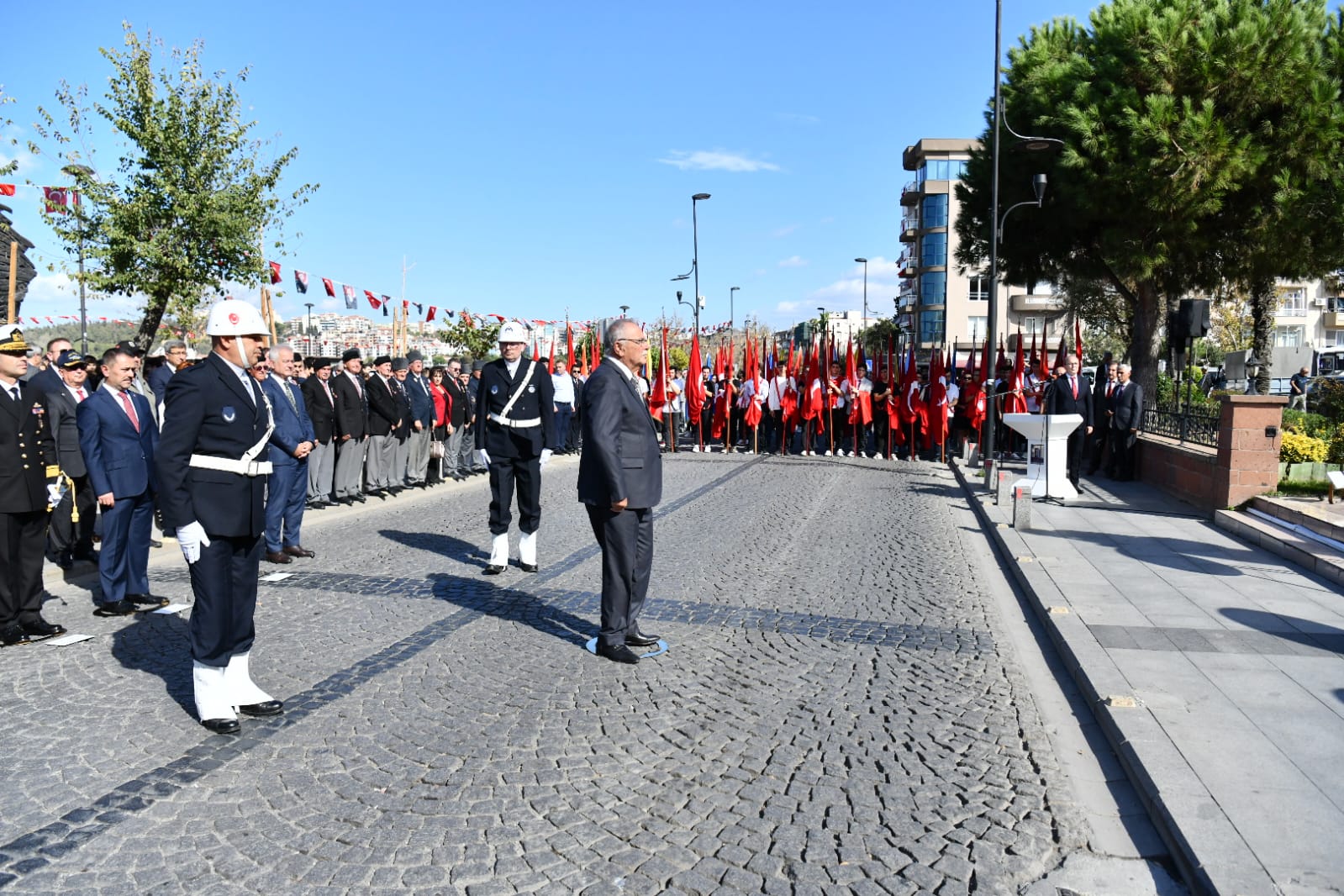 Cumhuriyet Bayramı dolayısıyla, 29 Ekim 2022 Cumartesi günü sabah saatlerinde de resmi kutlama törenleri gerçekleşti. Valilik Makamında gerçekleşen tebriklerin kabulünün ardından, kordonboyunda resmi geçit töreni düzenlendi. Vali İlhami Aktaş, Boğaz ve Garnizon Komutanı Tuğamiral Mustafa Biçen, Belediye Başkanı Ülgür Gökhan, eşi Hale Gökhan, protokol üyeleri, kurum ve kuruluşların temsilcileri, siyasi partilerin temsilcileri, sivil toplum kuruluşlarının temsilcileri, askeri erkan, öğrenciler ve kentlilerin katıldığı törende, günün anlam ve önemine ilişkin konuşmalar yapılırken, Jandarma Özel Harekat ve Mehteran gösterisi de büyük ilgi gördü. Program, resmi geçit töreniyle sona erdi.