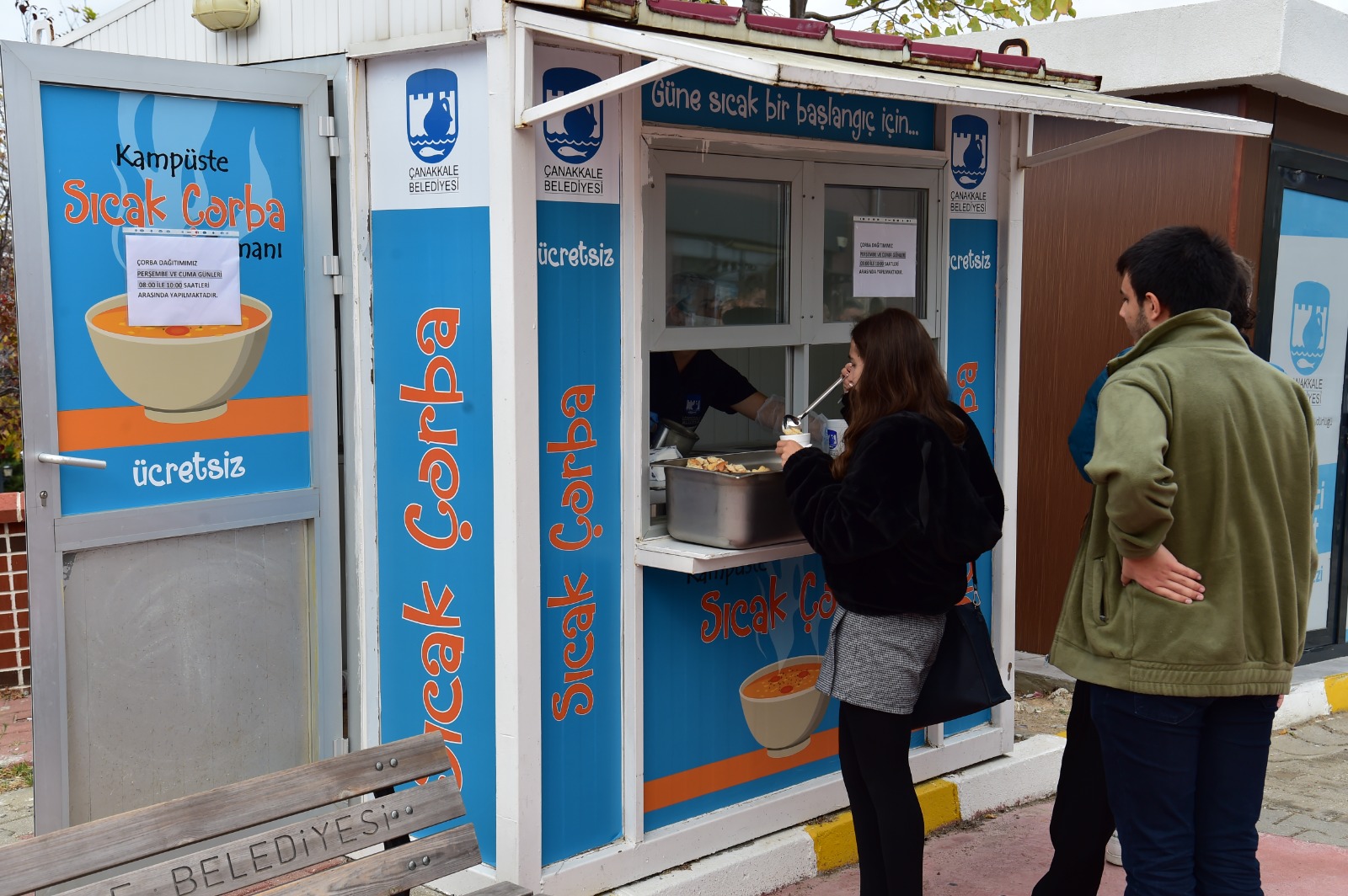 Çanakkale Belediyesi'nin üniversite öğrencilerinin güne sıcak bir başlangıç yapması amacı ile başlattığı sıcak çorba ikramları bu yıl da devam ediyor.