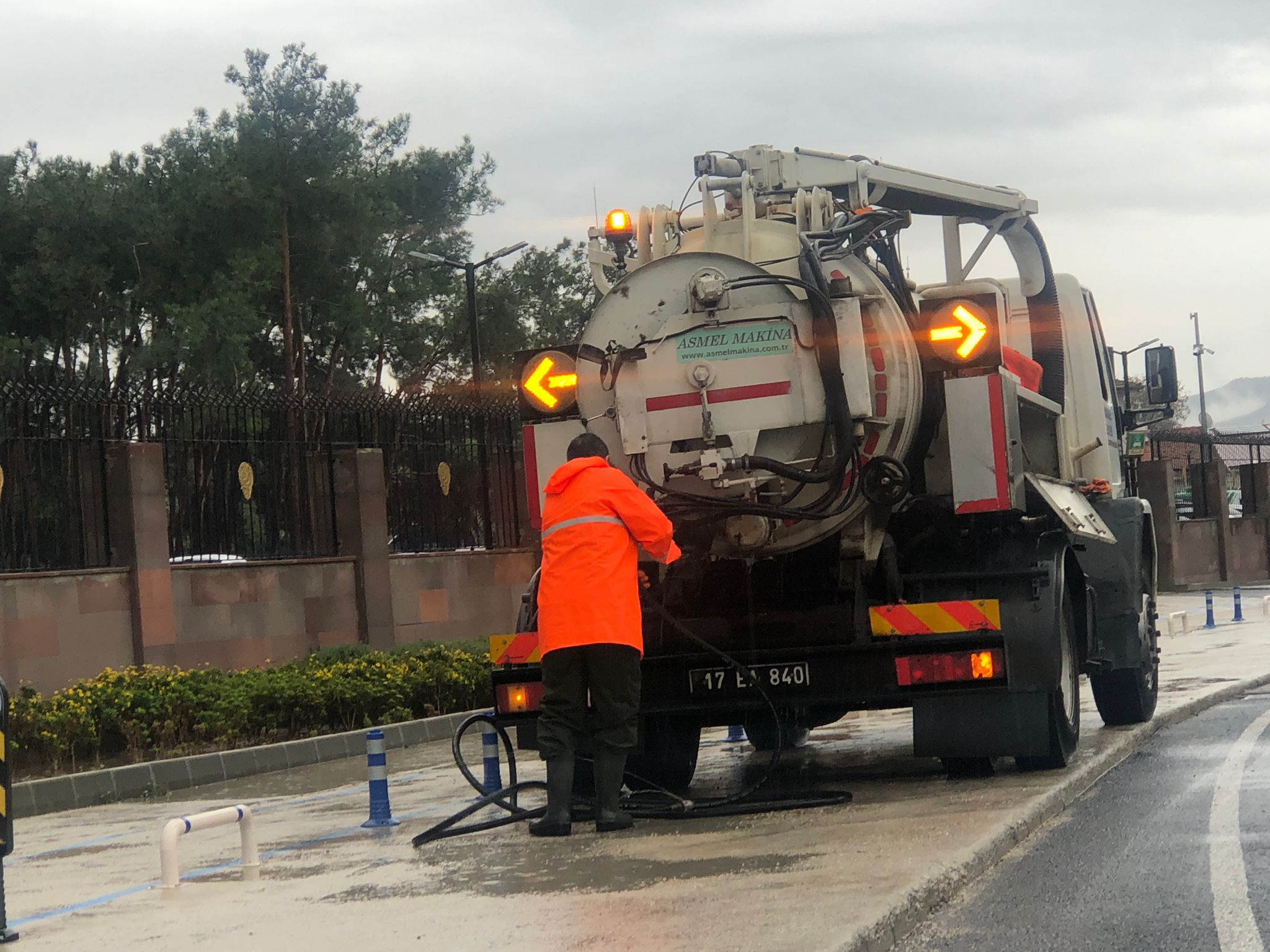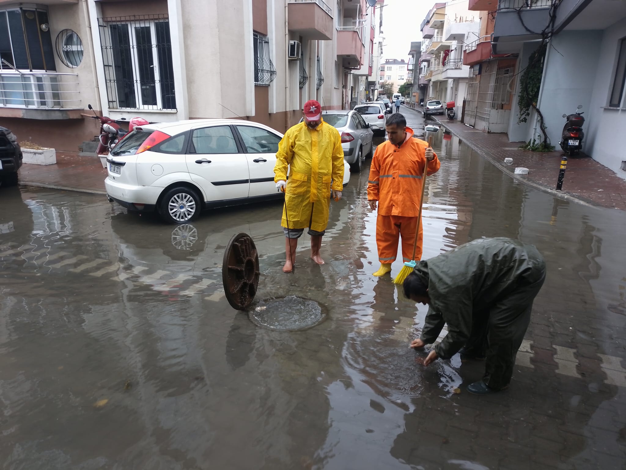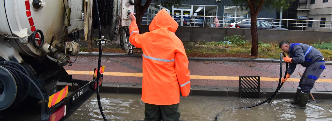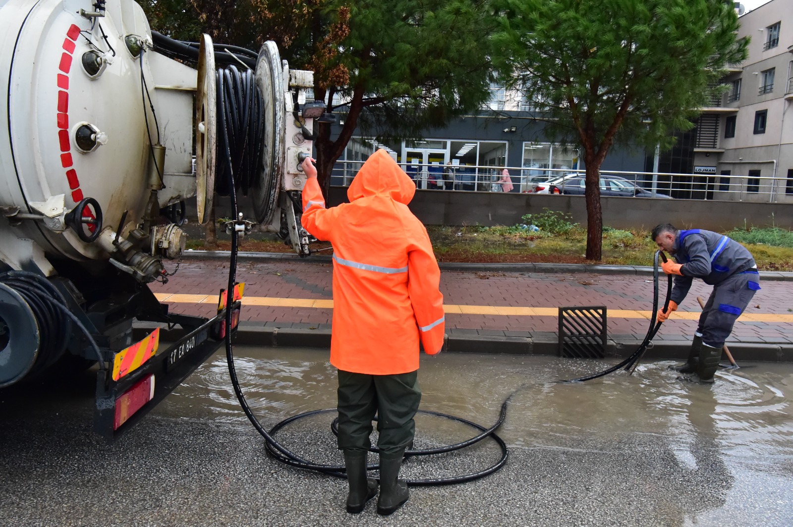Şiddetli yağışın neden olduğu su birikimlerine yönelik ekipler vidanjörlerle müdahalede bulunurken, ızgaraların üzerinde de yağmurla birlikte gelen malzemenin herhangi bir olumsuzluk yaratmaması adına müdahaleler gerçekleştirildi.