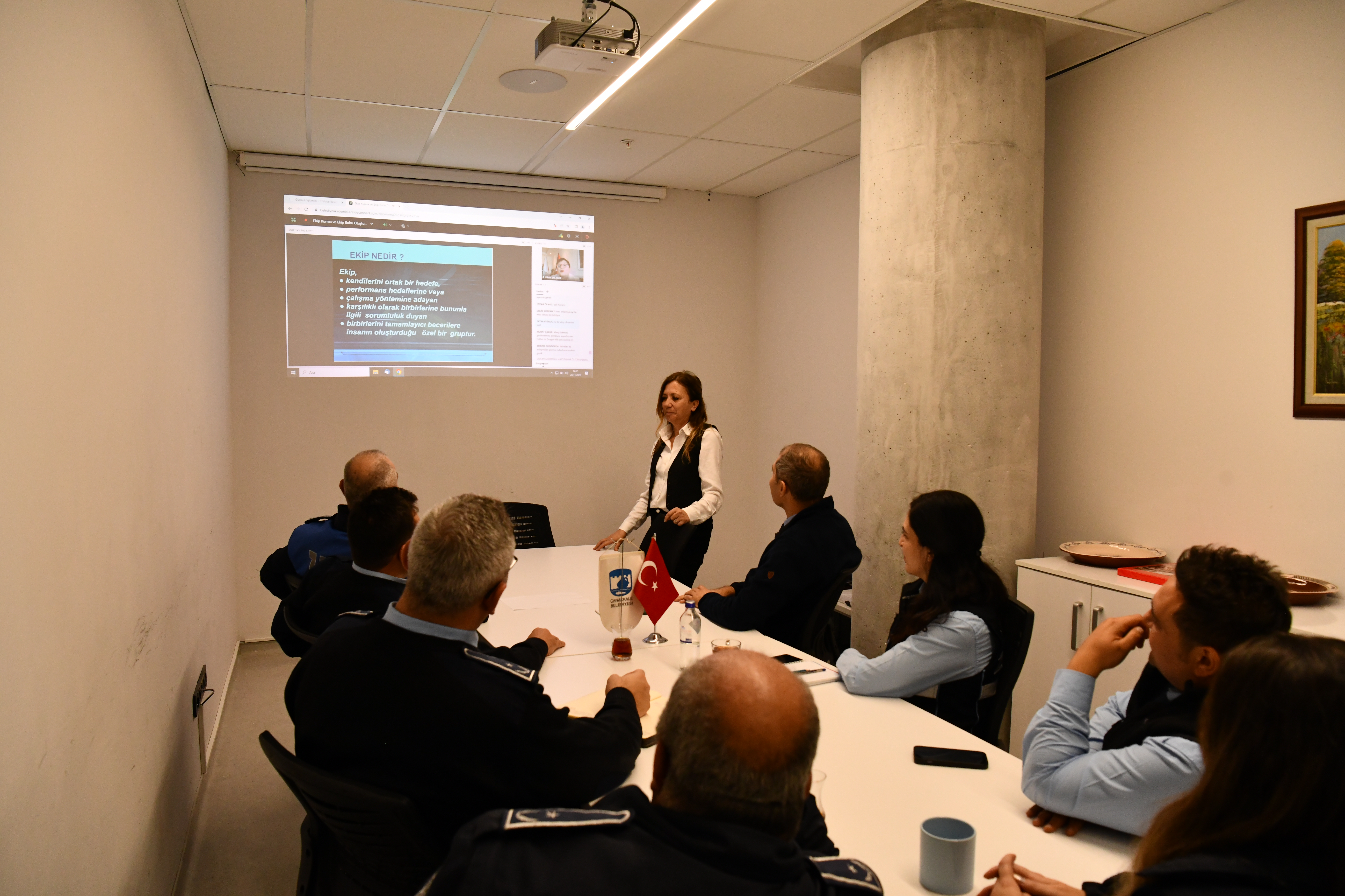 Çanakkale Belediyesi Zabıta Müdürlüğü Yönetici kadrosunda görev yapan personeller, Türkiye Belediyeler Birliği’nin interaktif olarak düzenlediği “Yeni Nesil Yöneticilik ve Ekip Ruhu Oluşturma” adlı eğitime katıldı.