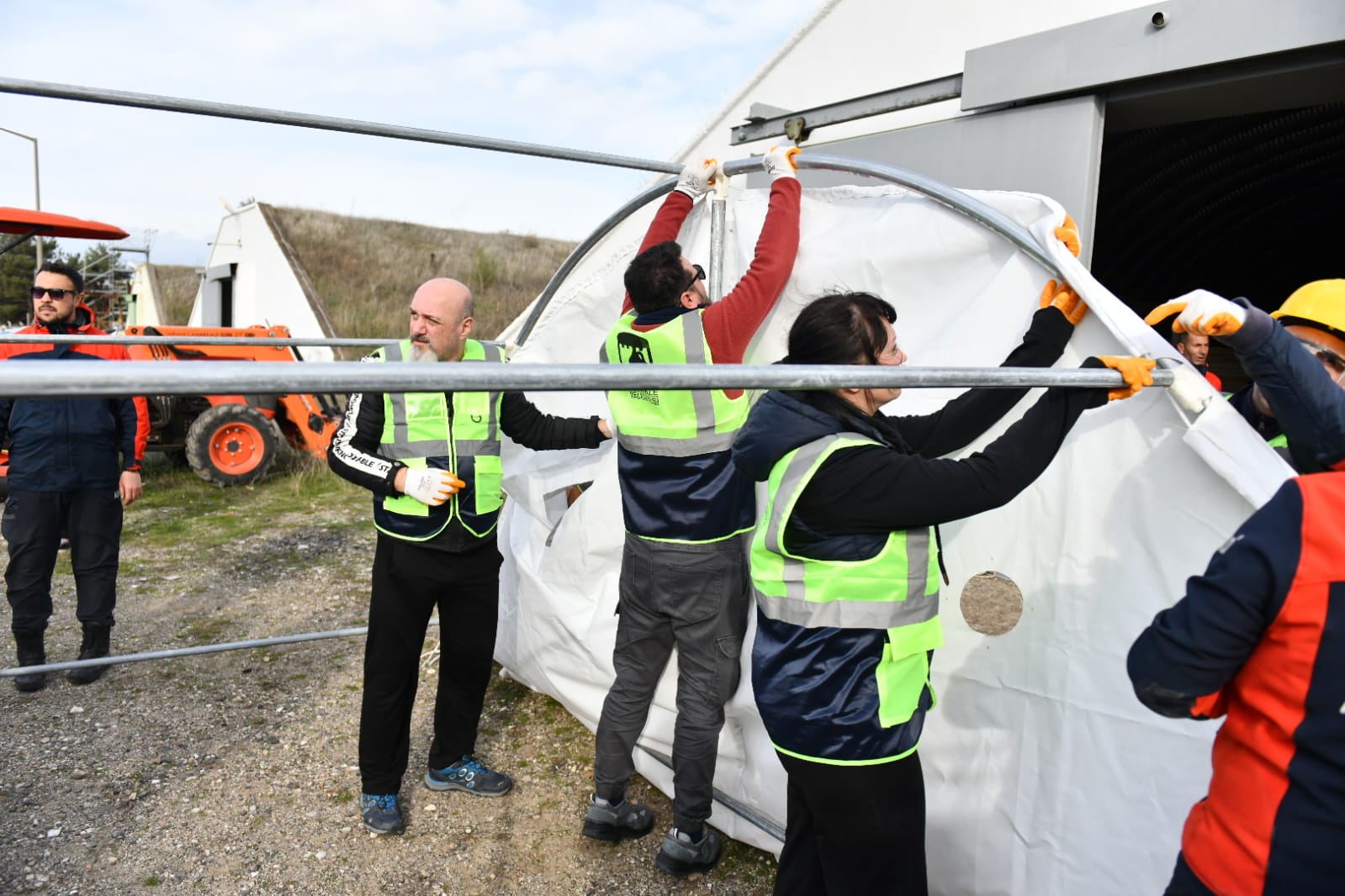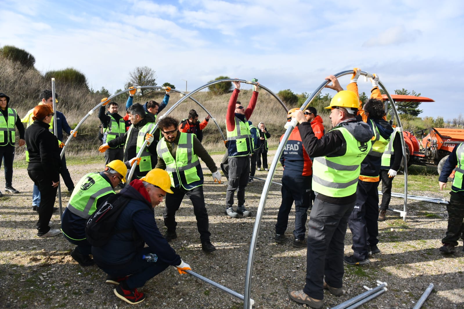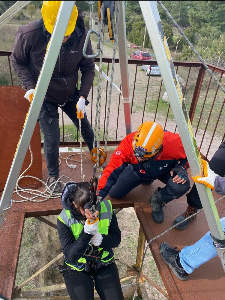 Teorik eğitimlerini tamamlayan gönüllü ekip, Çınarlı Köyü'nde bulunan AFAD Lojistik ve Eğitim sahasında da uygulamalı eğitimlerine başladı. Eğitimler kapsamında gönüllülere, çadır kurulumu, hafif kurtarma tatbikatı gibi uygulamalı bilgiler veriliyor.