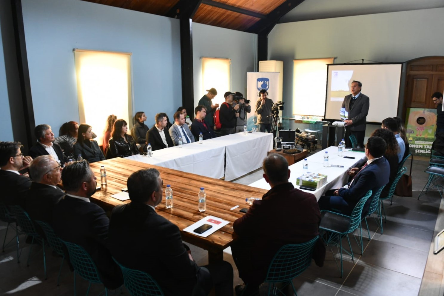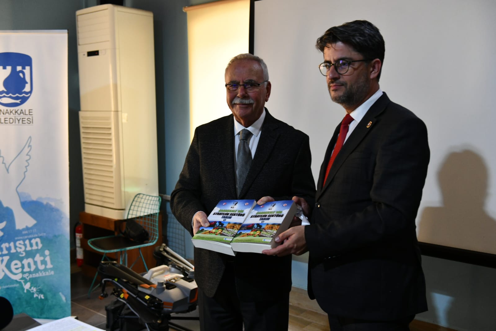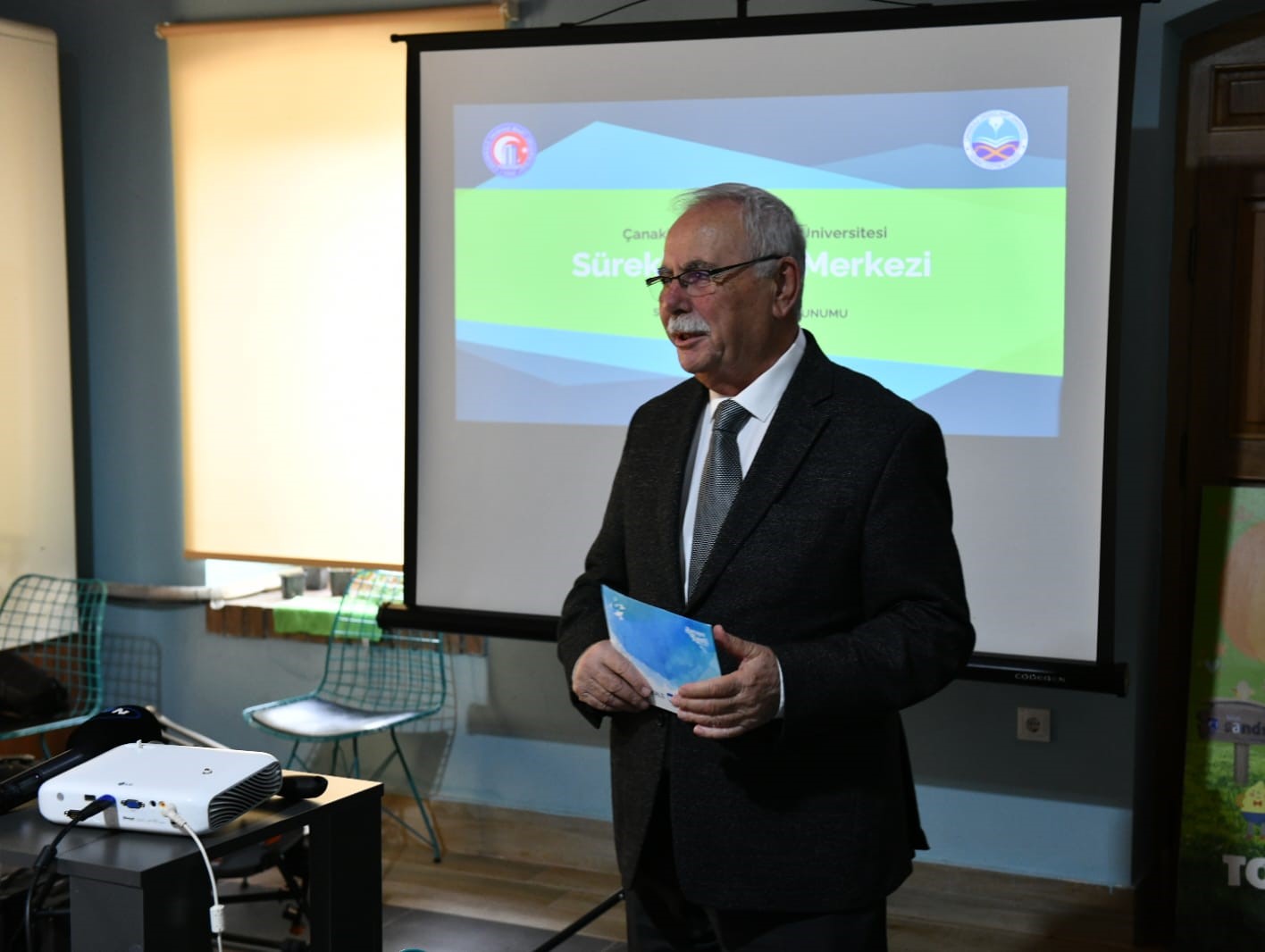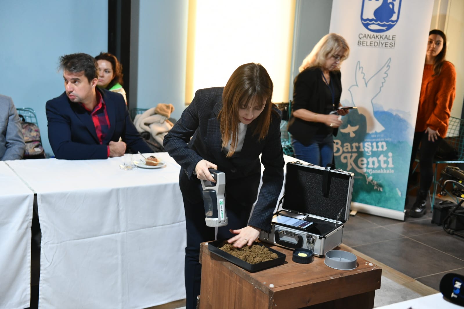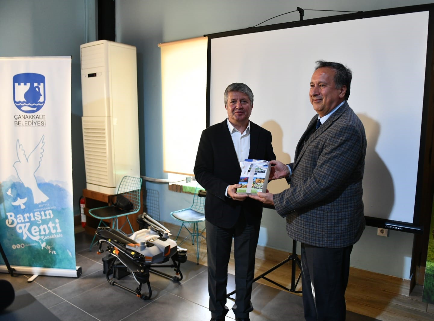 Törende bir konuşma yapan Belediye Başkan Yardımcısı M. İrfan Mutluay, tarımın Çanakkale için çok önemli olduğunu vurgulayarak, Çanakkale Belediyesinin tarım ve kırsal kalkınma alanlarındaki faaliyetleri hakkında bilgiler verdi. Mutluay, “Çanakkale nüfusunun 3'te 1'i yani yüzde 32'si tarım ile uğraşıyor. Daha doğrusu belde ve köylerde yaşıyor. İlçelerde yaşayan insanların da önemli bir bölümünün geliri tarıma dayalı. Dolayısıyla kent ekonomisinin gerek Çanakkale il merkezinin gerekse diğer ilçelerimizin gelirleri önemli ölçüde tarıma dayalı. Dolayısıyla ekonominin çarkları tarımla dönüyor. Bu nedenle yerel yönetimlerin, belediyelerin tarımla ilgili işler yapmak zorunda olduğunu düşündük ve Belediye Başkanımız Sayın Ülgür Gökhan'ın tasarrufuyla ben de Belediye Meclis Üyesi olarak görev aldım ve bu çalışmaları arkadaşlarımızla birlikte başladık ve sürdürdük. Aslında bu çalışmalar 2017 yılında Tohum Sandığı çalışmaları ile başladı. Genetik mirasımız olarak adlandırdığımız atalık ve yerel çeşit tohumları geliştirmek, yaygınlaştırmak adına bu çalışmalar başlamıştı. Bu dönemle birlikte biz kendi bünyemizde Yerel Kalkınma Birimi oluşturduk. Birimimiz üretimin, üreticinin ve kooperatifçiliğin desteklenmesi ve bunun dışında coğrafi işaret, markalaşma ve pazarlamaya dönük üç ana başlıkta kendi görevini tanımladı. Bu çalışmaların devamı olarak da çiftçimize ücretsiz toprak analizi hizmeti sunduk. Neden sunduk? Kontrollü gübre kullanımı ve kontrolsüz gübre kullanımının bitki sağlığına, toprağa, suya ve dolayısıyla insan sağlığına olan olumsuz etkilerini azaltmak amacıyla kurduk. Bu yıl ücretsiz zeytinyağı analizine başladık. Nedeni ise hem üreticinin ürettiği zeytinyağının kalitesini bilmesi, tüketicinin de bu belgeye, bu kaliteye güvenerek bunu tüketmesi veya satın almasını sağlamaktı. Bununla birlikte yeni projemiz ki ocak ayında devreye girecek; özellikle orman yangınından etkilenen, çok yoğun bir şekilde arıcılık faaliyeti yapan bal üreticilerimiz var; onlara temel petek desteği sunacağız. Kısmen de olsa bu zararı azaltmak adına Çanakkale Belediyesi katkı sunacak.