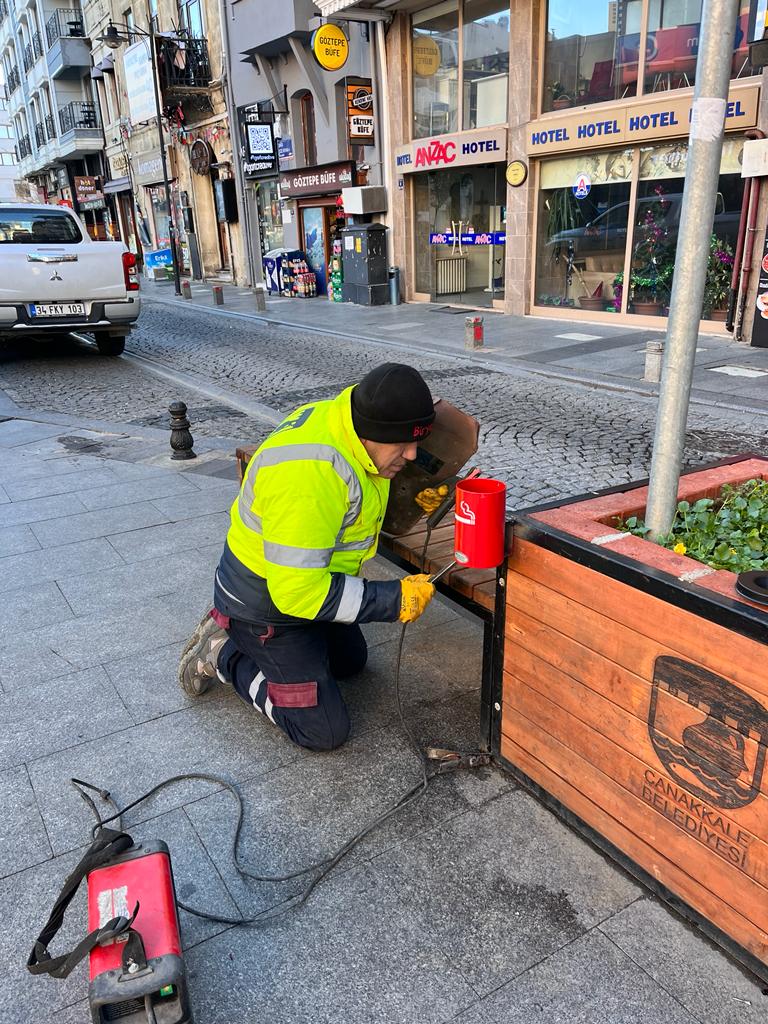 Çanakkale Belediyesi Temizlik İşleri Müdürlüğünce kent genelinde yürütülen çalışmalar doğrultusunda, kentin hem tarihi hem de önemli sosyal mekanlarından biri olan Saat Kulesi Meydanına genel çevre temizliği adına metal küllükler yerleştirildi.