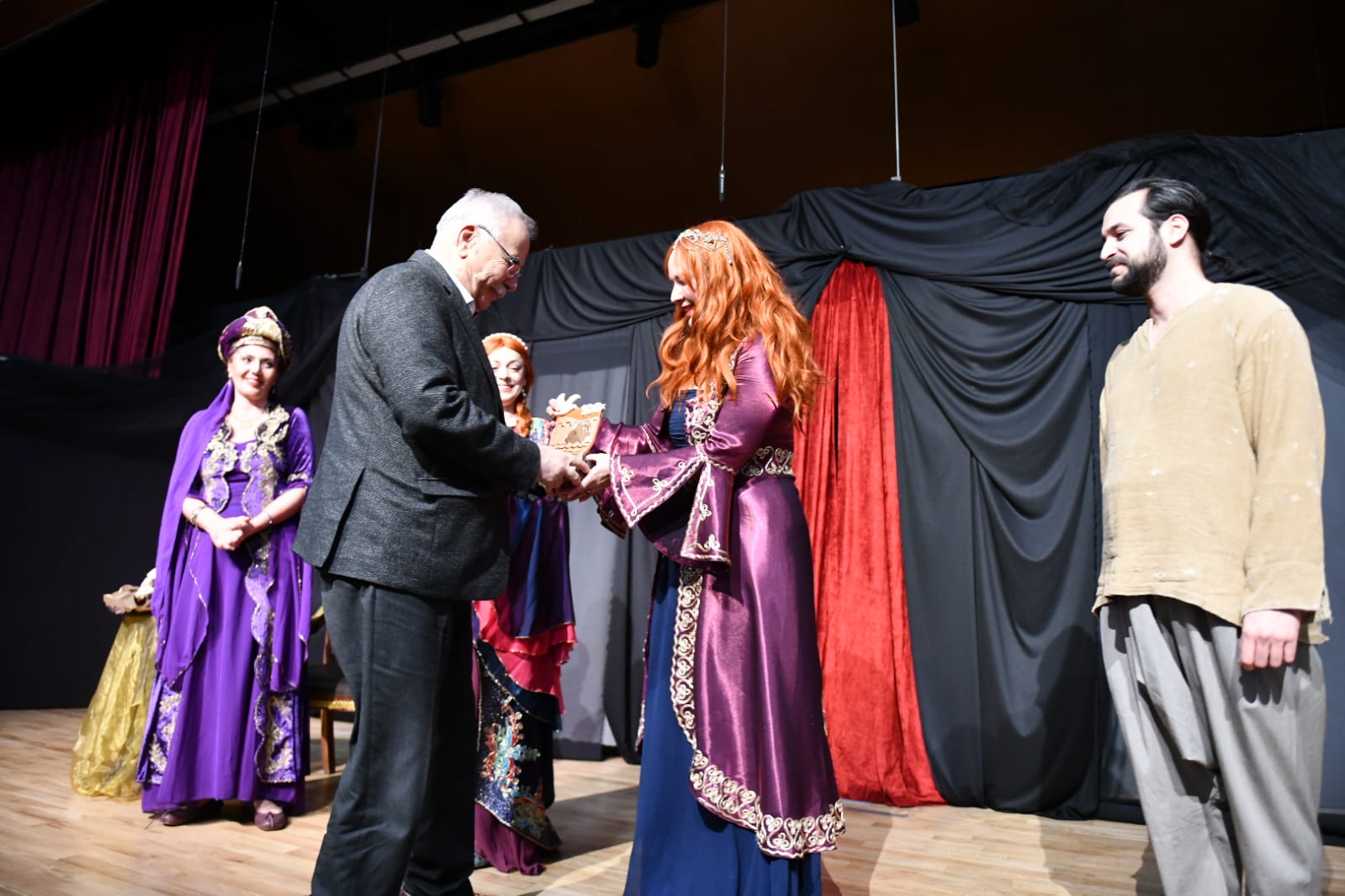 Oyuncuların sergilediği başarılı performans izleyicilerden alkış alırken, oyun sonunda Belediye Başkanı Ülgür Gökhan oyunculara hediye takdiminde bulundu.