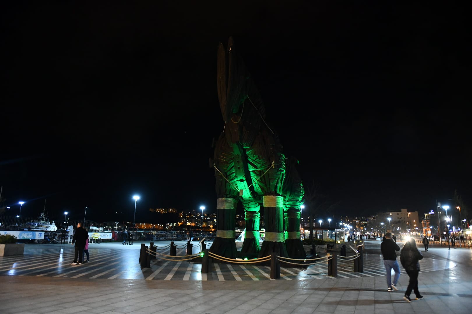 Rahim Ağzı (Serviks) Kanseri Farkındalık Ayı kapsamında, Çanakkale Belediyesi tarafından kentin simgelerinden olan Saat Kulesi ve Truva Atı yeşil renkte ışıklandırıldı.