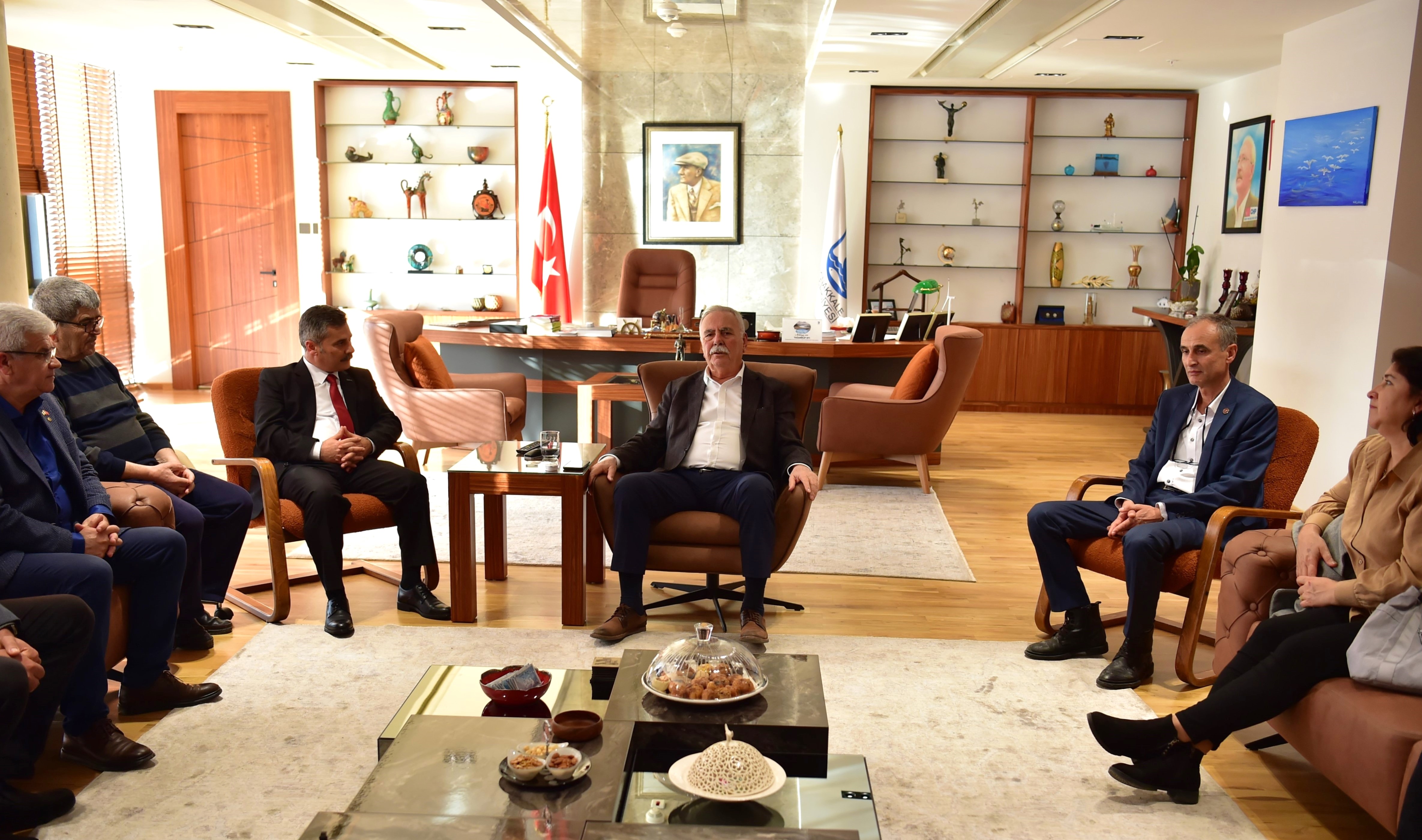 CHP Lapseki Belediye Başkan Adayı Hasan Kart, İlçe Başkanı Mehmet Selamsız ve Yönetim Kurulu üyeleri Belediye Başkanı Ülgür Gökhan’ı makamında ziyaret etti.
