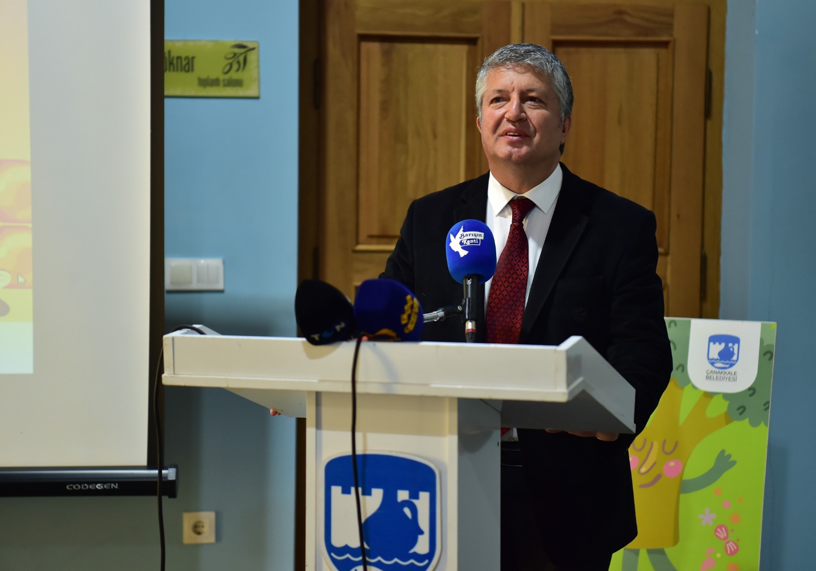 Konuya ilişkin bir konuşma yapan Belediye Başkan Yardımcısı M. İrfan Mutluay da kentin tarımsal ve üretim alanındaki faaliyetlerine destek verilmesi amacıyla kurulan Çanakkale Belediyesi Yerel Kalkınma Biriminin görevlerinin üç ana başlık altında toplandığını belirterek, “Bu görevlerden ilki üretim. Çanakkale Belediyesi büyükşehir olmamasına rağmen, kent içinde tarıma elverişli arazileri vardı. Bu arazileri değerlendirmeye başladık. 2017 yılından itibaren Tohum Sandığı kurulmuştu. Atalık tohumlarımızı korumak, yaygınlaştırmak ve Türkiye'nin her tarafına bu tohumları ileterek genetik mirasa sahip çıkmak istiyorduk. Bu çalışmalarımızı oldukça geliştirdik. İyi tarım sertifikalı üretimler yaptık. Çitçimize önemli destekler sunduk; ücretsiz toprak analizi gibi, bu yıl başladığımız zeytinyağı analizi gibi. Projeler hazırladık; Üretimi Uçuruyoruz projesi hazırladık, Dijital Yüz Projesi hazırladık. Hem turizm hem tarım olarak kentin vizyonuna uygun projeler, Çanakkale kentine de kırsalına da temas edecek işler yapmaya başladık. İkinci ana başlığımız; üretimin, üreticinin ve kooperatiflerin, üretici birliklerinin desteklenmesi, üçüncü başlığımız da coğrafi işaret, markalaşma ve pazarlamaya yönelik çalışmalar yapmaktı. Çok acı olaylar yaşandı geçtiğimiz yaz, 14 köy bundan olumsuz olarak etkilendi. Sadece ormanlar yanmadı. Tarımsal üretimimiz etkilendi, hayvan işletmelerimiz yandı, kovanlarımız yandı ve ciddi bir zararla karşı karşıya kaldık” dedi. Mutluay, bu zararların giderilmesi adına çalışmalar yürütüldüğünü belirterek, bundan sonraki süreçte ortak çalışma ve projelerin süreceğini kaydetti.
