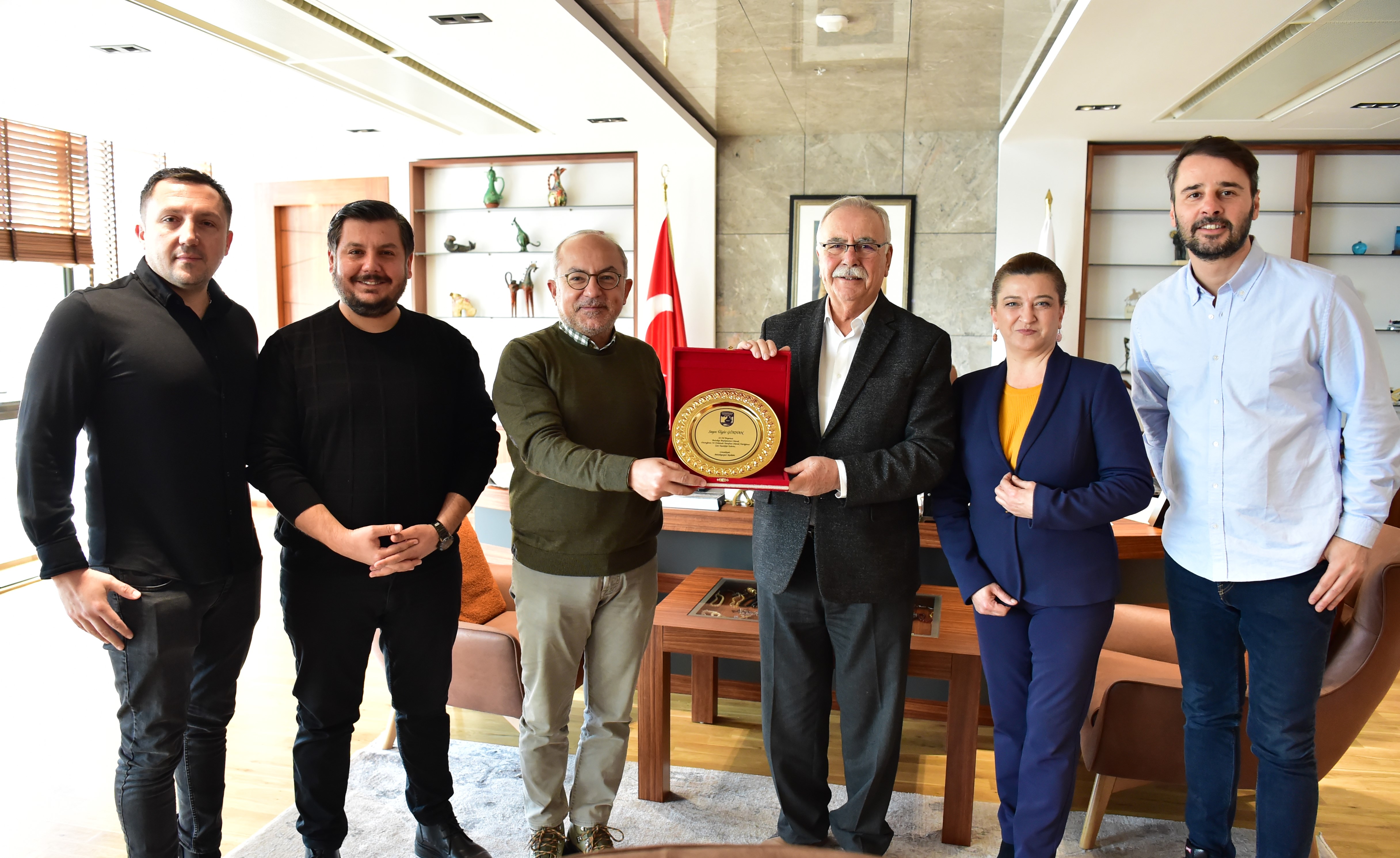 Çanakkale Belediyespor Kulübü Yönetim Kurulu Başkanı Levent Çetin ve yönetim kurulu üyeleri Belediye Başkanı Ülgür Gökhan’a Belediyespor kulübüne sunduğu desteklerden ötürü teşekkür ziyaretinde bulundu.