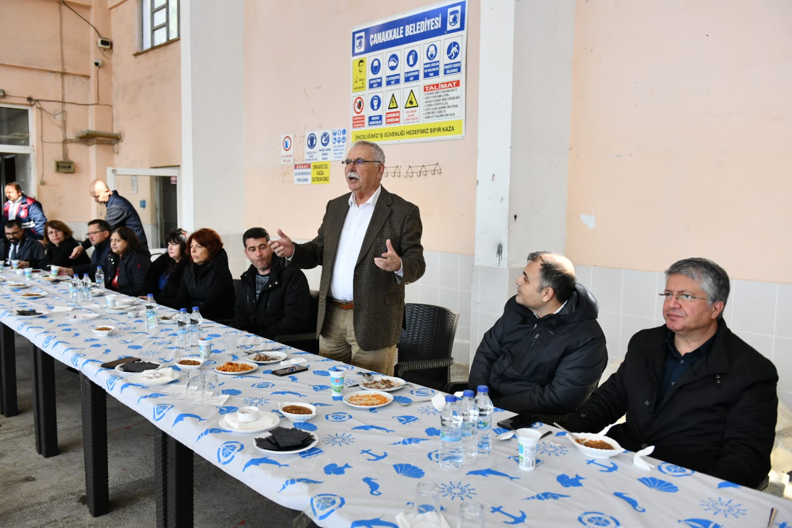 Hem büro hem de sahada zaman zaman zorlu şartlarda görev alan personele, Belediye hizmetlerine sundukları katkılardan dolayı teşekkür eden Başkan Gökhan, “Su ve Kanalizasyon Müdürlüğü personelimiz, çalışma arkadaşlarımız için her zaman söylediğim bir söz vardır; Çanakkale Belediyesinin en cefakar çalışanlarıdır. Siz 24 saat esasına göre çalışıyorsunuz. Çanakkale'de gerek atık su ve gerek içme suyu anlamında her konuda yoğun bir çaba içerisindesiniz. Sizler, gece-gündüz, sıcak-soğuk demeden çalışmaları yürütüp, Çanakkale halkı için emek veriyorsunuz. Gerçekten büyük bir çaba gösteriyorsunuz” dedi.