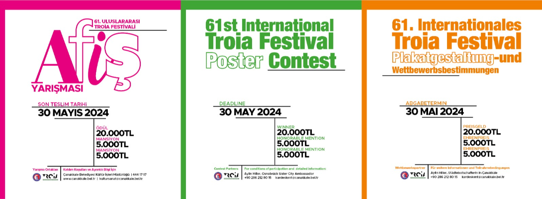 Applications have begun for the Poster Design Contest, which will determine the poster to be used in the announcements of the International Troia Festival to be held for the 61st time between 9-13 August 2024.