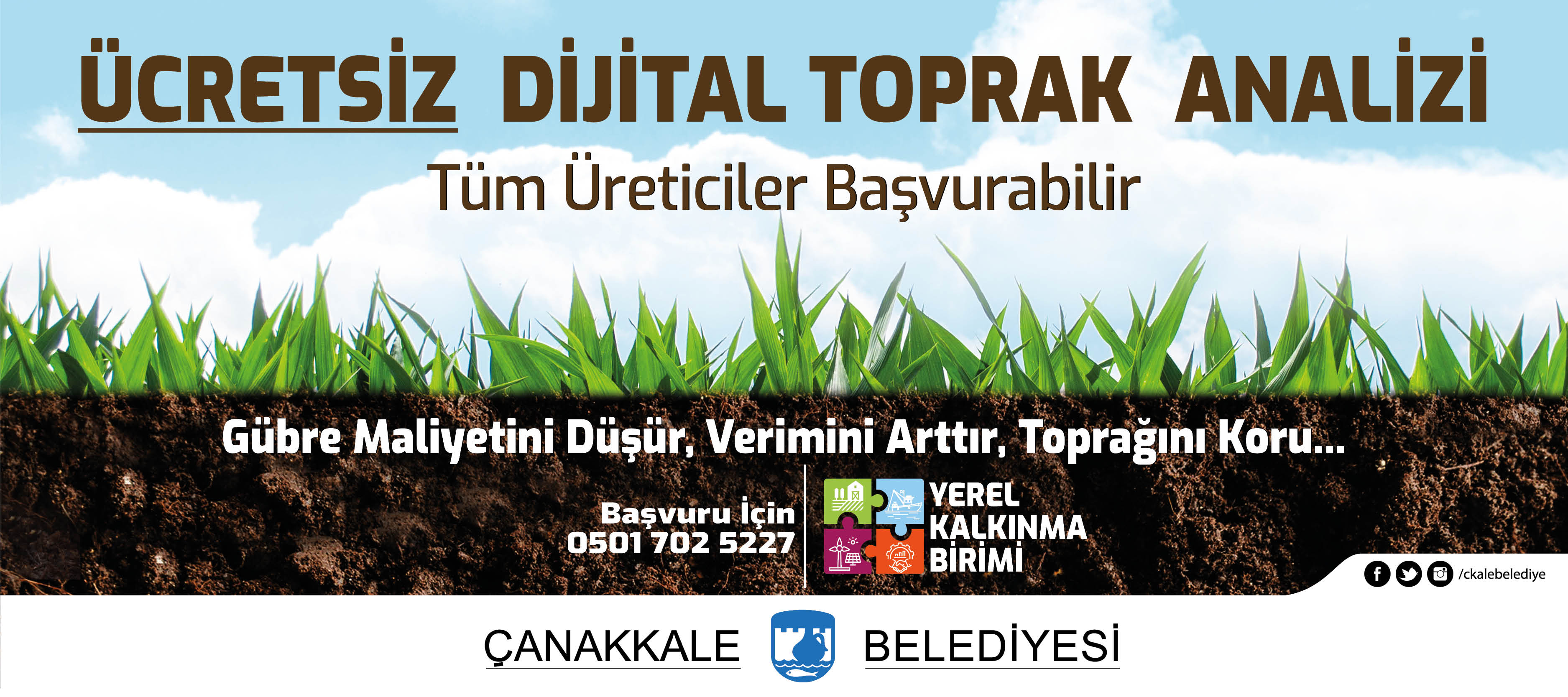 Kentlilerimizin Temiz Tarım ürünlerine erişimine katkı sunmak amacıyla üreticilerin tarımsal üretim öncesi doğru gübre kullanımını teşvik etmek ve üreticilerimizin gübre maliyetini düşürüp, verimini arttıracak olan Ücretsiz Dijital Toprak Analizi Hizmeti başladı.