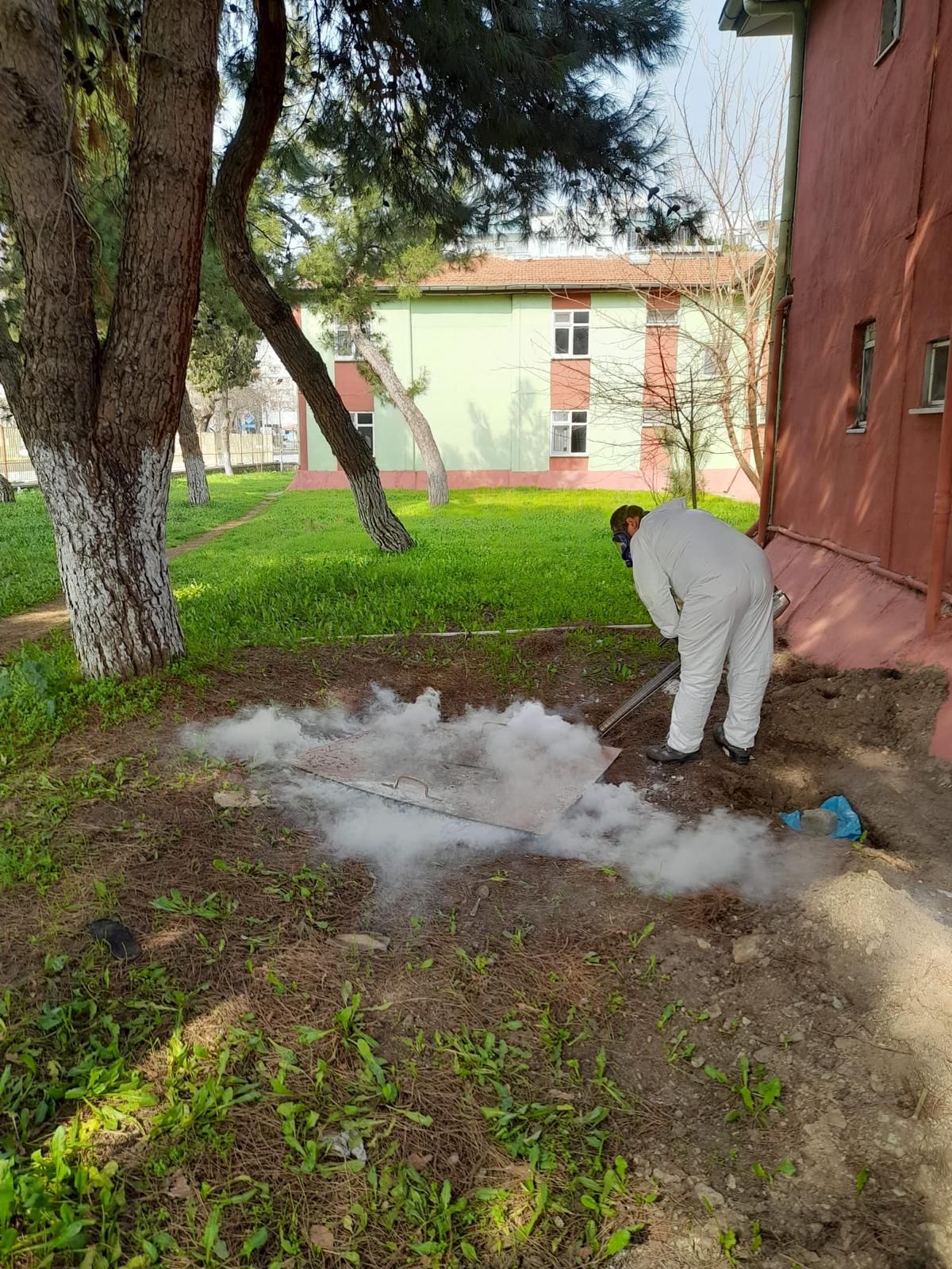Temizlik İşleri Müdürlüğü tarafından başlatılan kışlak mücadelesi çalışmaları kapsamında, kentteki yer altı yağmur ve kanalizasyon hatlarında olması muhtemel sineklerin etkisiz hale getirilmesi amacı ile bir defaya mahsus olmak üzere biyosidal ürün uygulayıcı personel tarafından sıcak sisleme yapıldı.
