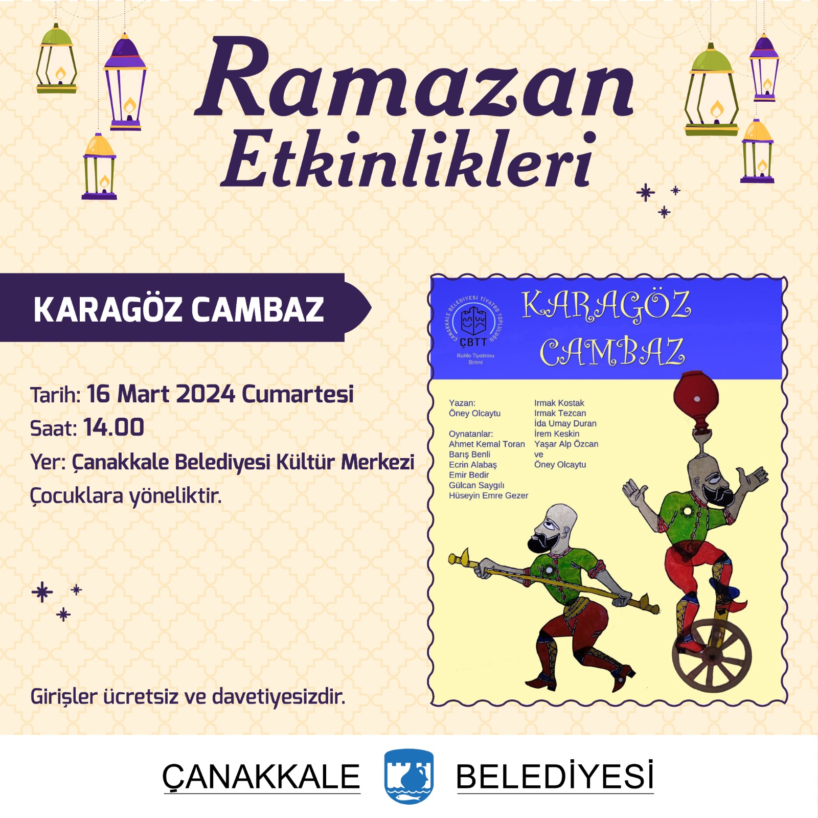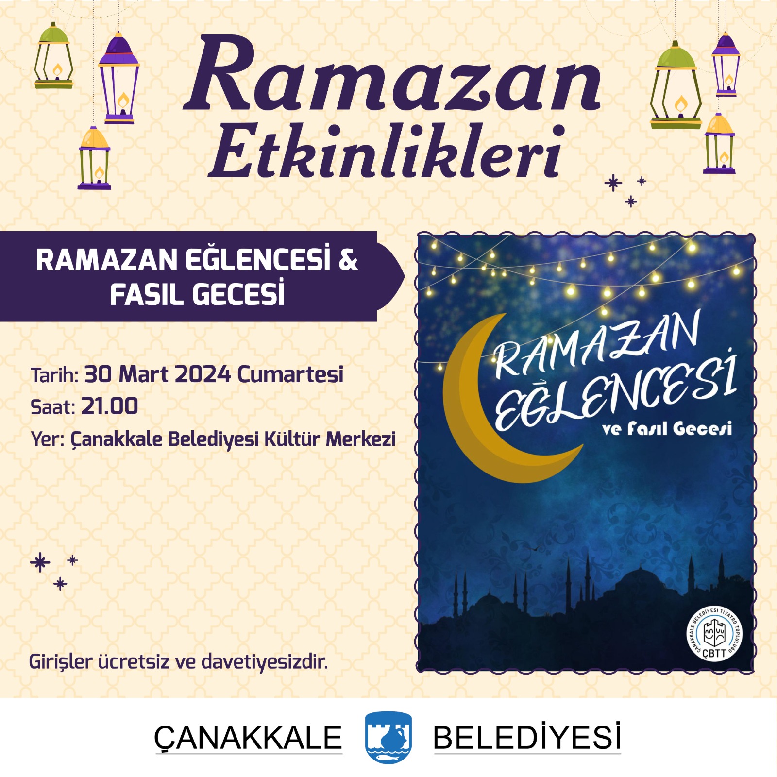 Çanakkale Belediyesi aylık kültür sanat etkinliklerinin mart ayı programında, renkli Ramazan etkinlikleri de yer alıyor.