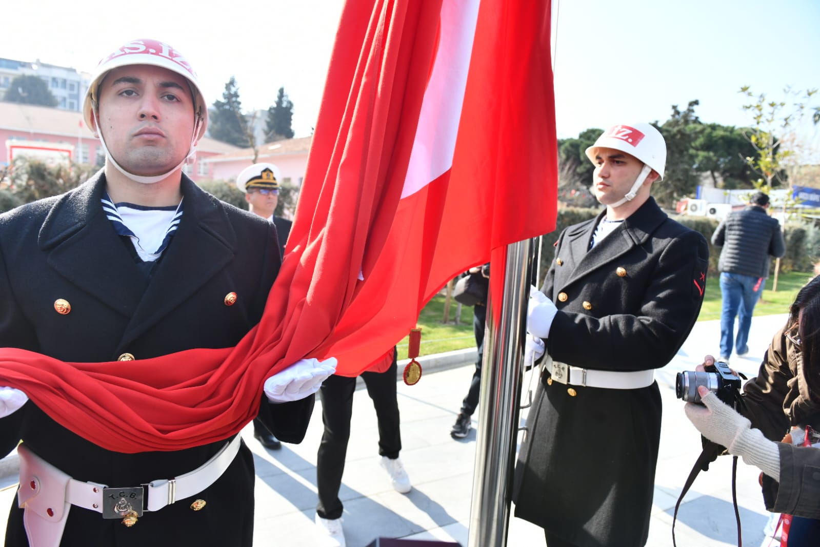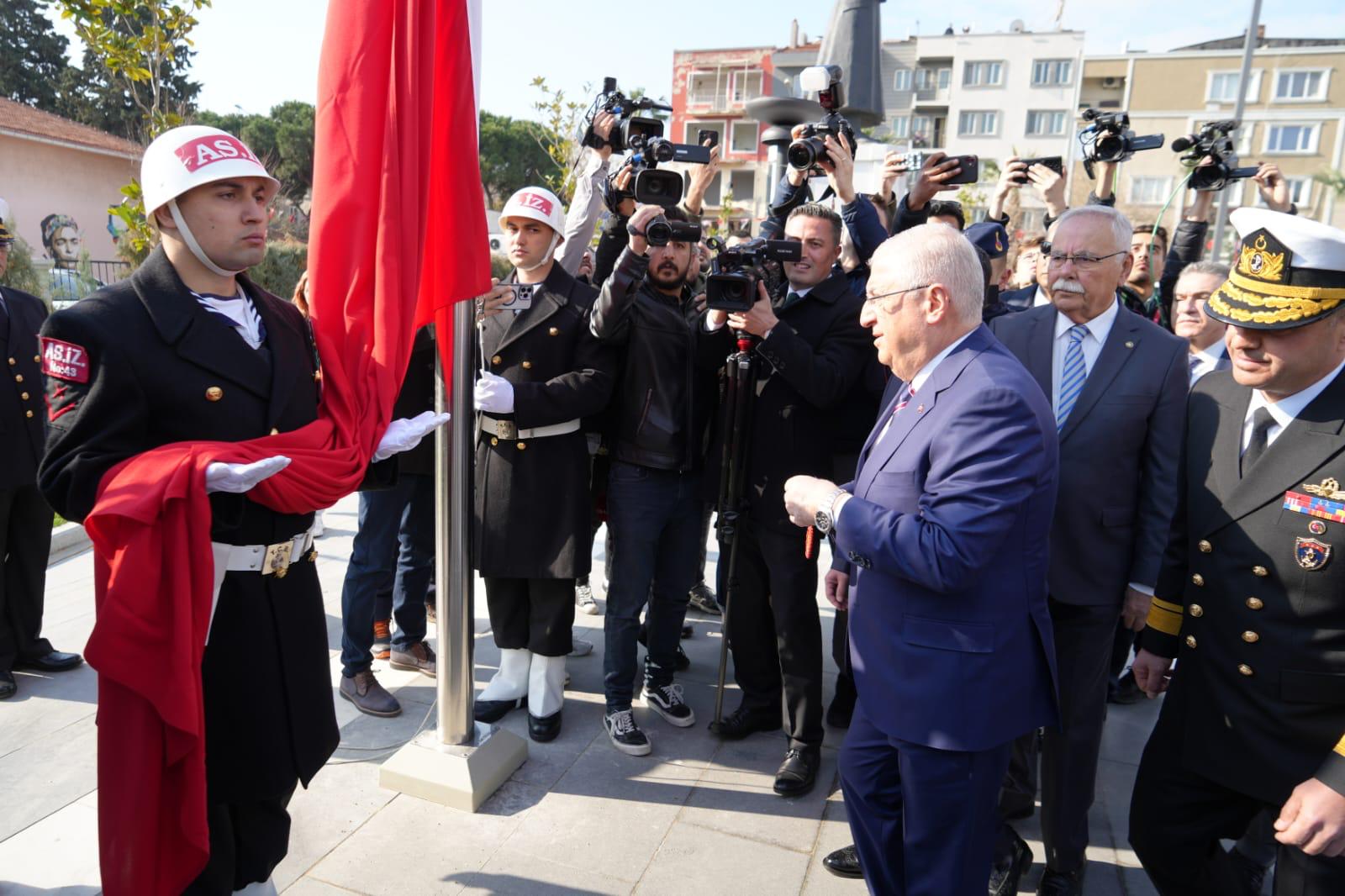 Saygı duruşu ve İstiklal Marşının okunması ile sona eren törende, Çanakkale Boğazı'nda demirli TCG Büyükada fırkateyninden 21 pare top atışı gerçekleştirildi.