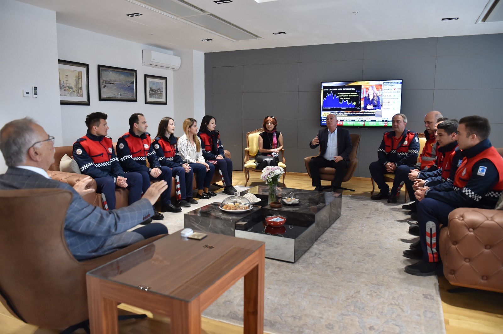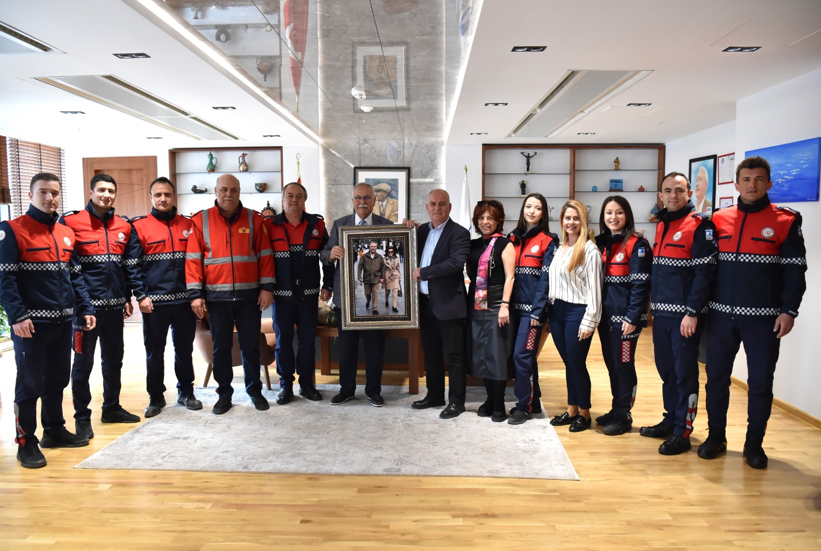 Başkan Gökhan, 26 Mart 2024 Salı günü gerçekleştirilen ziyaretlerde ilk olarak İtfaiye Müdürü Olcay Runa ve itfaiye çalışanlarını ağırladı. Gökhan, kente yönelik hizmetlerinden dolayı itfaiye personeline teşekkür ederek, bundan sonraki görevlerinde başarılar diledi. İtfaiye Müdürü Olcay Runa ise, Başkan Gökhan’a teşekkürlerini ileterek, hediye takdiminde bulundu. Ziyaret hatıra fotoğrafı çekimiyle sona erdi.