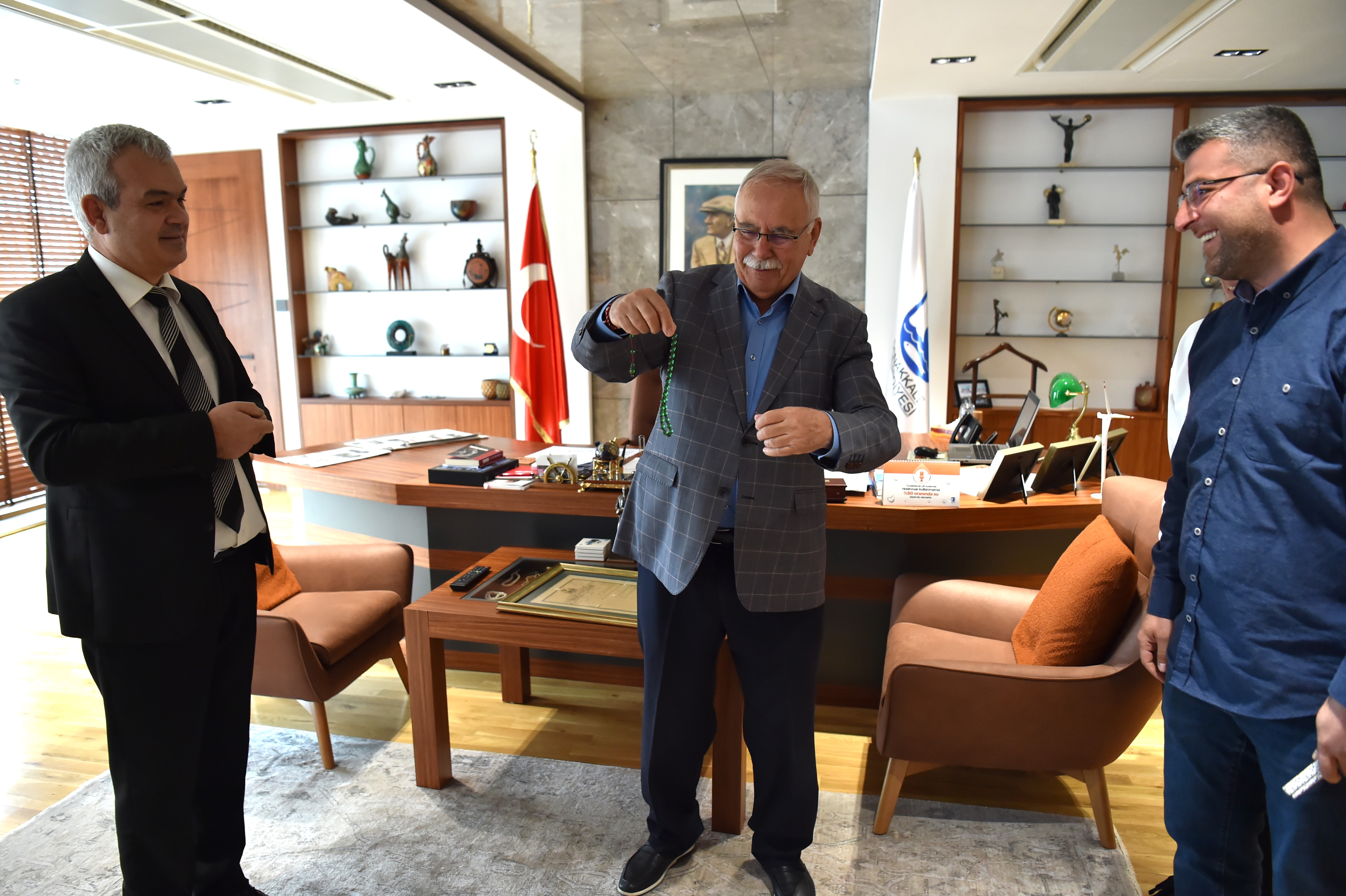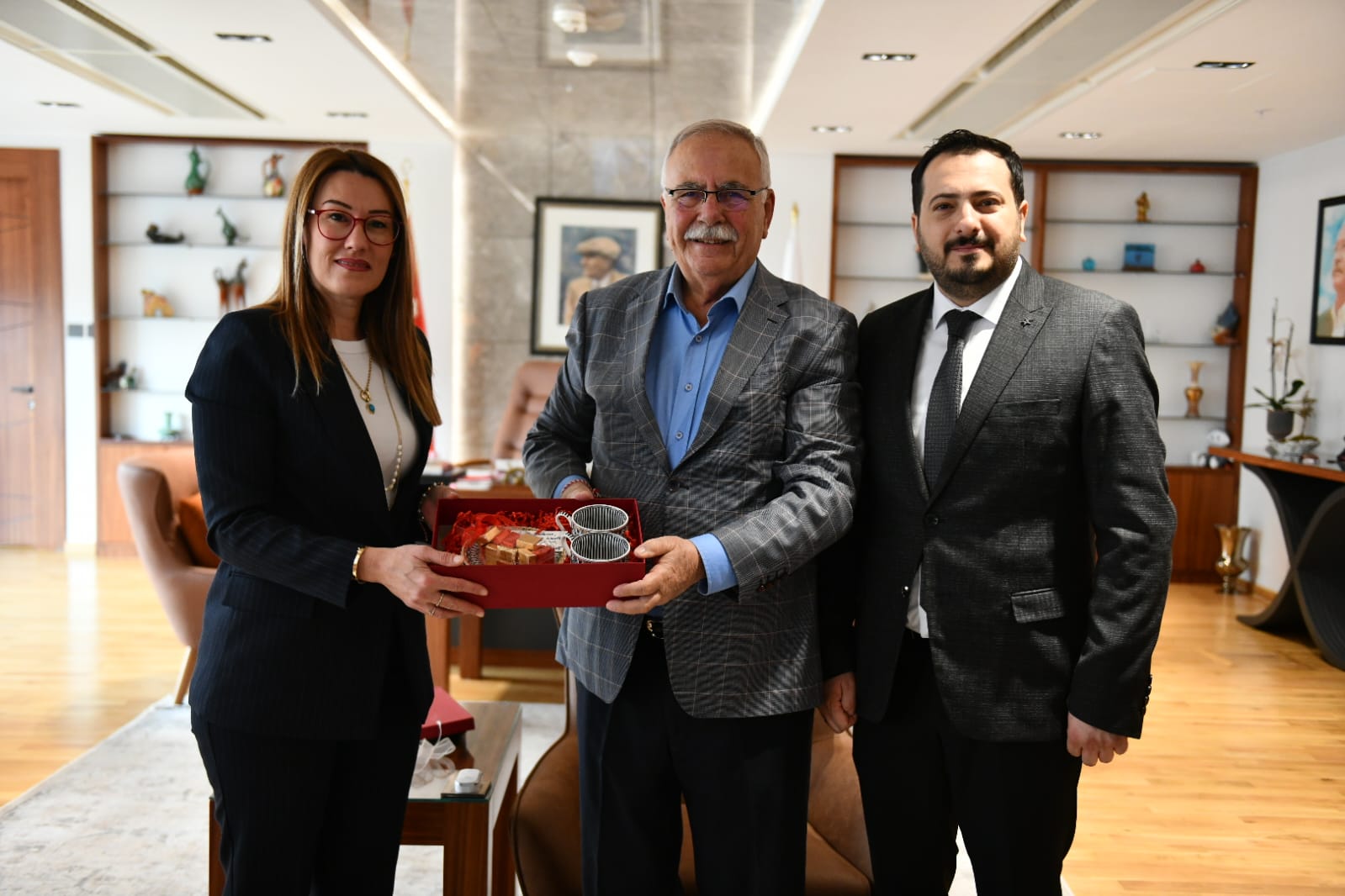 Belediye Başkanı Ülgür Gökhan 28 Mart 2024 Perşembe günü gerçekleşen nezaket ziyaretleri kapsamında ilk olarak, Gelecek Partisi Genel Başkan Yardımcısı Yeşim Karadağ ile birlikte Gelecek Partisi Çanakkale Belediye Başkanı Adayı Vahap Özsüer’i makamında ağırladı. Sohbet ortamında geçen ziyarette Karadağ ve Özsüer, Çanakkale’ye verdiği hizmetlerden dolayı Başkan Gökhan’a teşekkürlerini sunarak hediye takdiminde bulundu.