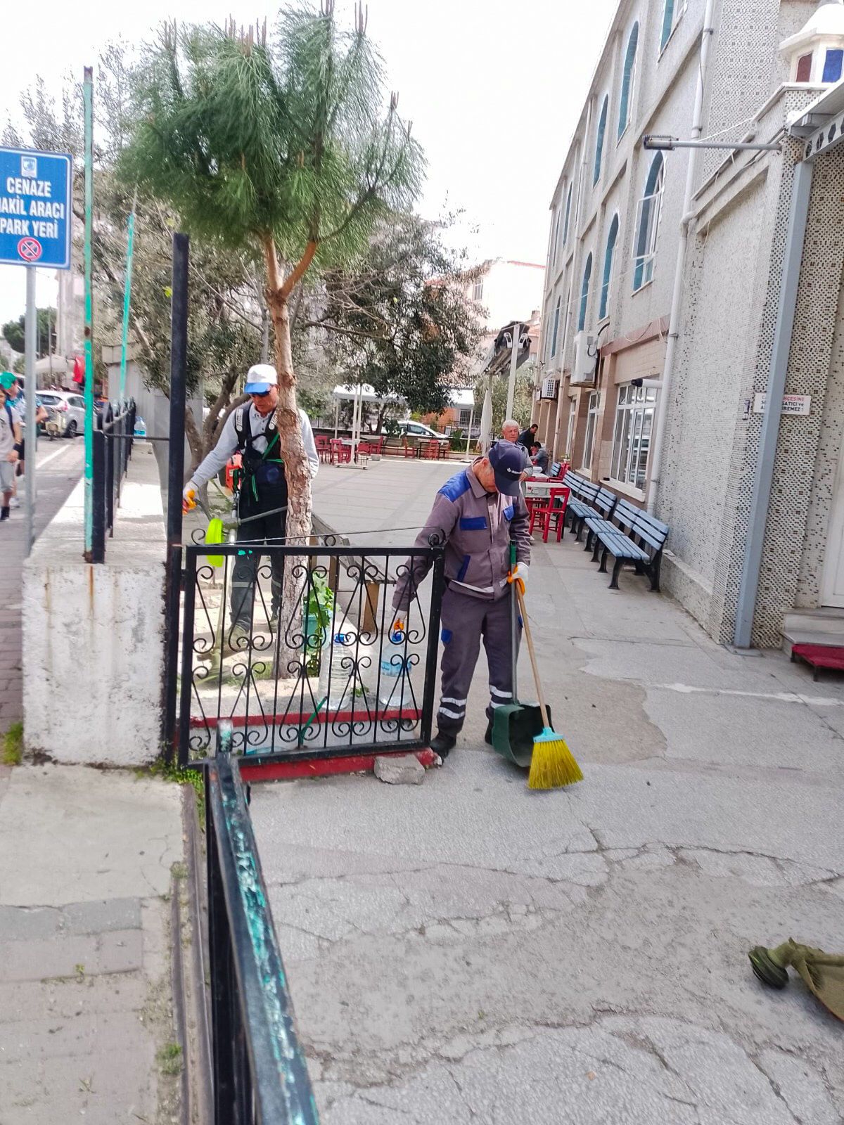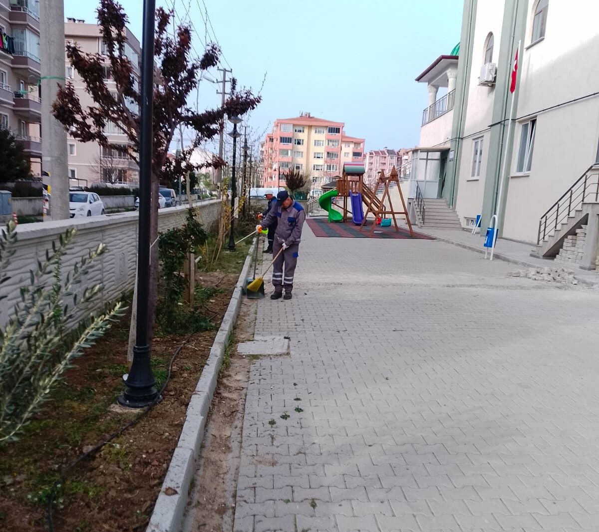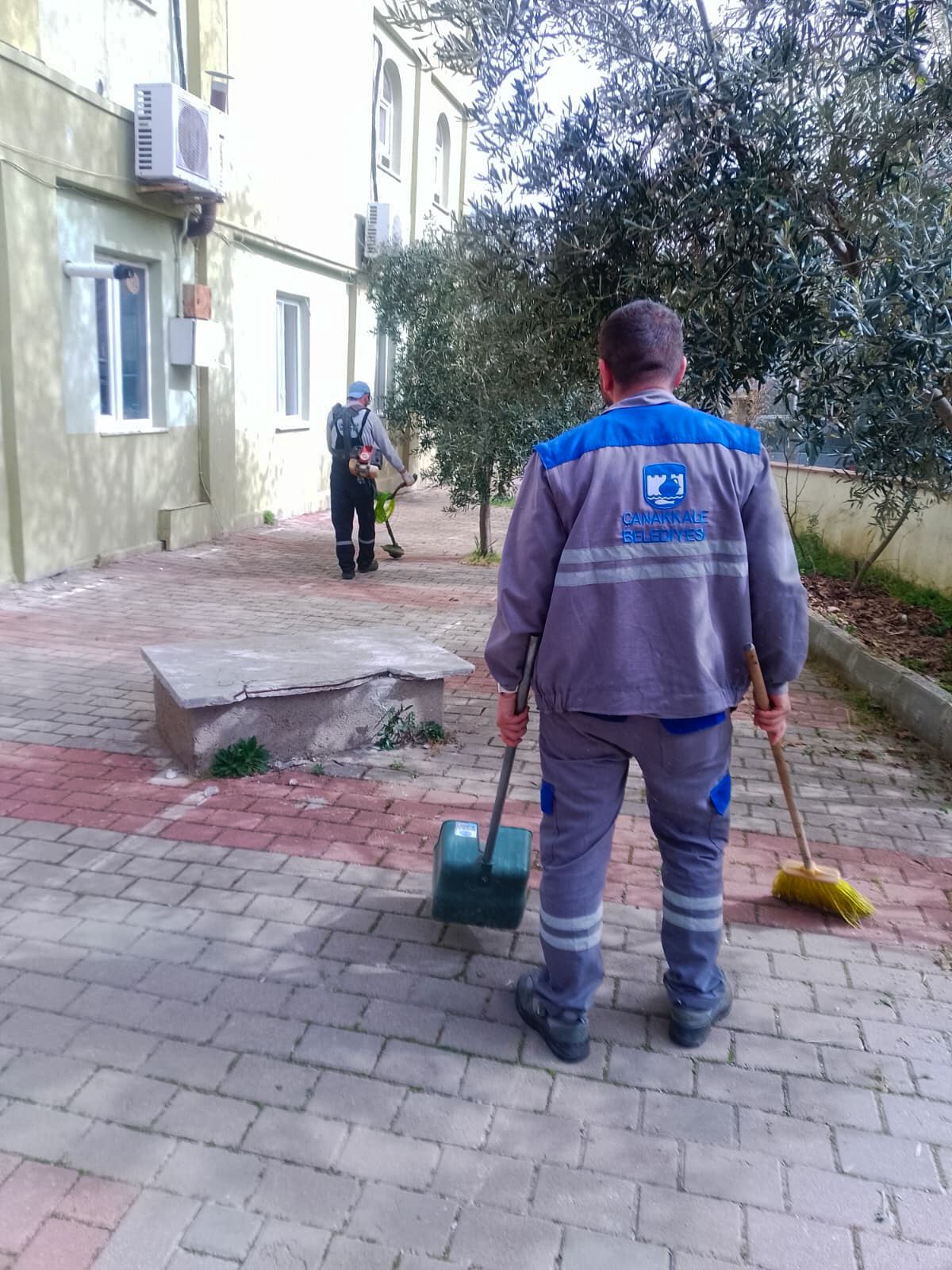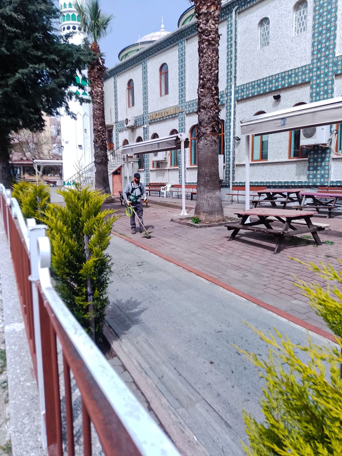 Çanakkale Belediyesi ekiplerince yürütülen rutin çalışmalar kapsamında, camilerin avlu kısımları ve yakın çevreleri süpürge ve temizlik araçları ile temizlenirken, yine cami ve yakın çevrelerinde ot temizliği de yapıldı.