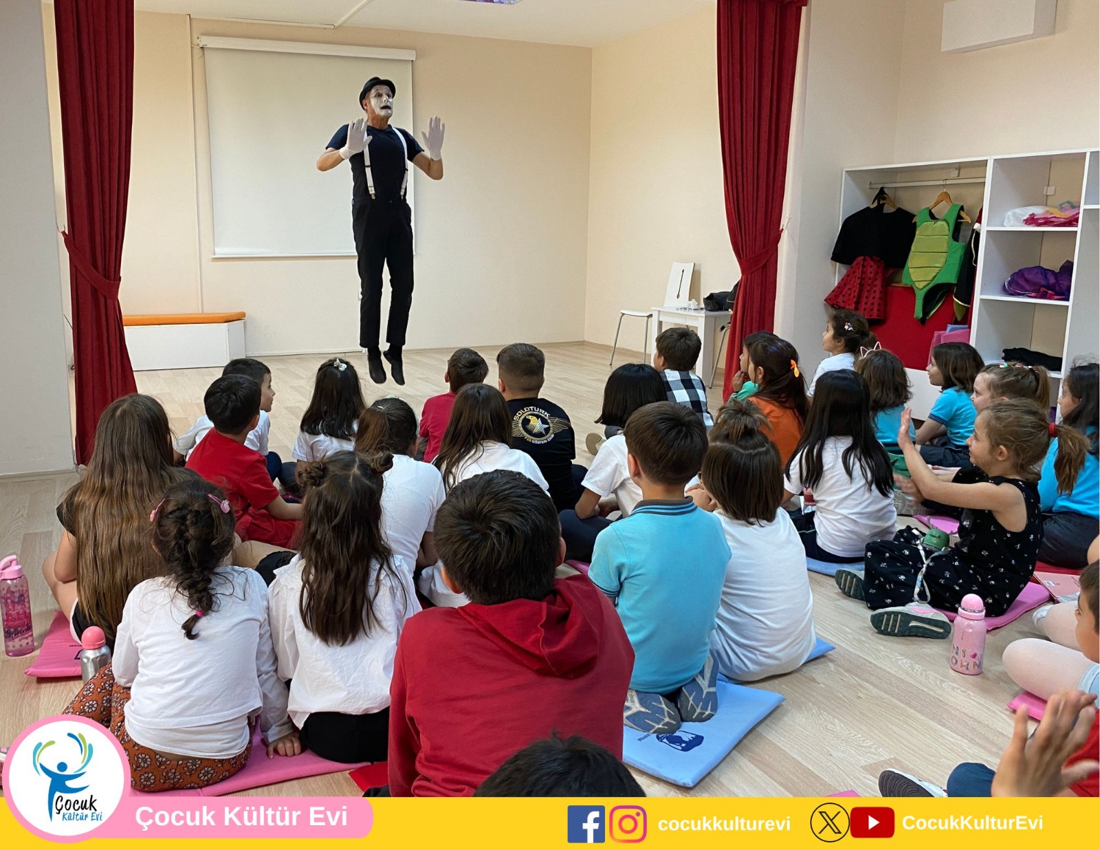 1. sınıf ve üzeri çocuklarla Çocuk Kültür Evi drama atölyesinde bir araya gelen Ünal Pekel, gösterim öncesinde pantomim sanatının inceliklerinden bahsederek çocuklarla keyifli bir sohbet gerçekleştirdi. Daha sonra gösterimin makyaj hazırlığı kısmını da çocuklarla paylaşan Ünal Pekel, gerçekleştirdiği interaktif pantomim gösterisi ile büyük beğeni topladı. Tek tek ve grup olarak pantomim hareketlerini deneyimleme fırsatı bulan çocukların keyifleri görülmeye değerdi. Çocukların yoğun ilgi gösterdiği buluşma, toplu fotoğraf çekimi ile sona erdi.