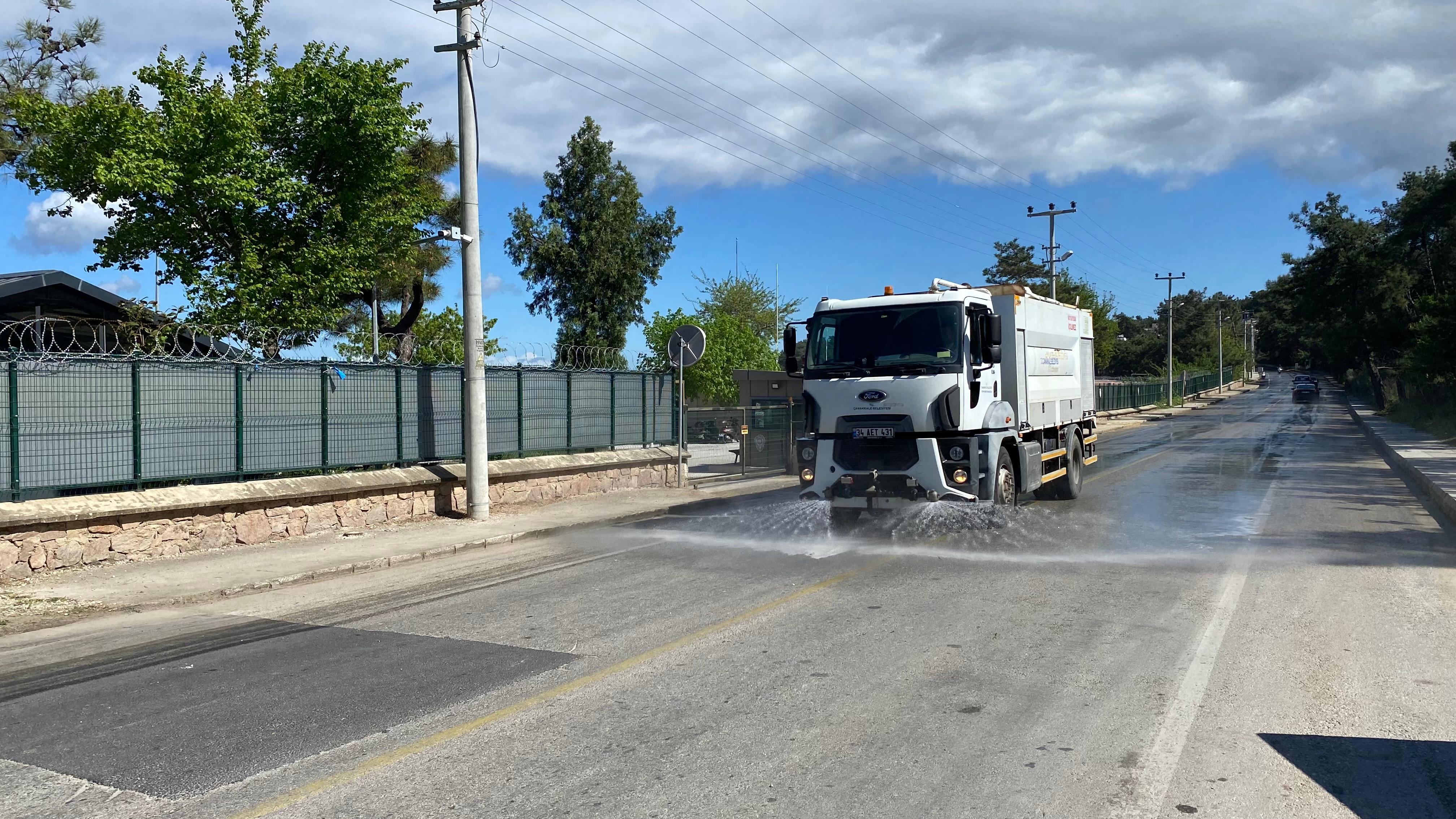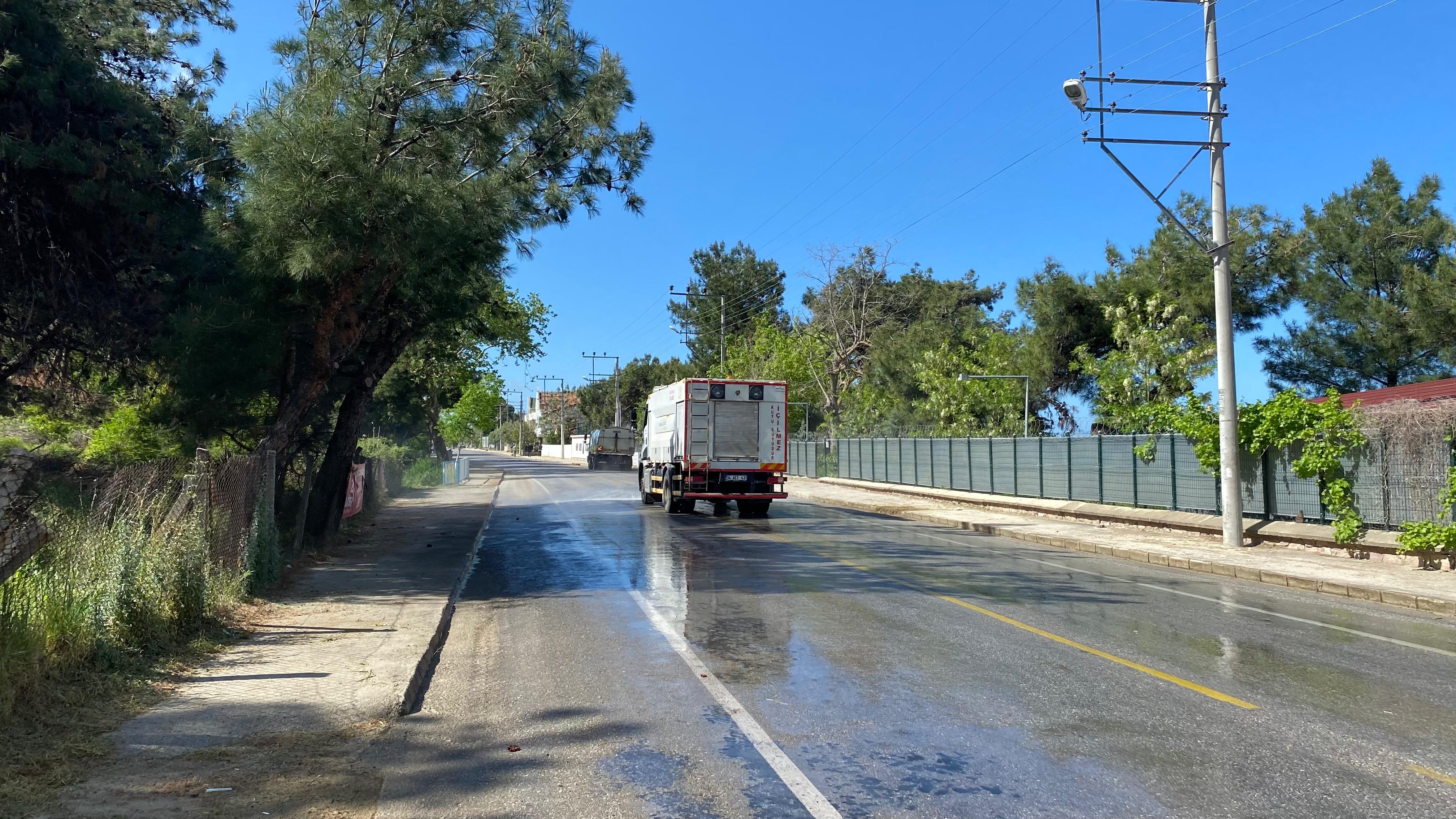 Çalışmaların devamında ise bölgedeki cadde ve sokaklar arazöz araçları ile süpürülüp yıkandı.