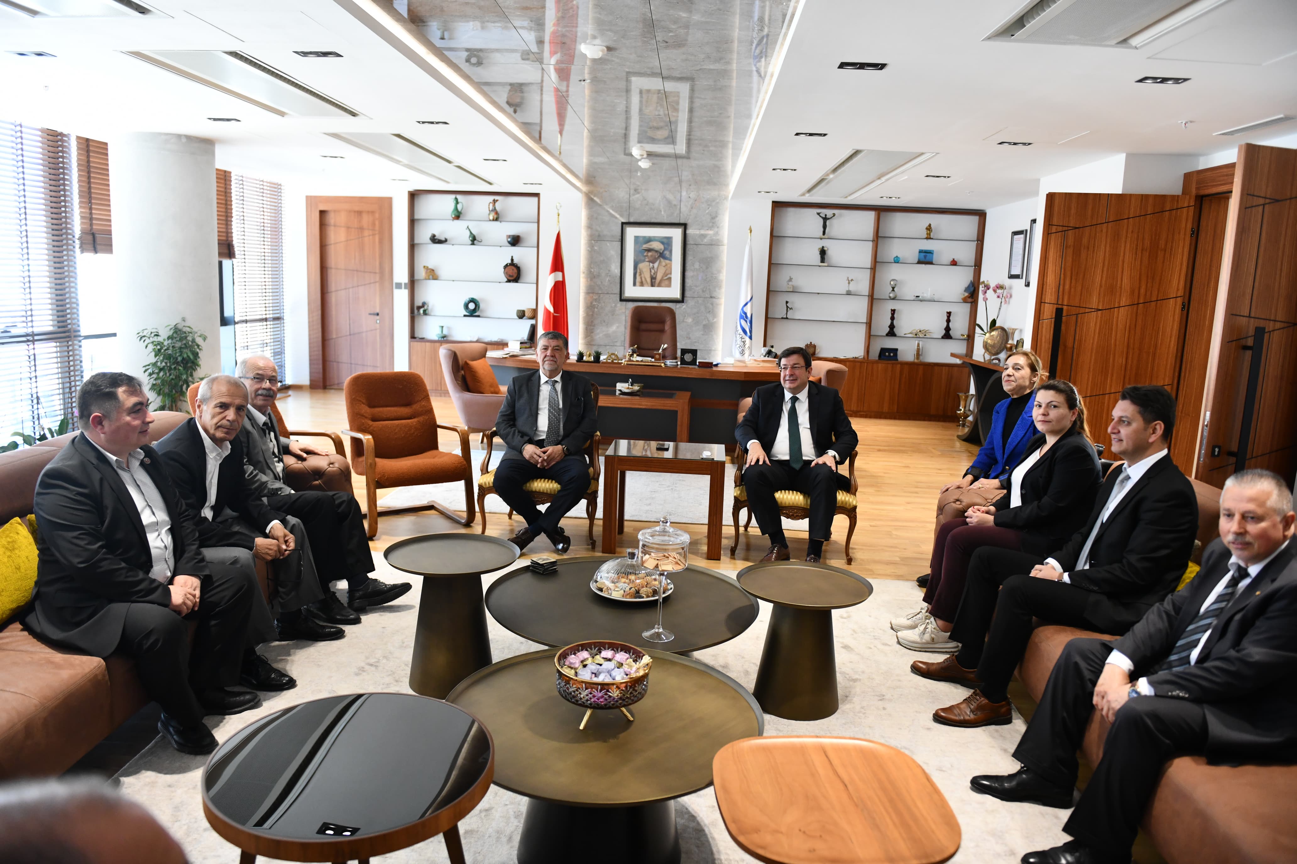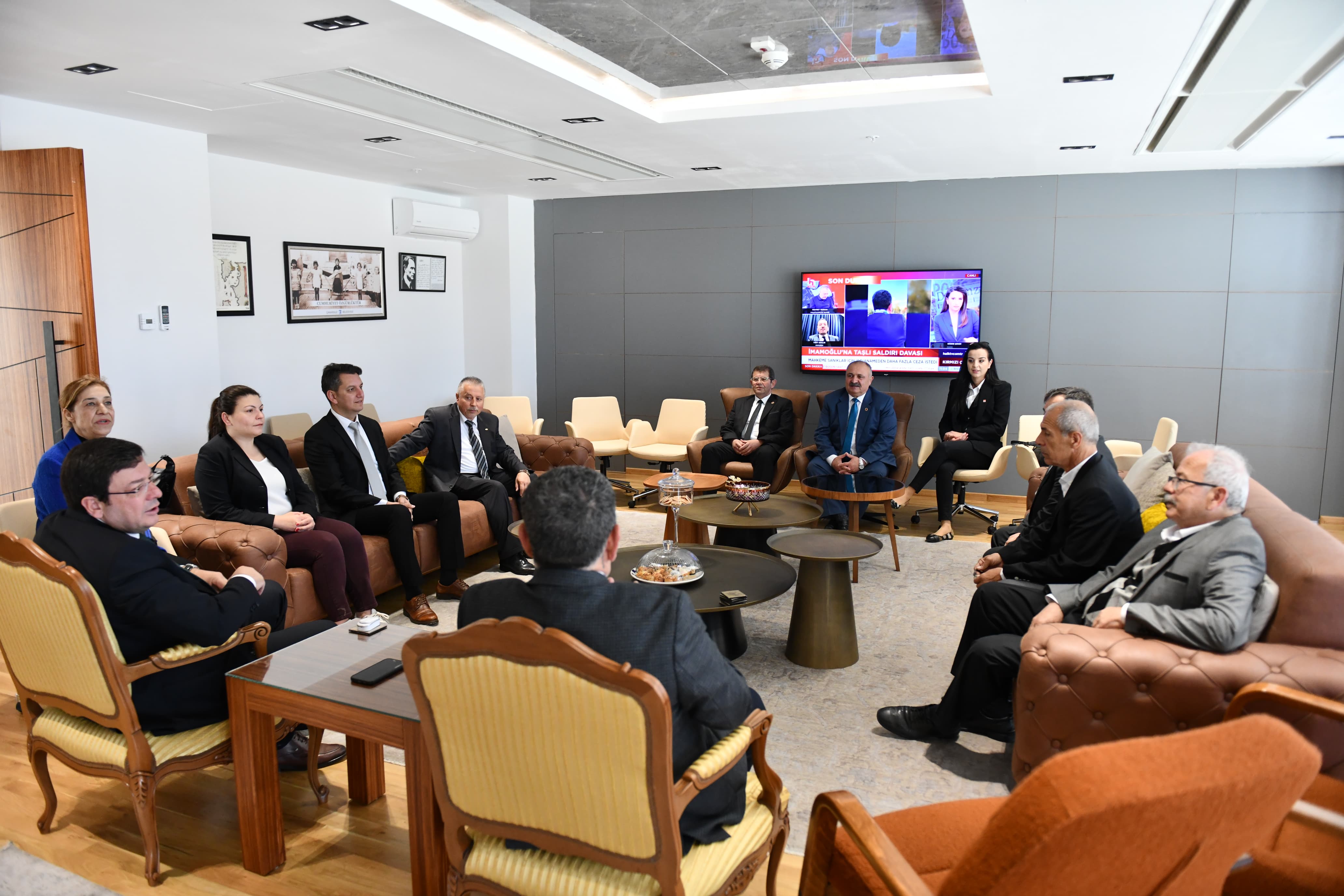 Belediye Başkanı Muharrem Erkek, İl Genel Meclisi Başkanı Halil Ertuğrul ve İl Genel Meclisi Üyeleri ile Cumhuriyet Halk Partisi İl ve İlçe Gençlik Kolları Başkanlığı yönetimini makamında ağırladı.