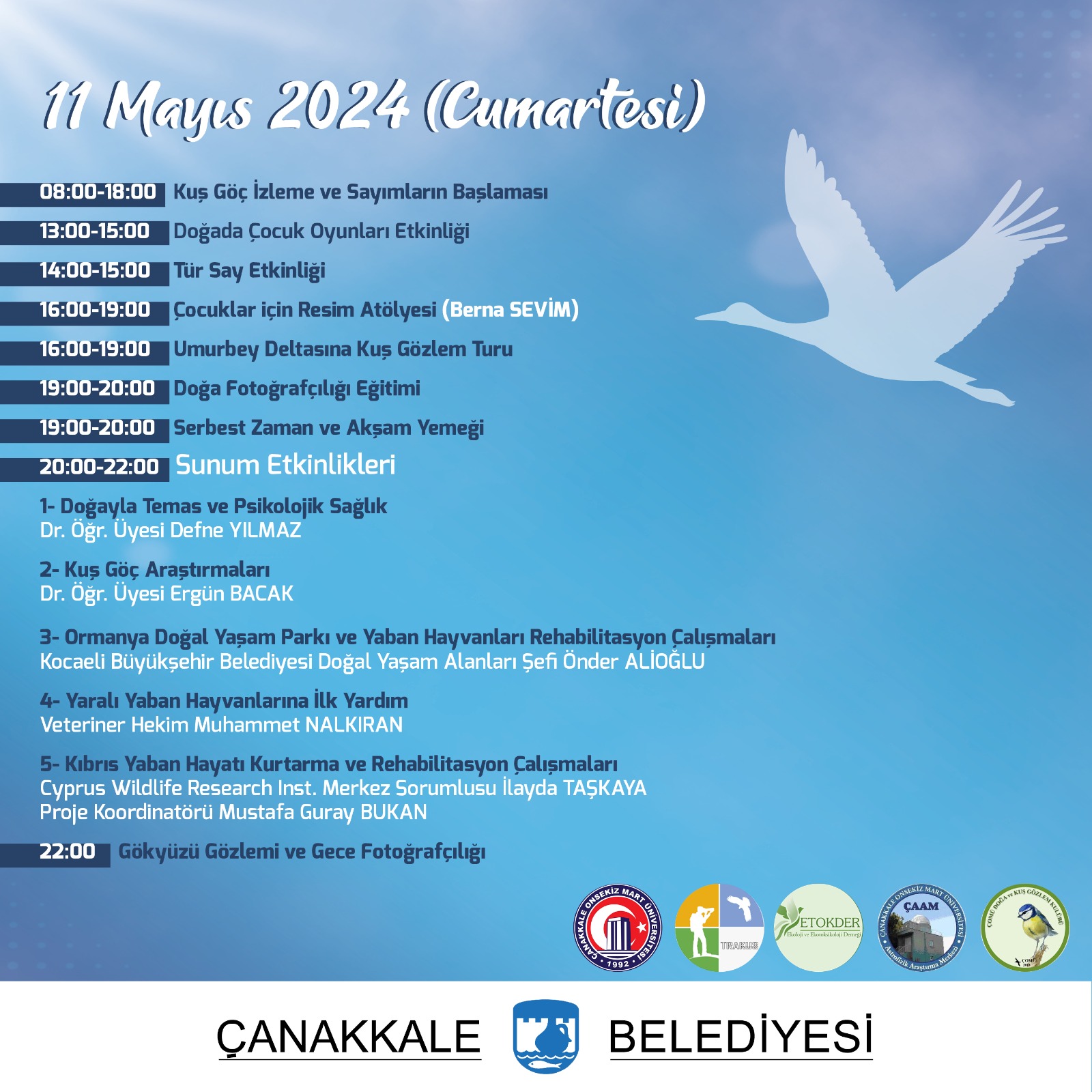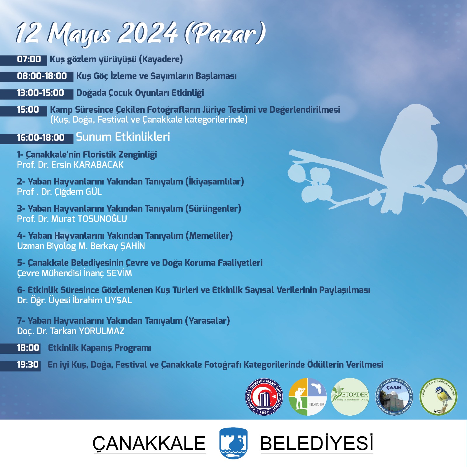 Çanakkale Belediyesi ve ÇOMÜ ortaklığı ile 10-12 Mayıs 2024 tarihleri arasında ilk kez düzenlenen Doğa ve Kuş Göç Festivali gerçekleştirilen çeşitli etkinliklerle başladı.