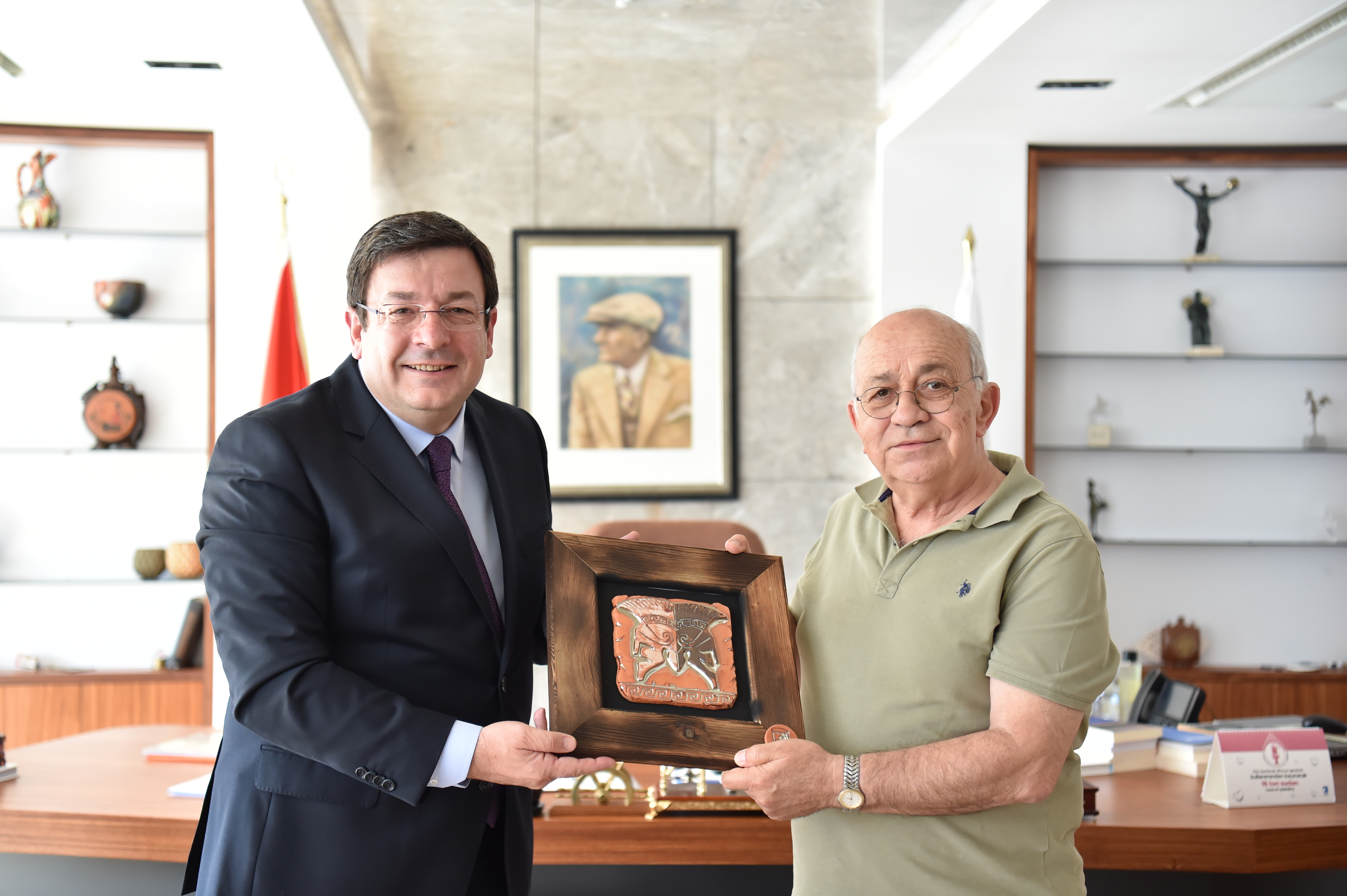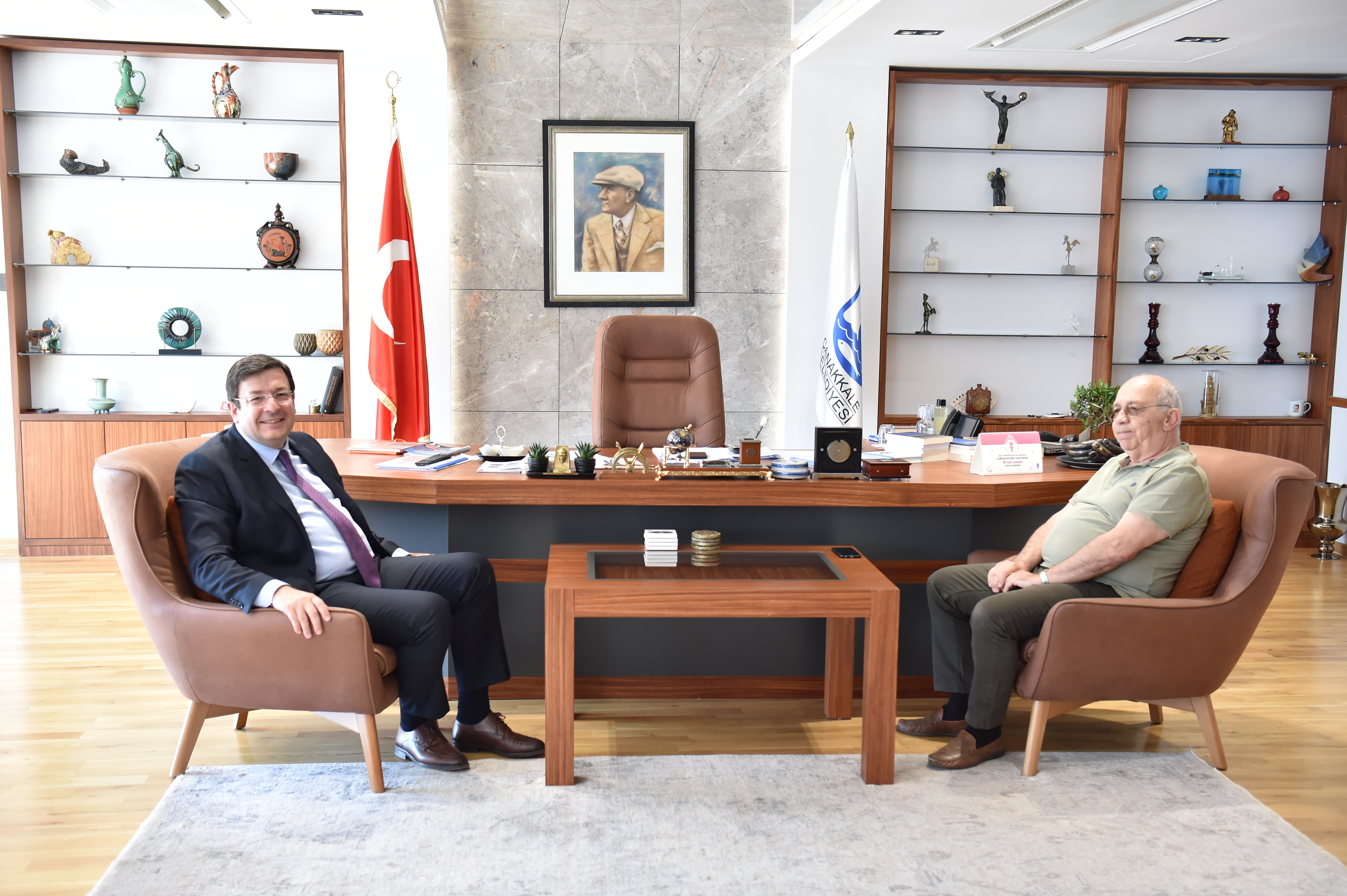 1989-2002 yılları arası Çanakkale Belediye Başkanı ve 22. Dönem Çanakkale Milletvekilli olarak görev yapmış olan İsmail Özay, Belediye Başkanı Muharrem Erkek’i makamında ziyaret etti.