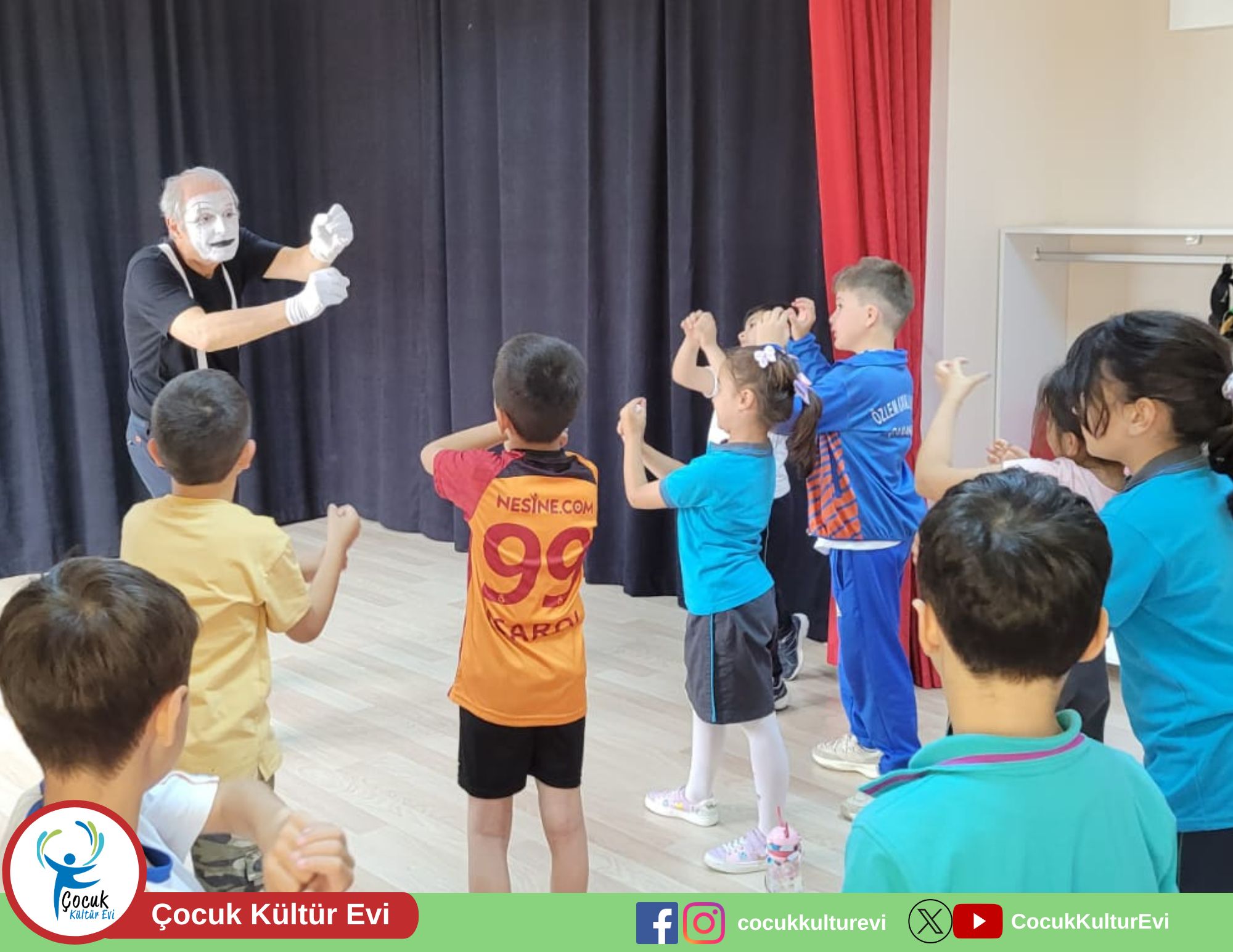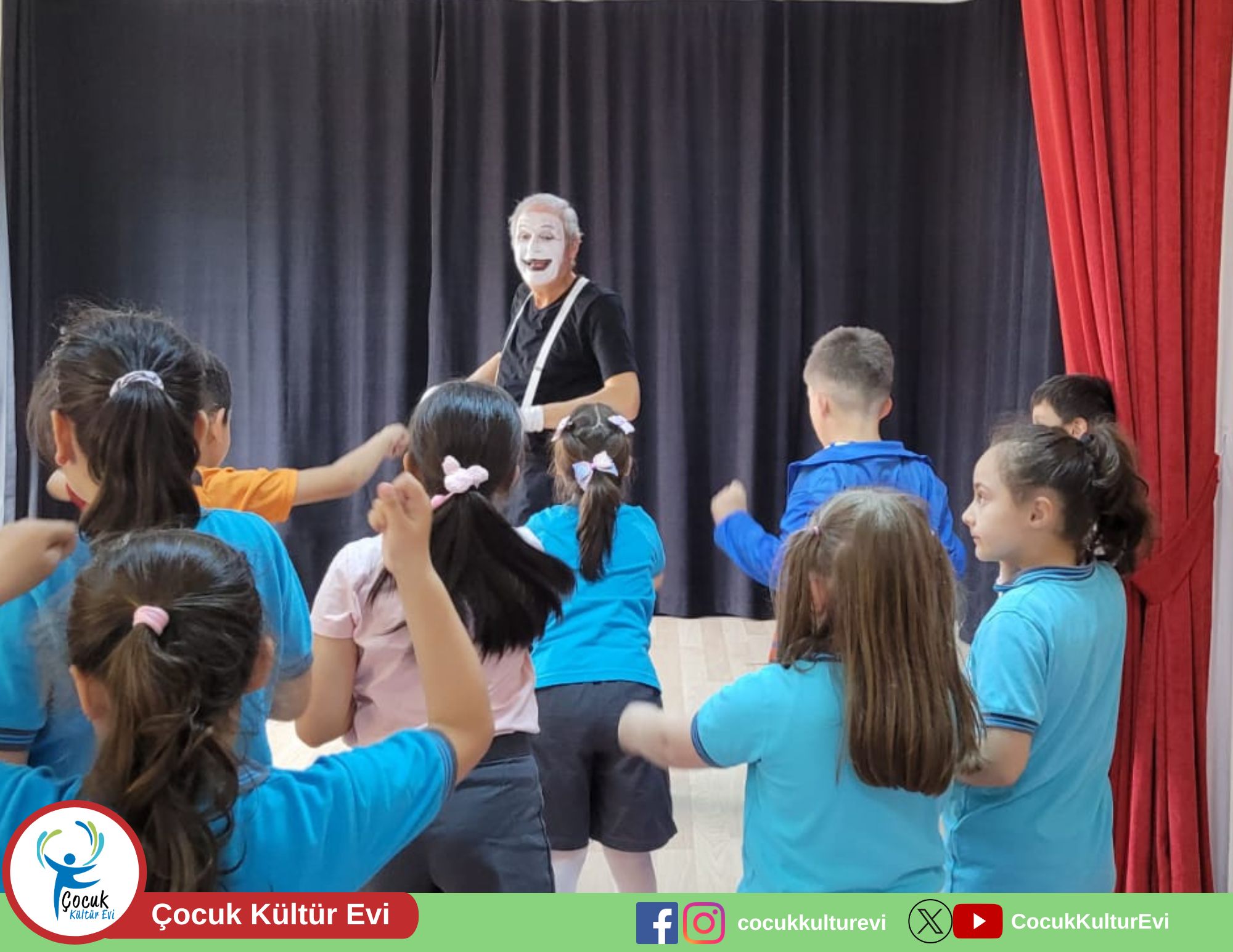 1. sınıf ve üzeri çocuklarla Çocuk Kültür Evi drama atölyesinde bir araya gelen Ünal Pekel, gösterim öncesinde pantomim sanatının inceliklerine dair bilgi aktarımında bulundu. Daha sonra gösterimin makyaj hazırlığı kısmını da çocuklarla paylaşan Ünal Pekel, gerçekleştirdiği interaktif pantomim gösterisi ile büyük beğeni topladı. Çocukların yoğun ilgi gösterdiği buluşma Pekel’in çocukların pantomim sanatına yönelik sorularını yanıtladığı söyleşinin ardından toplu fotoğraf çekimi ile sona erdi.