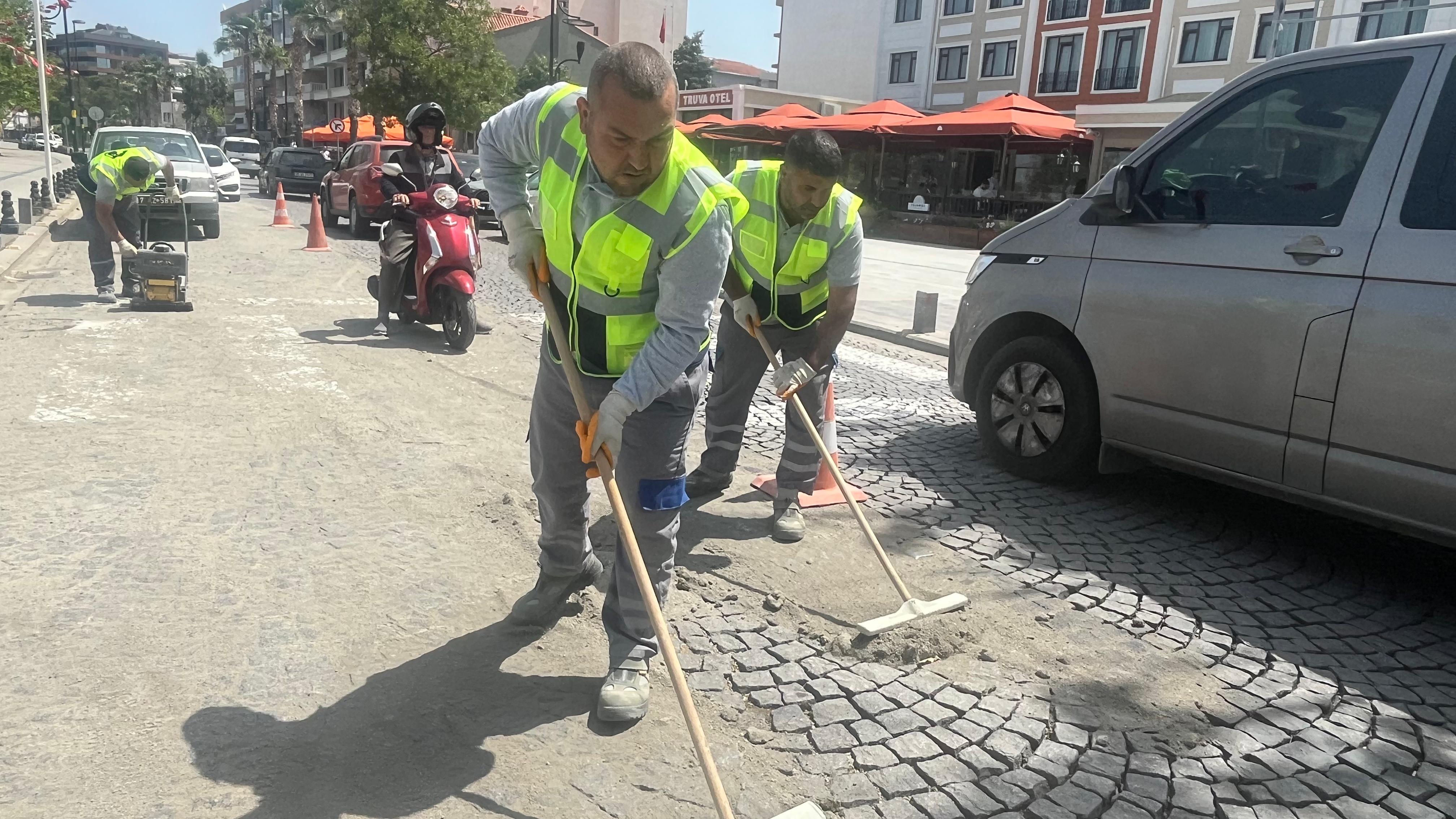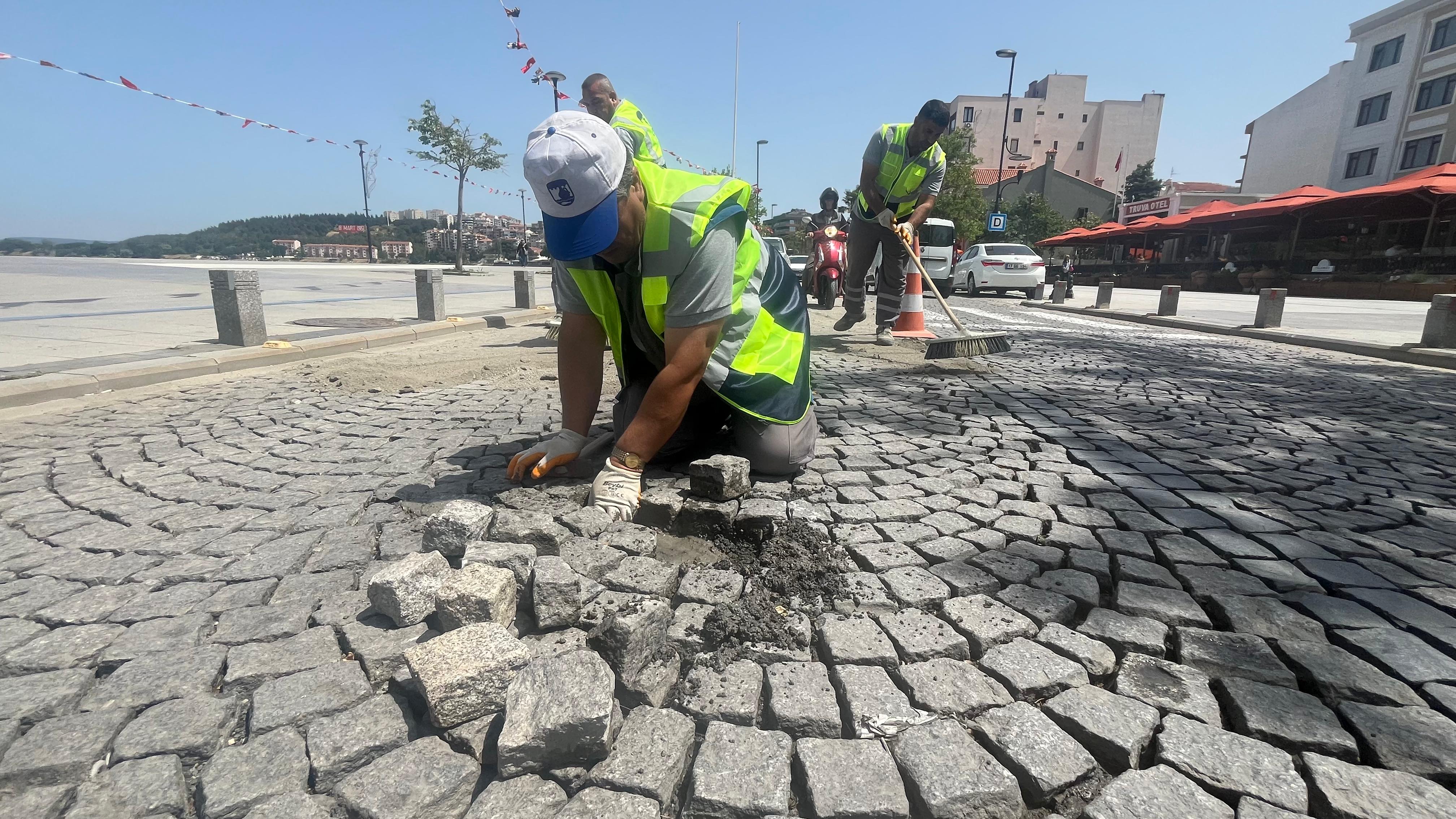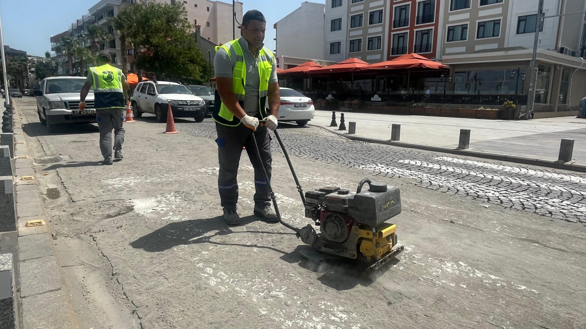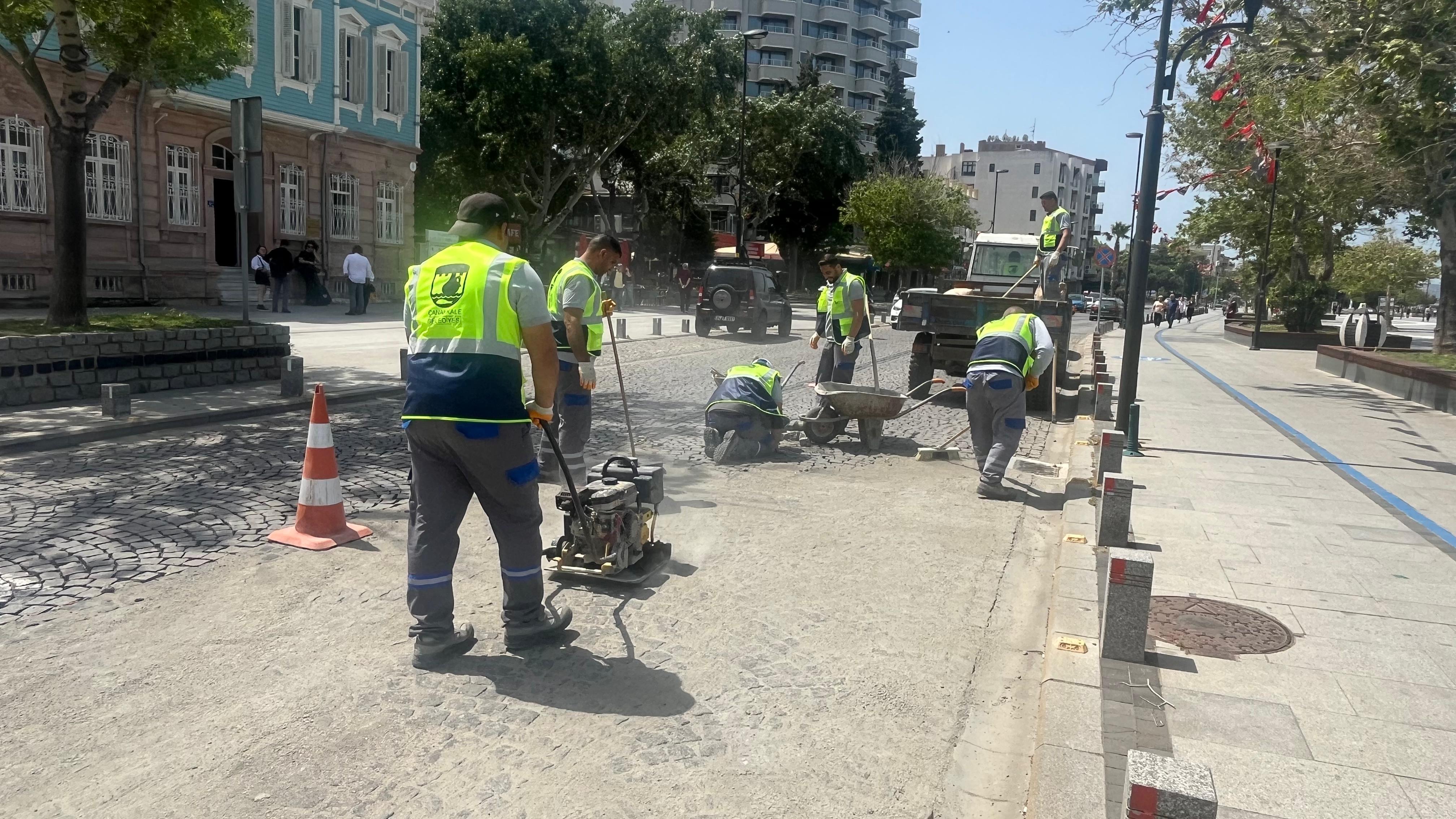 Kayserili Ahmet Paşa Caddesi (Kordon boyu bölgesi) araç yolu üzerindeki deforme olan granit küp taşların bakım ve onarım çalışmaları, Fen İşleri Müdürlüğü ekiplerince gerçekleştiriliyor.