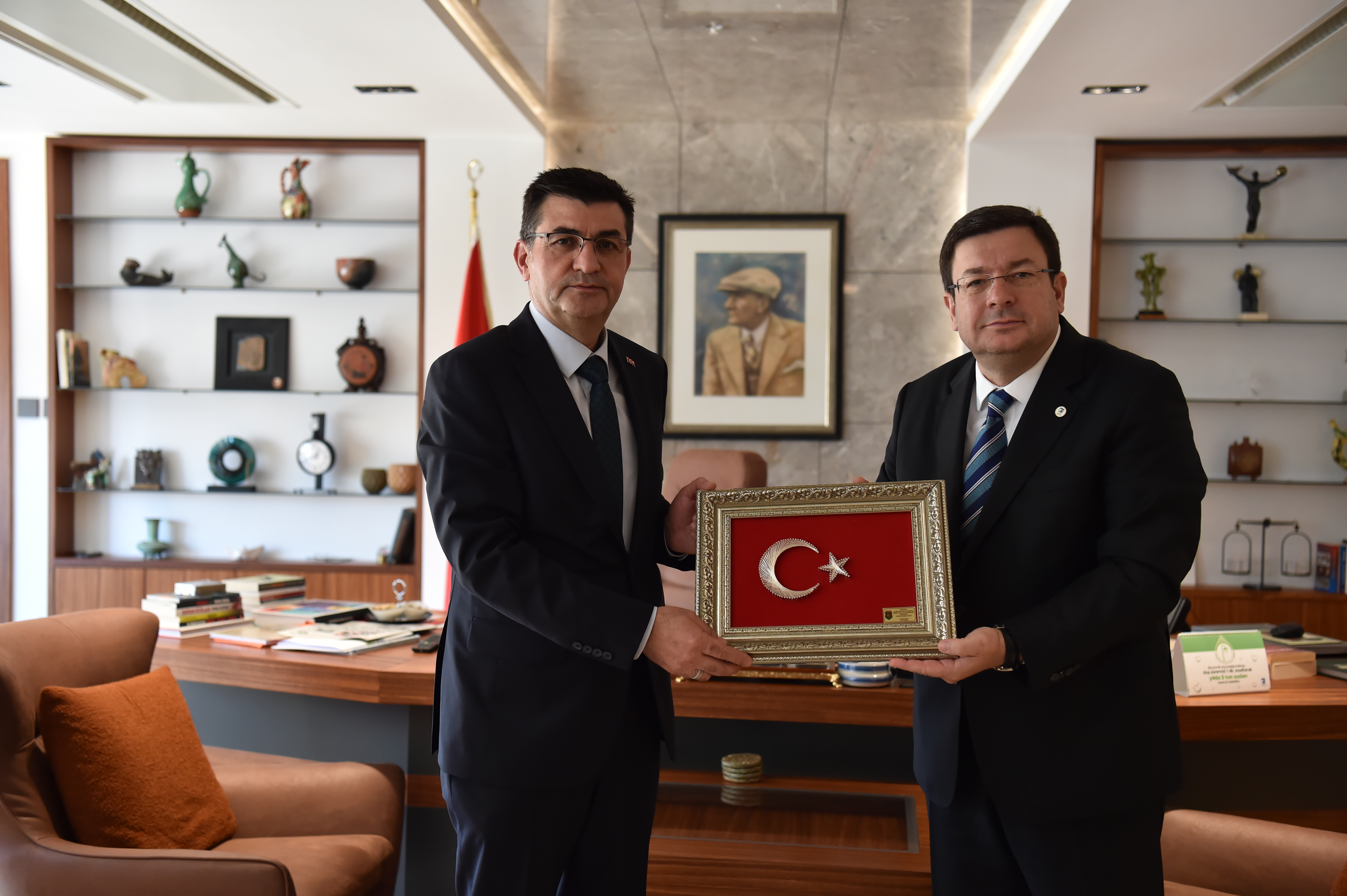 Başkan Erkek, nezaket ziyaretleri için konuklarına teşekkür ederek güncel konulara ilişkin sohbet gerçekleştirdi.