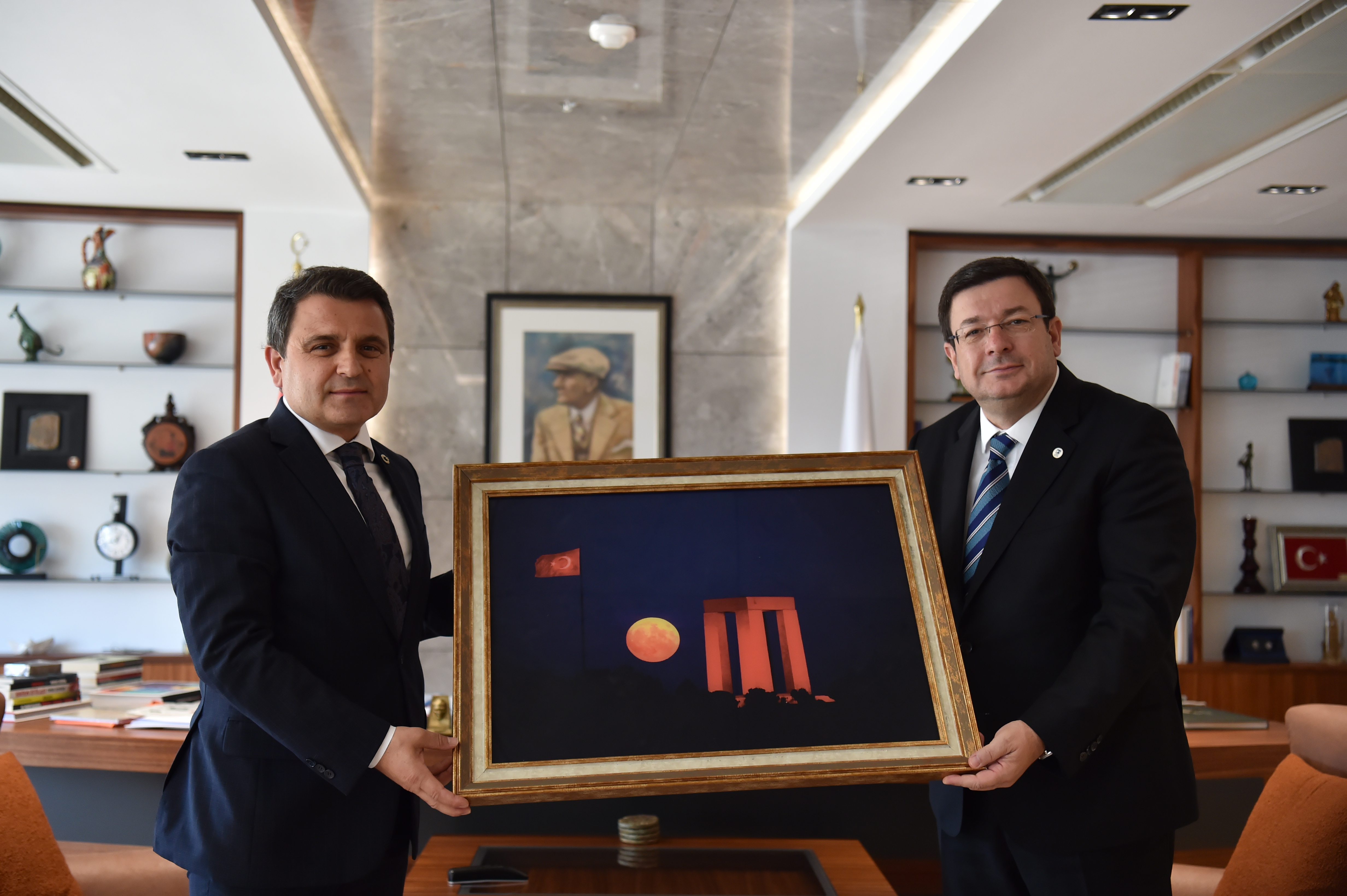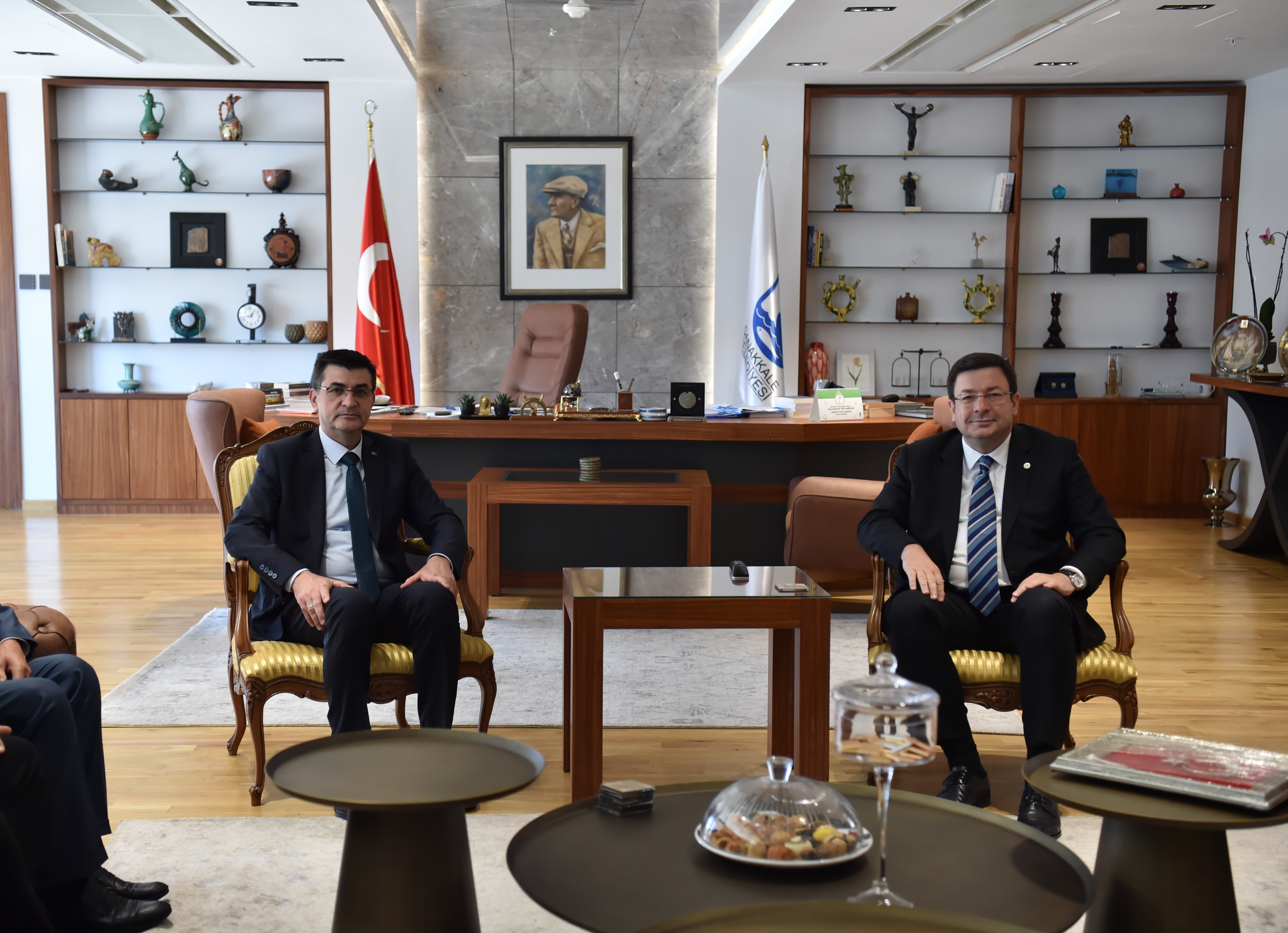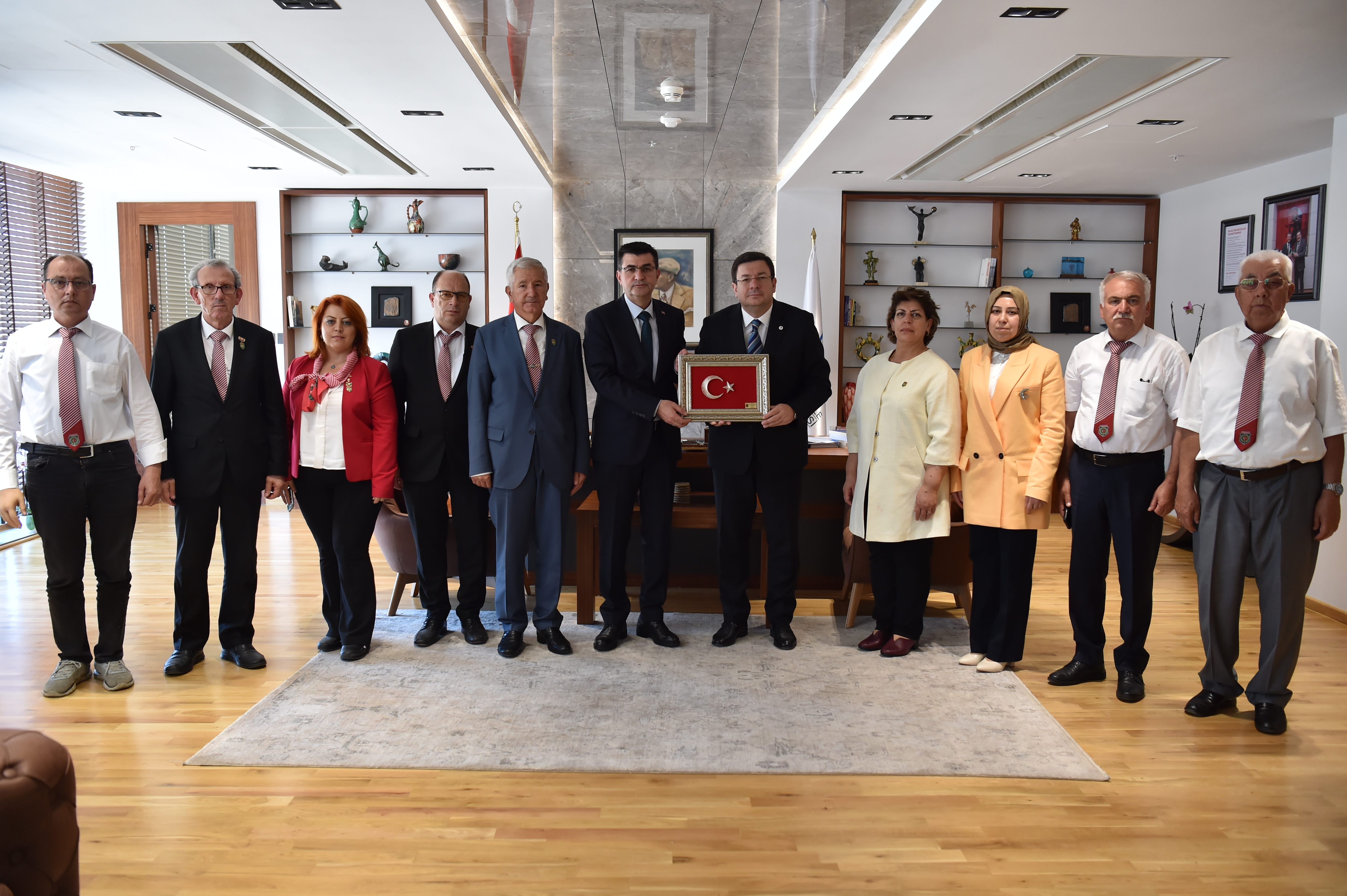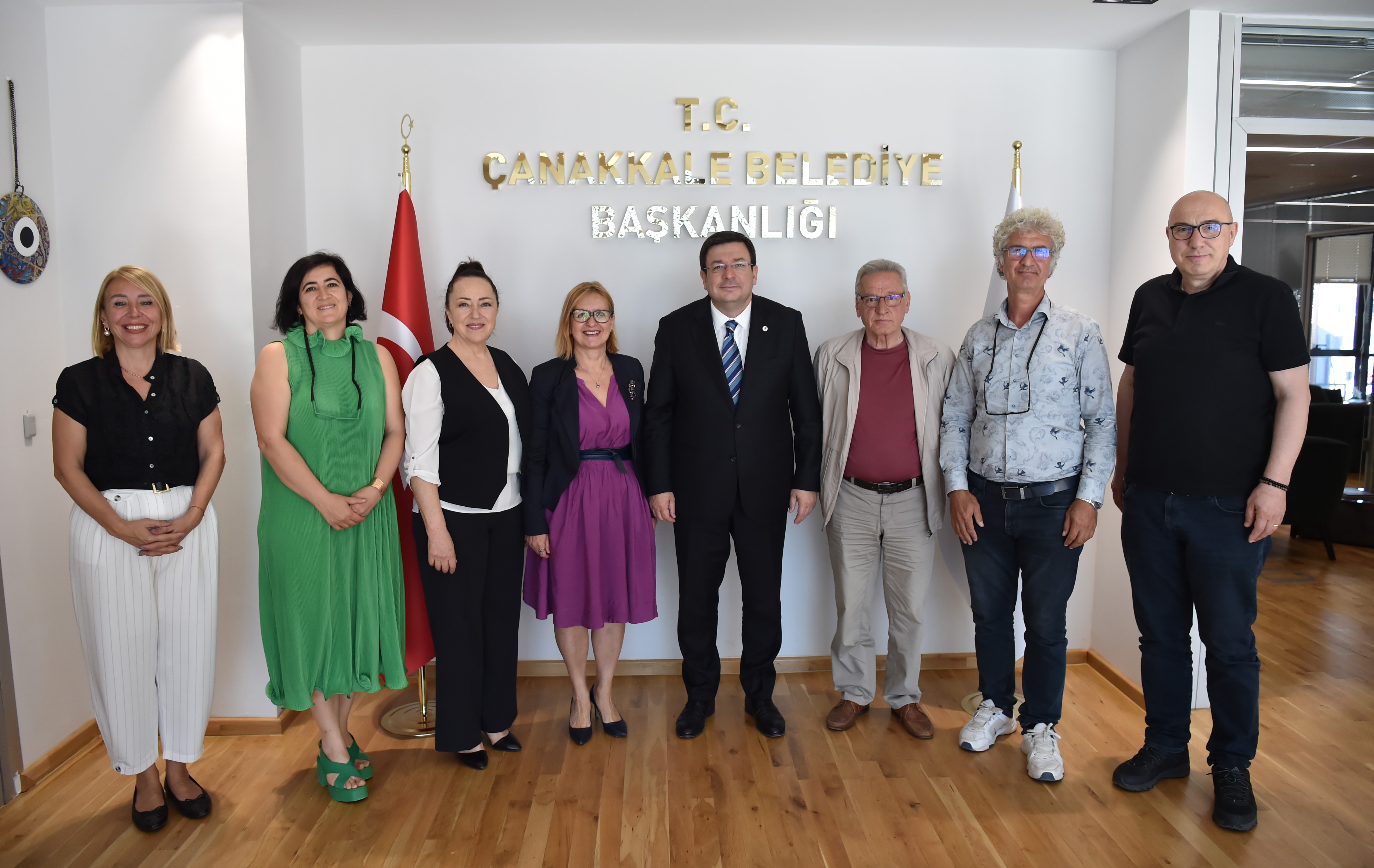 Başkan Erkek; Çanakkale Savaşları Gelibolu Tarihi Alan Başkanı İsmail Kaşdemir, Türkiye Harp Malulü Gaziler Şehit Dul ve Yetimleri Derneği Genel Başkanı Mustafa Işık, Çanakkale Şube Başkanı Muharrem Şahin ve Yönetimi, Türkiye Emekli Subaylar Derneği (TESUD) Çanakkale Şube Başkanı Eminettin Ergin ve Yönetimi, Çanakkale Yorum Gazetesi İmtiyaz Sahibi Metin Koç ve Çağdaş Eğitim Kooperatifi (ÇEK) Çanakkale Şube Yönetimi ile bir araya geldi.