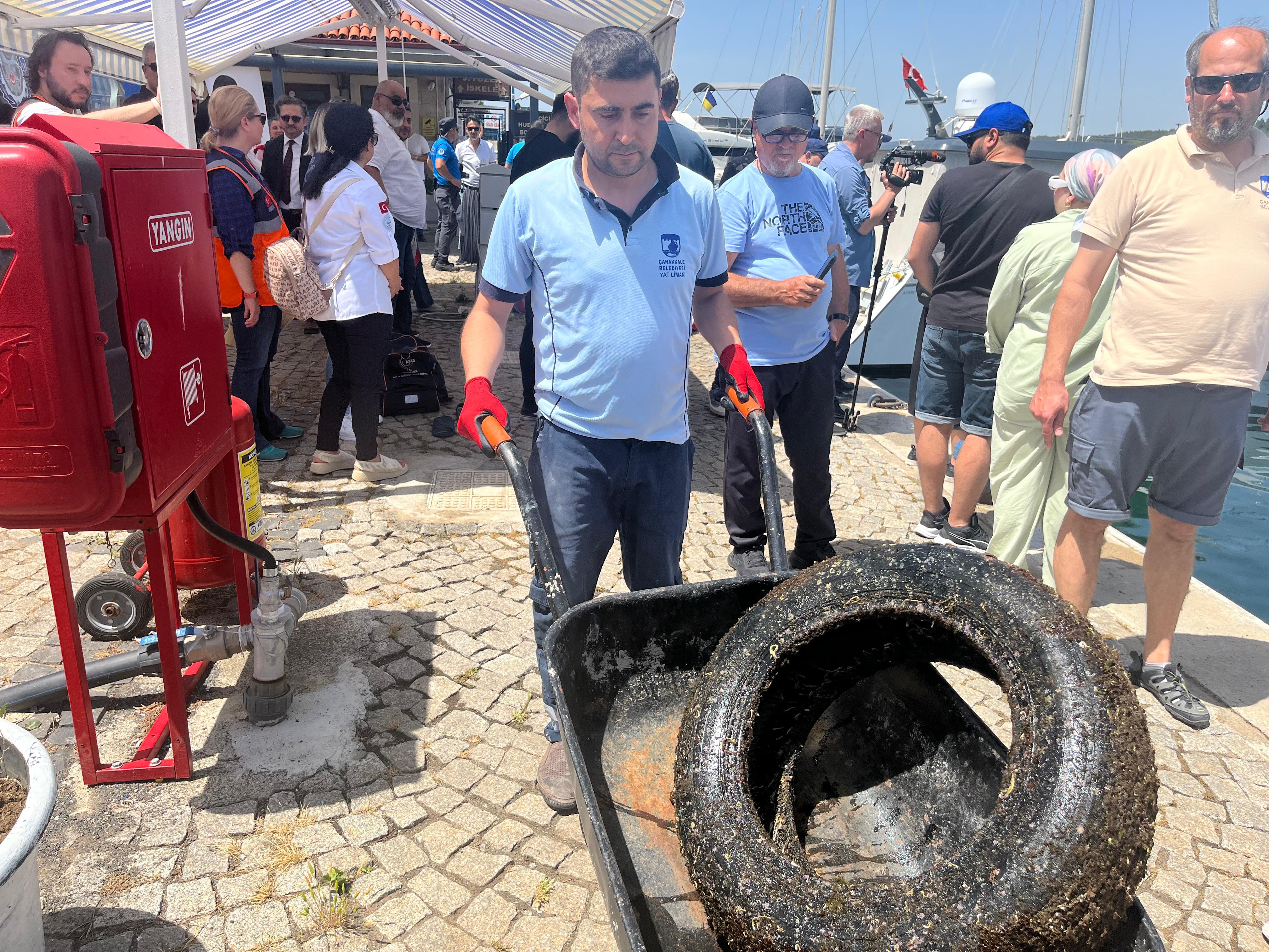 Çanakkale Belediye Meclisi Çevre ve Sağlık Komisyonu Üyeleri Fatma Kaynaş ve Nurcan Bingöl'ün de katıldığı etkinlikte; Çanakkale Belediyesi, Sahil Güvenlik Çanakkale Grup Komutanlığı, Çanakkale Emniyet Müdürlüğü Deniz Polisi, Çanakkale Onsekiz Mart Üniversitesi Deniz Bilimleri ve Teknolojisi Fakültesi Öğrencileri ve Veolia'nın katkılarıyla deniz temizliği yapıldı. Denizden çıkarılan atıklar kordon yat limanı bölgesinde sergilendi.