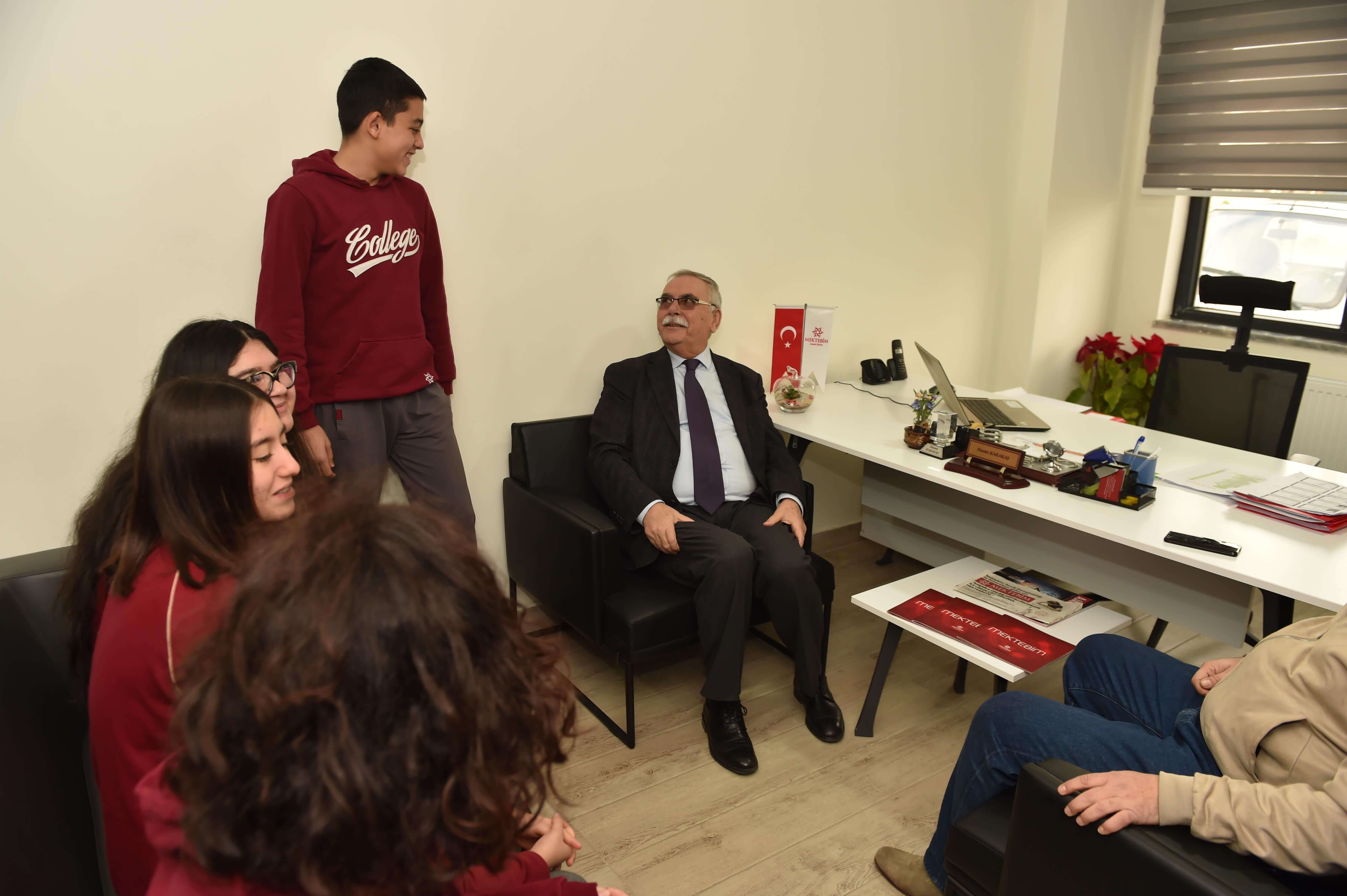 Başkan Gökhan okul ziyaretleri kapsamında son olarak Çanakkale Mektebim Okulu’nu ziyaret etti. Okul yönetimi ve öğrenciler tarafından karşılanan Başkan Gökhan, yönetim odasında öğrenci ve öğretmenler ile bir araya geldi. Çanakkale Mektebim Okulu kurucusu Melih Utkular, yöneticilerden okulda yürütülen faaliyet ve etkinliklere ilişkin bilgi alan Başkan Gökhan, öğrencilerle de bir süre sohbet etti. Öğrenciler, ziyaret nedeni ile Başkan Gökhan’a Mektebim Okulu rozeti taktim etti. Ardından okul yönetimi ile birlikte okulu gezen Başkan Gökhan, miniklerin bulunduğu okul kreşini ziyaret etti. Okul yemekhanesini de gezerek öğretmen ve öğrencilere afiyet olsun diyen Başkan Gökhan, açık - kapalı spor salonu ve kapalı yüzme havuzunu inceledi. İlkokul bölümünü de ziyaret eden Başkan Gökhan, burada minik öğrenciler ile bir süre sohbet etti. Son olarak okul bahçesinde bulunan spor alanları ve hayvanat bahçesini gezen Başkan Gökhan, Çanakkale’ye modern bir okul kazandırıldığı için okul kurucusu Utkular ve yönetimini tebrik ederek, başarılar diledi.