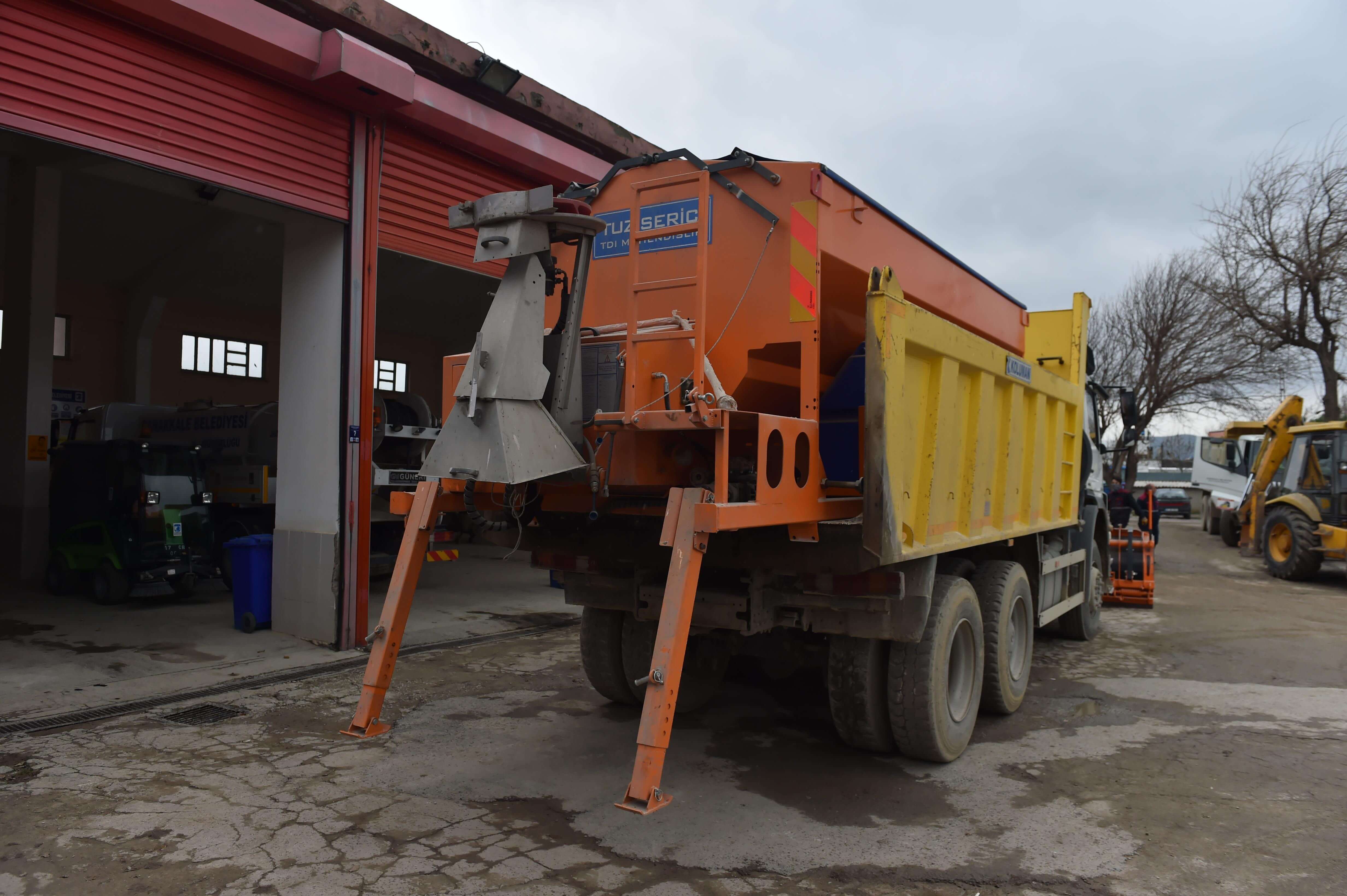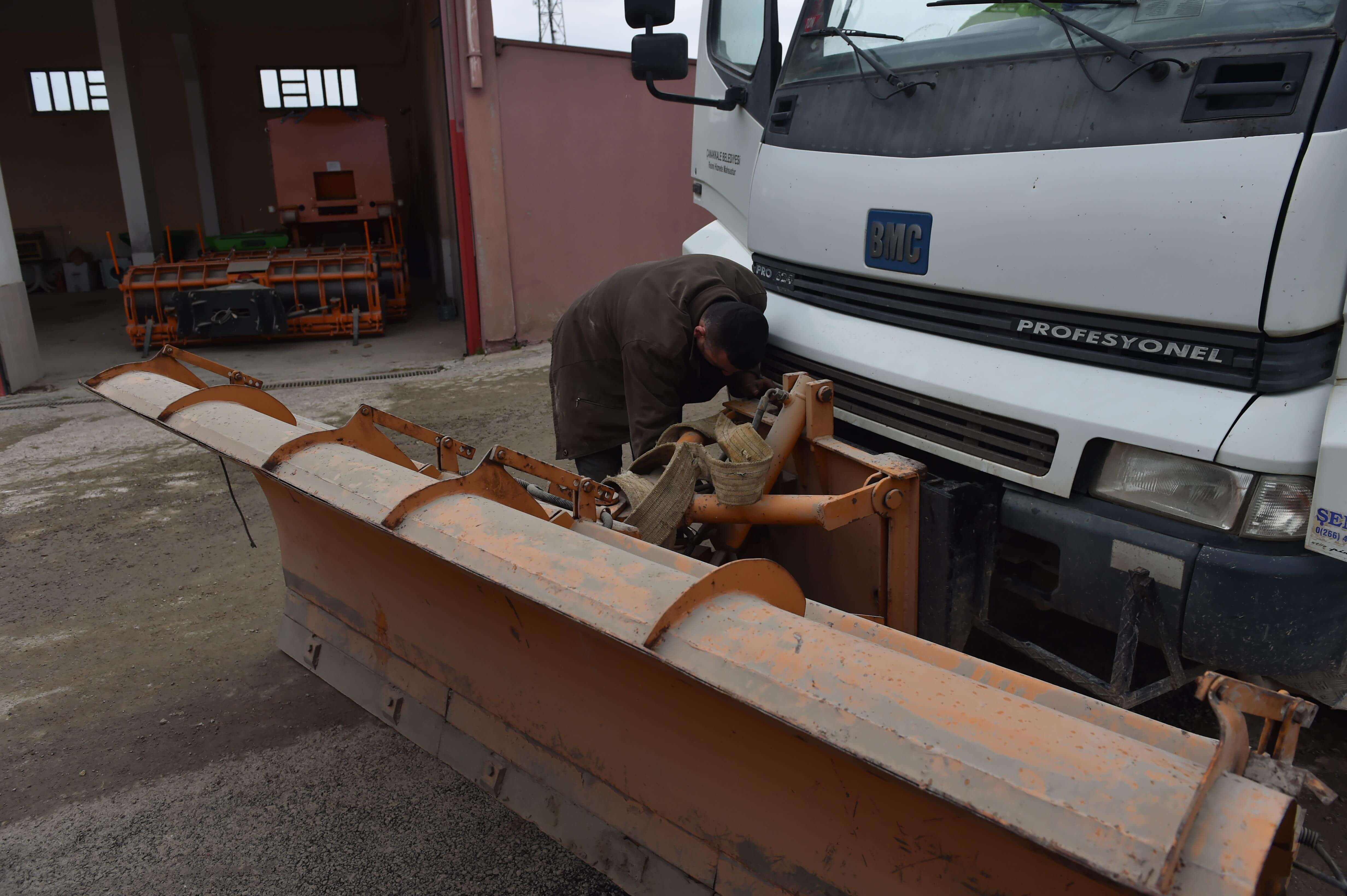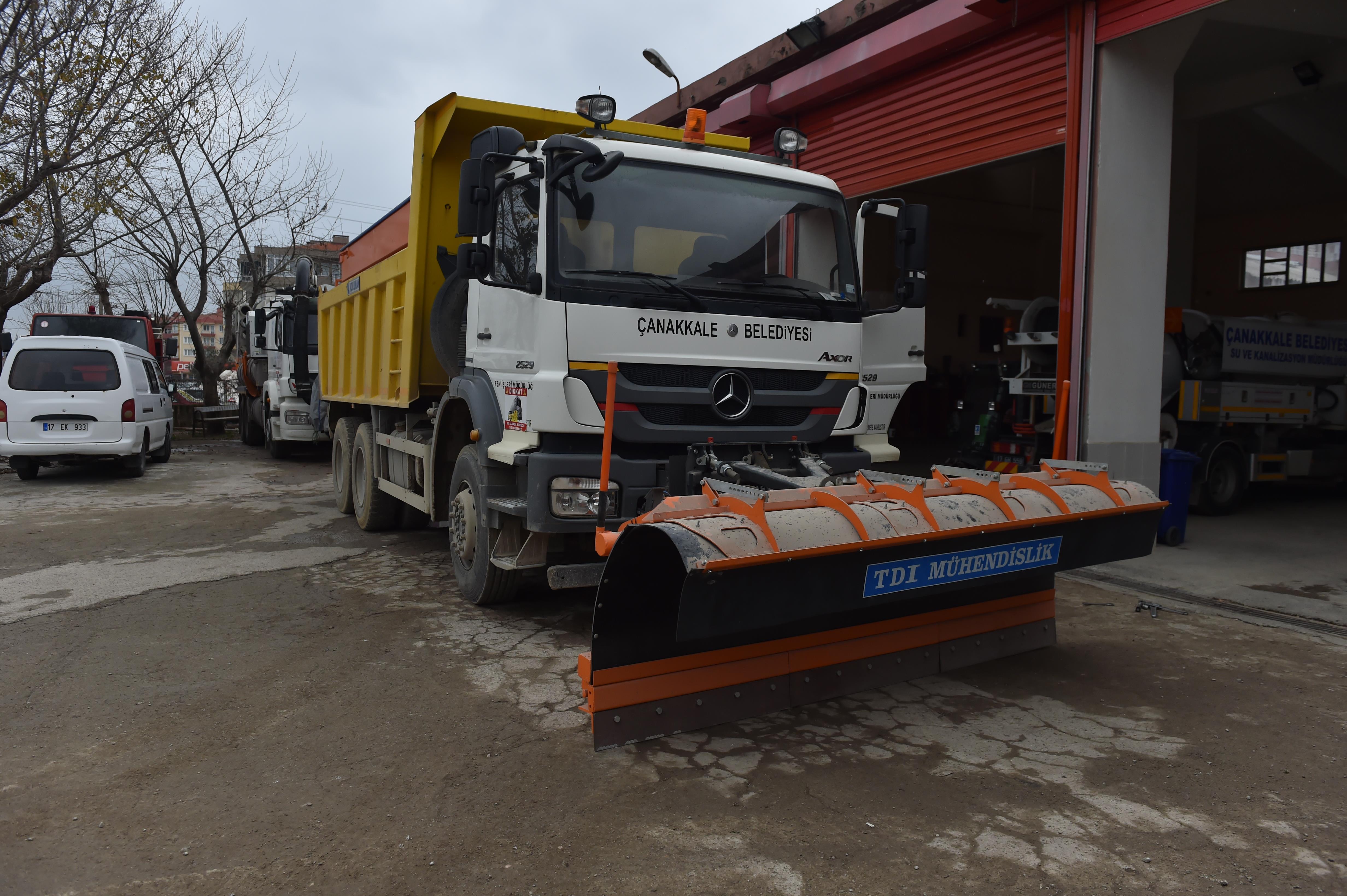 Çanakkale Belediyesi ekipleri, kentlilerimizin olumsuz olarak etkilenmemesi amacı ile kar yağışı ve buzlanmaya karşı mücadele edecek olan kar küreme araçları ve tuz serpme araçlarını hizmete hazırladı.