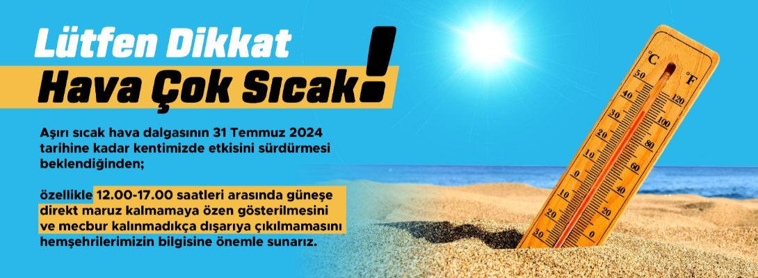 Aşırı sıcak hava dalgasının 31 Temmuz 2024 tarihine kadar kentimizde etkisini sürdürmesi beklendiğinden;