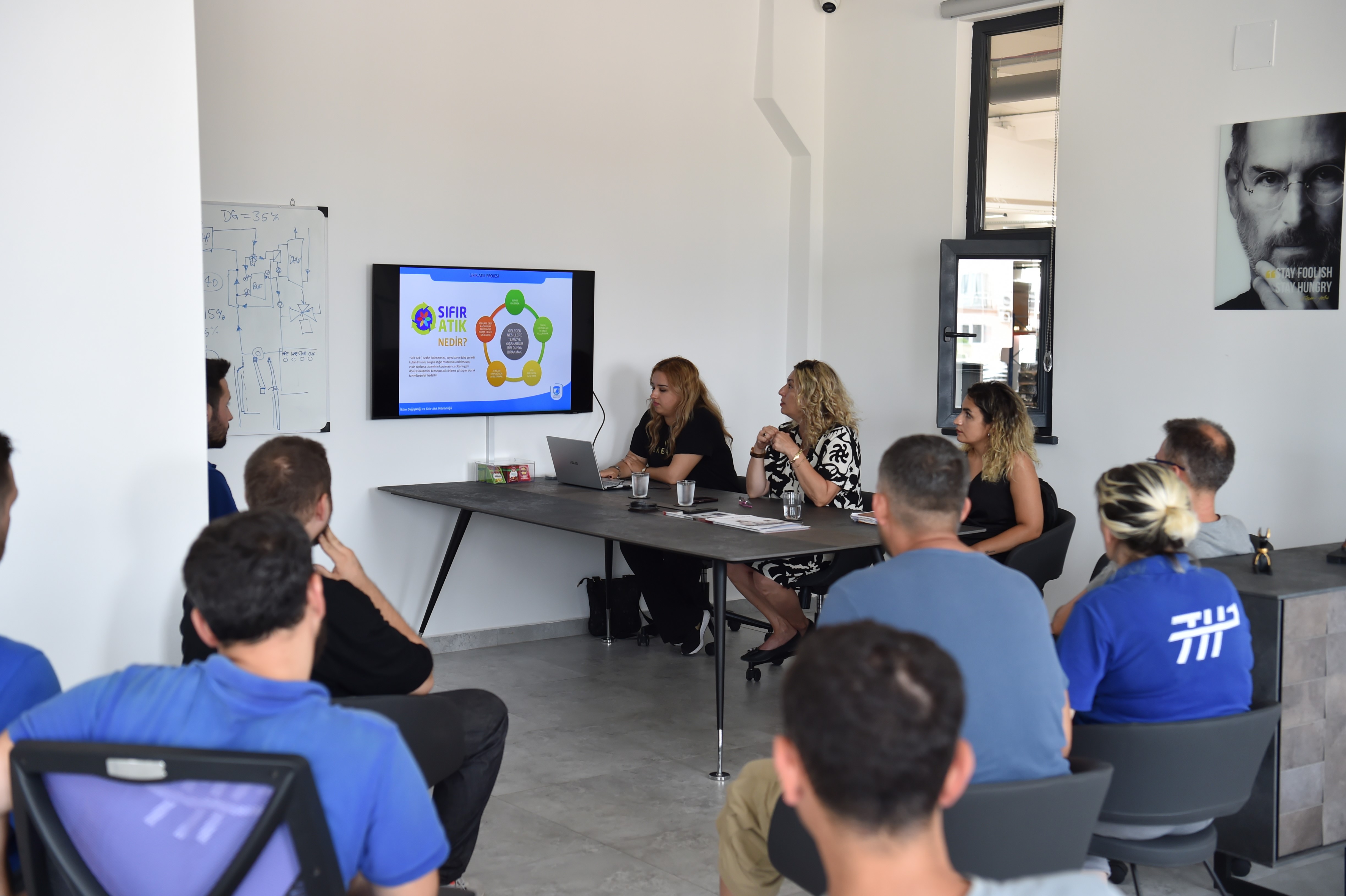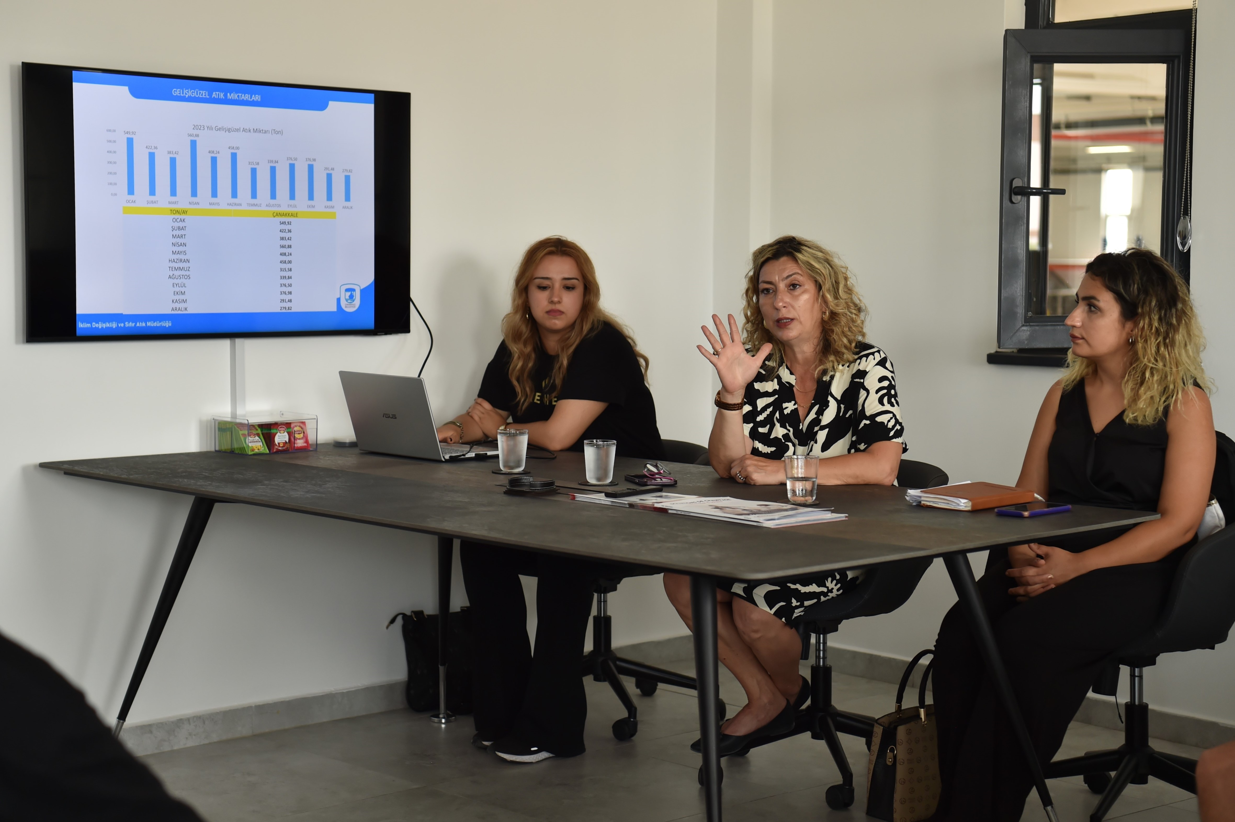 Sıfır Atık Müdürü Kavcar, eğitim kapsamında belediyemiz tarafından yürütülen atık pil, atık ilaç, bitkisel atık yağların ayrı toplanması, giyim/tekstil atıkları çalışmalarına yönelik de bilgiler vererek, atıkların neden ayrı toplanması gerektiğine sunumunda yer verdi. Kavcar son olarak, plajlardaki mavi bayrak gibi kent merkezinde yürütülen uygulamalar ve iklim değişikliği konularını da şirketin yönetici ve personelleri ile paylaştı.