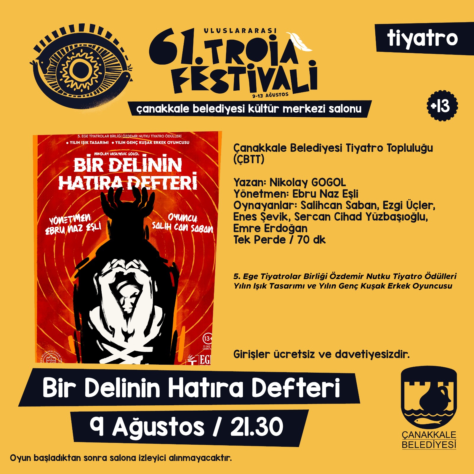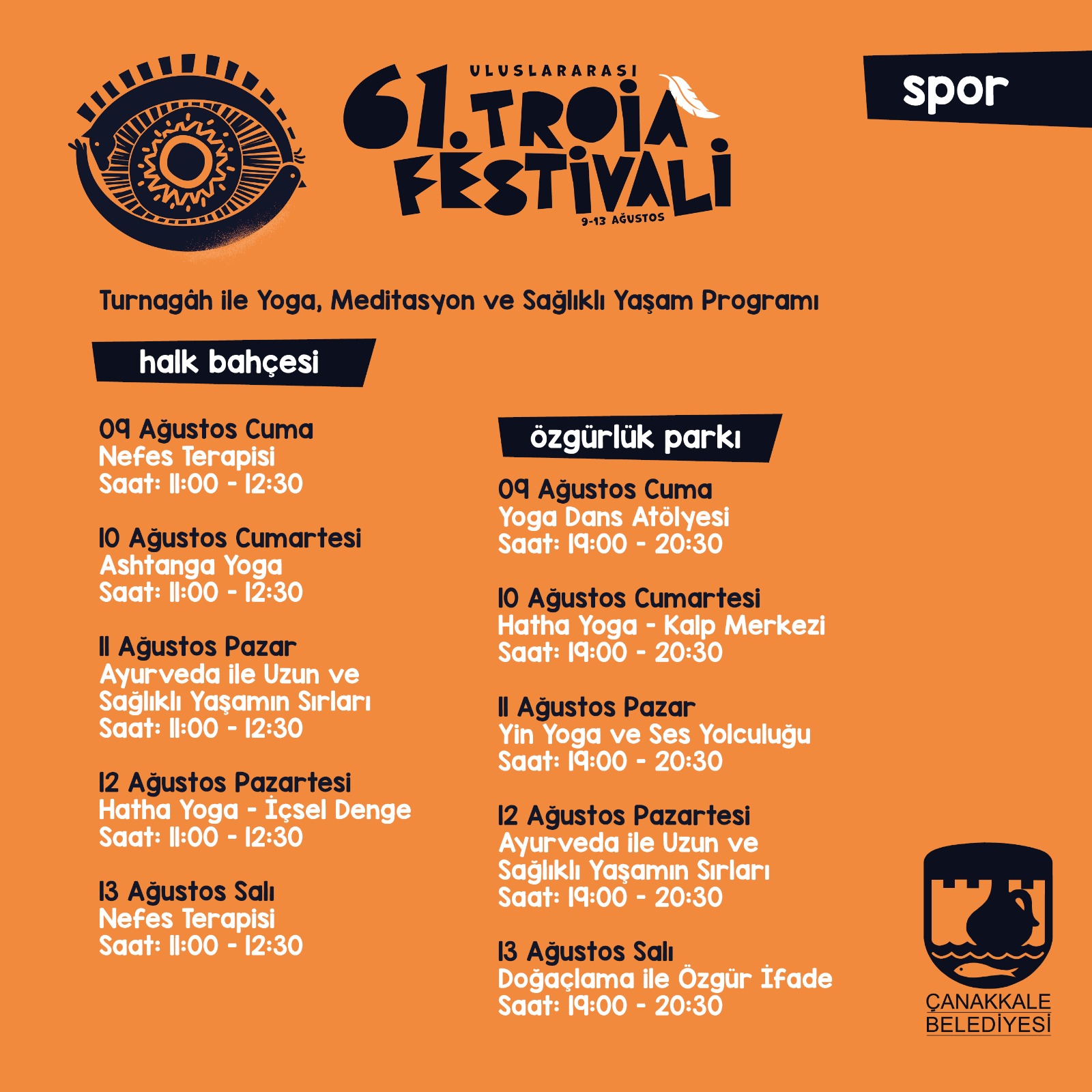 61. Uluslararası Troia Festivali, 9 Ağustos 2024 Cuma günü itibariyle başlıyor. Festivalimizin birbirinden renkli etkinliklerle dolu ilk gün programı ise şöyle;