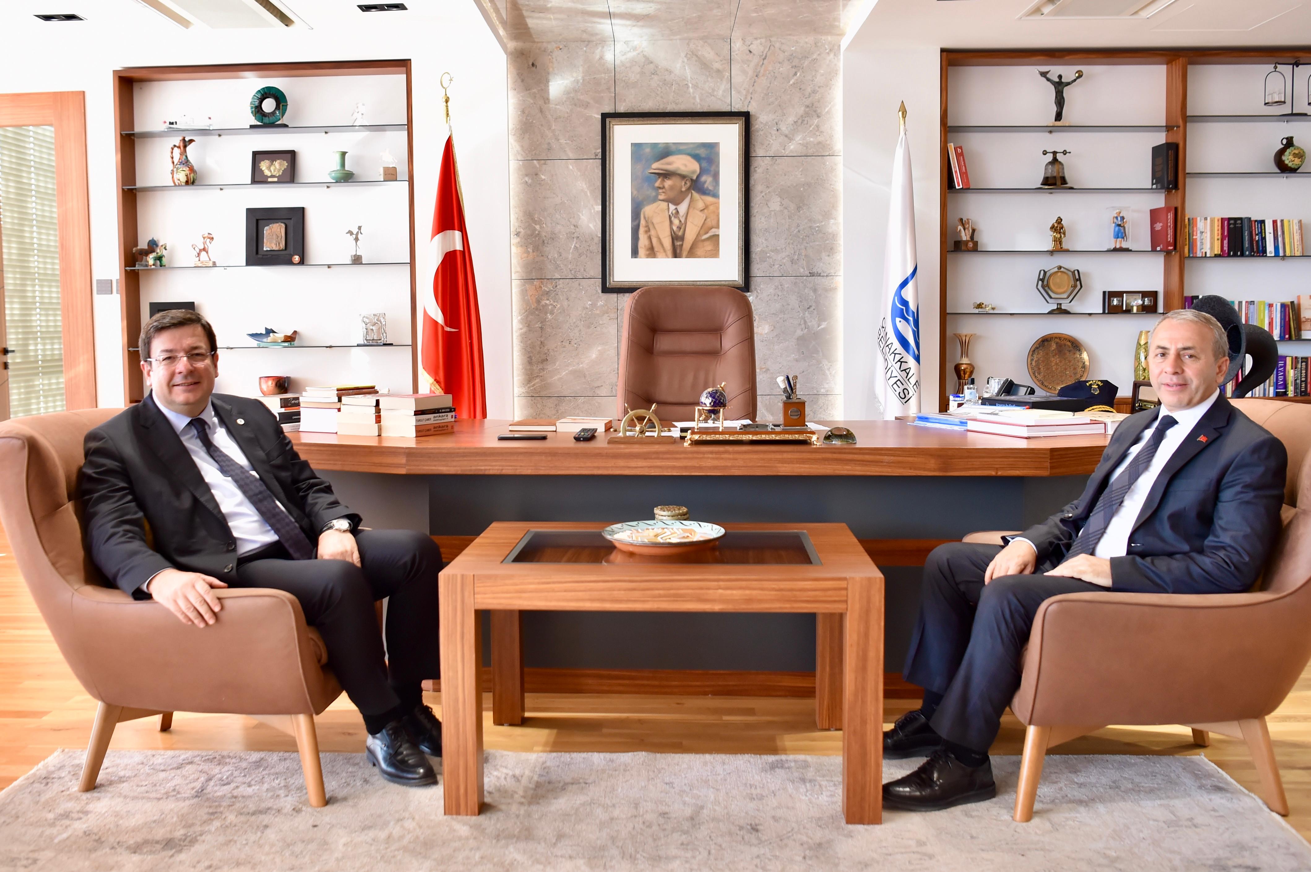 Çanakkale Belediye Başkanı Muharrem Erkek, İl Emniyet Müdürü Kenan Kurt’u makamında ağırladı.