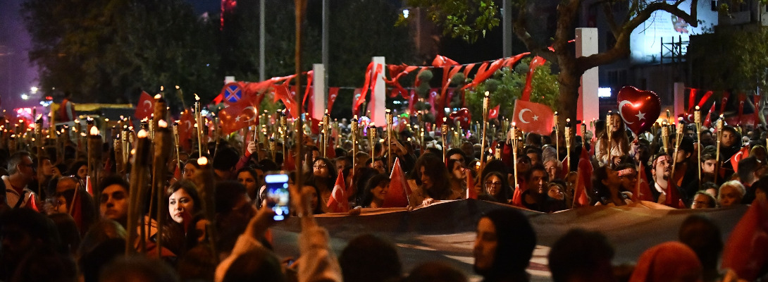 29 Ekim Cumhuriyet Bayramı kutlamaları kapsamında akşam saatlerinde düzenlenen Fener Alayı etkinliği de her yıl olduğu gibi yoğun bir katılımla gerçekleşti. Belediye Başkanı Muharrem Erkek de eşi Özen Algönül Erkek ile birlikte Fener Alayına katılırken, Cumhuriyet Meydanı'ndan başlayan yürüyüş, bayraklar, fenerler ve hep bir ağızdan söylenen marşlarla renklendi.
